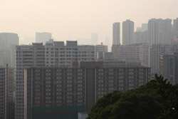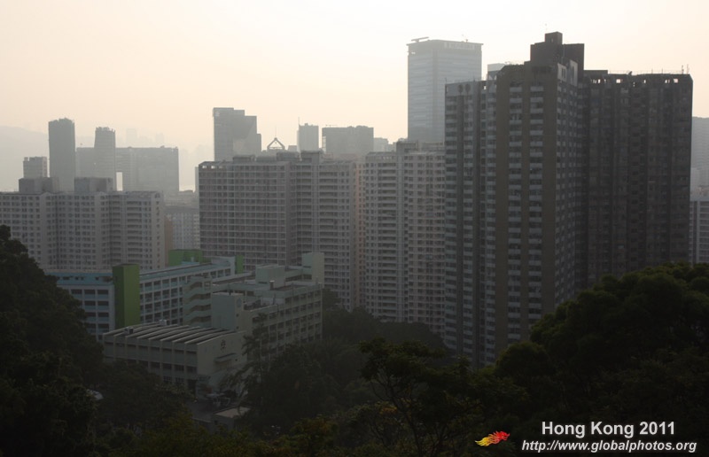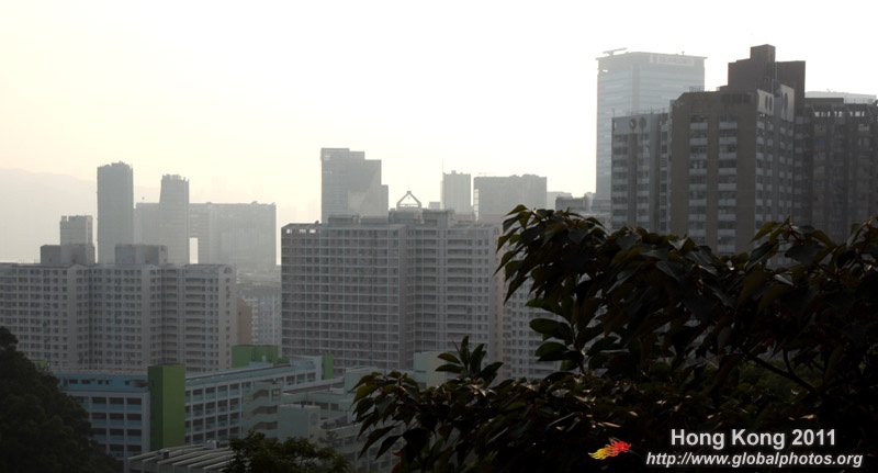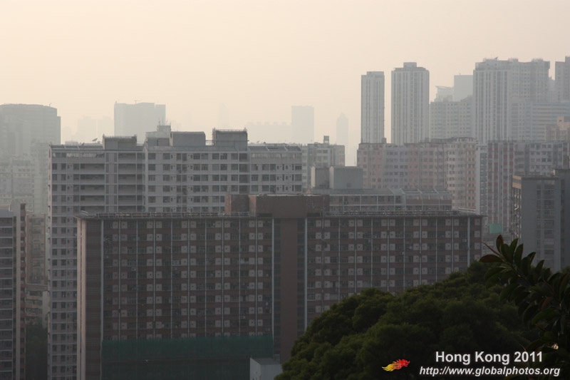 Autumn brings hazy skies. Kwun Tong is barely visible below.