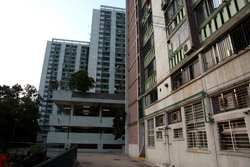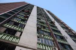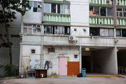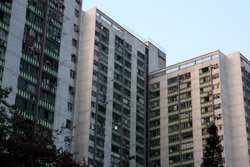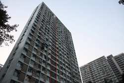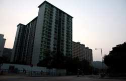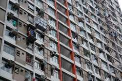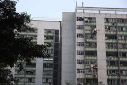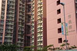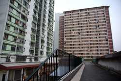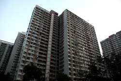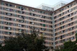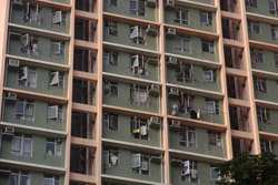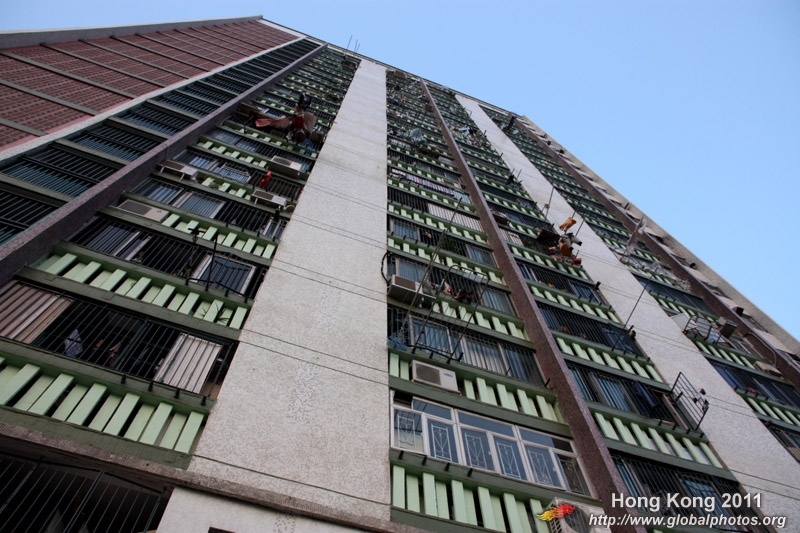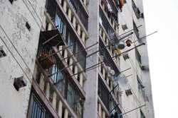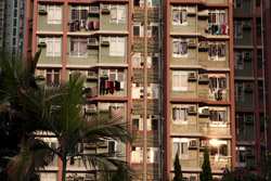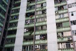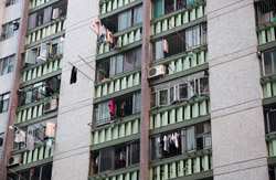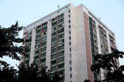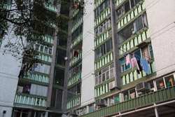 These public housing units face the west, hence get ample afternoon sunshine to dry laundry on sticks.