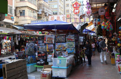 Several streets are full of shops and street markets selling everything from toys, wholesale fabrics, remote controls, to travel sim cards. Kwan Kee Store is mentioned in the Michelin guide for its traditional Chinese desserts in a street food setting. It opened in the 1960s and is famous for its black sesame pudding, steamed sponge cake, and put jai go.