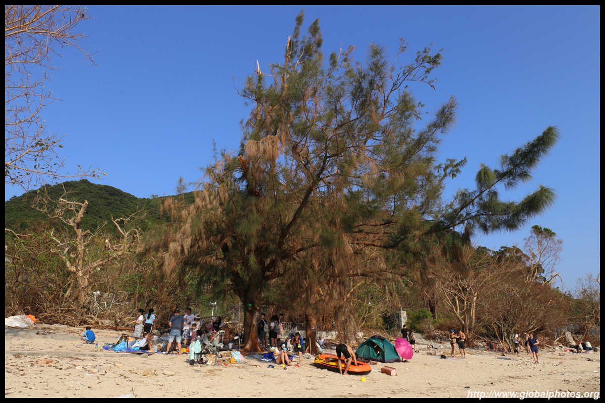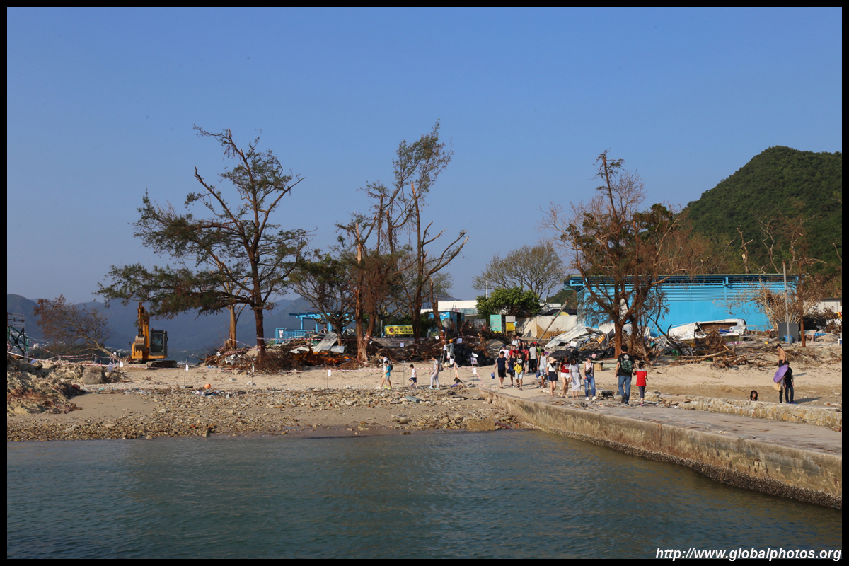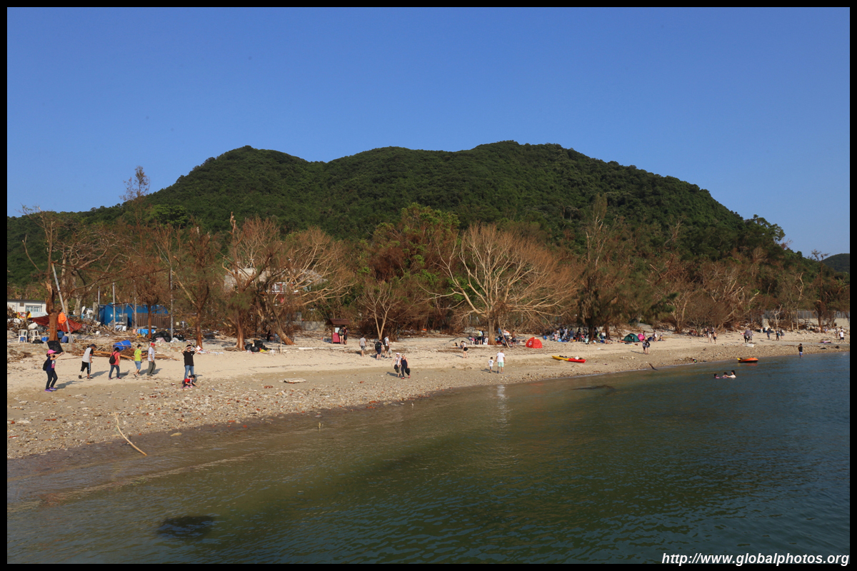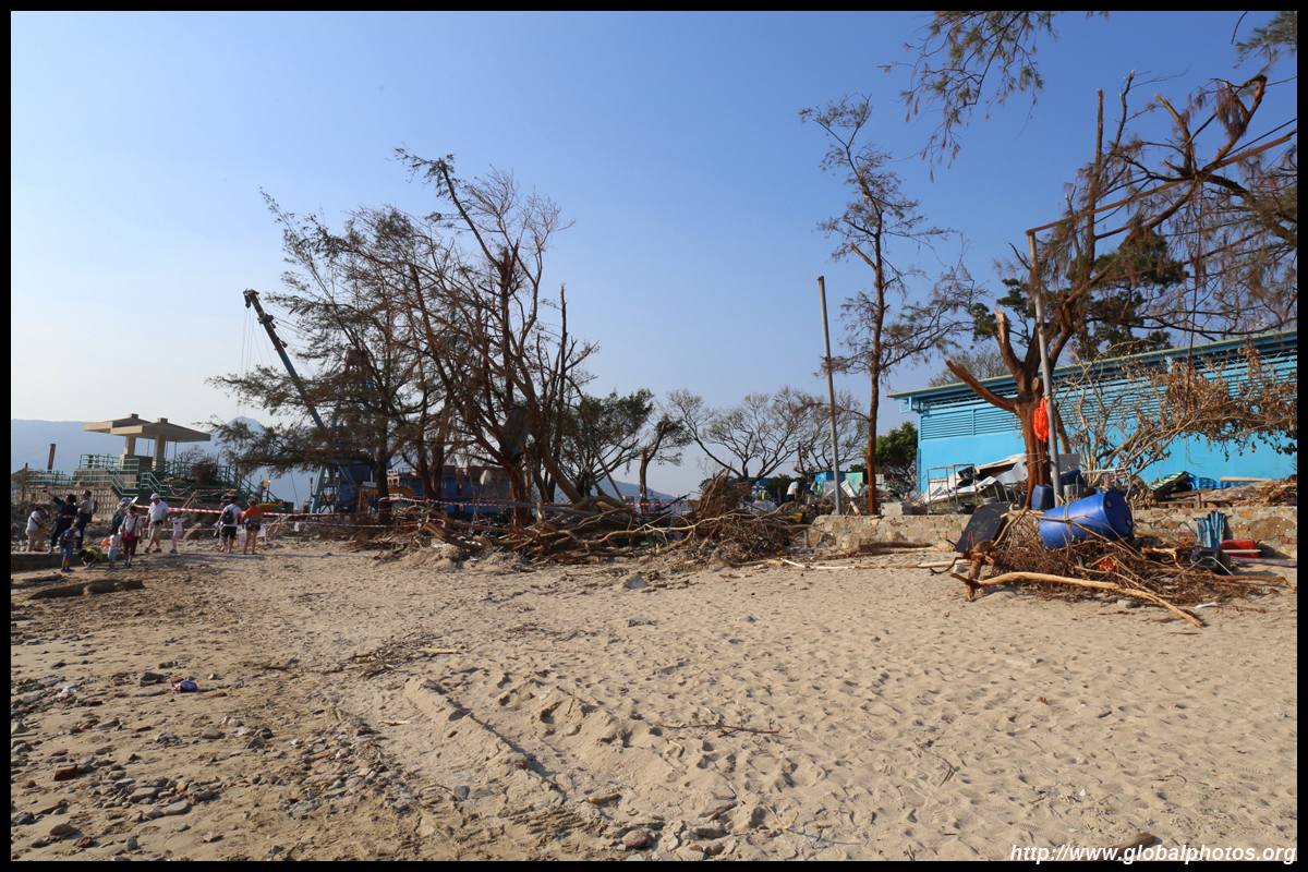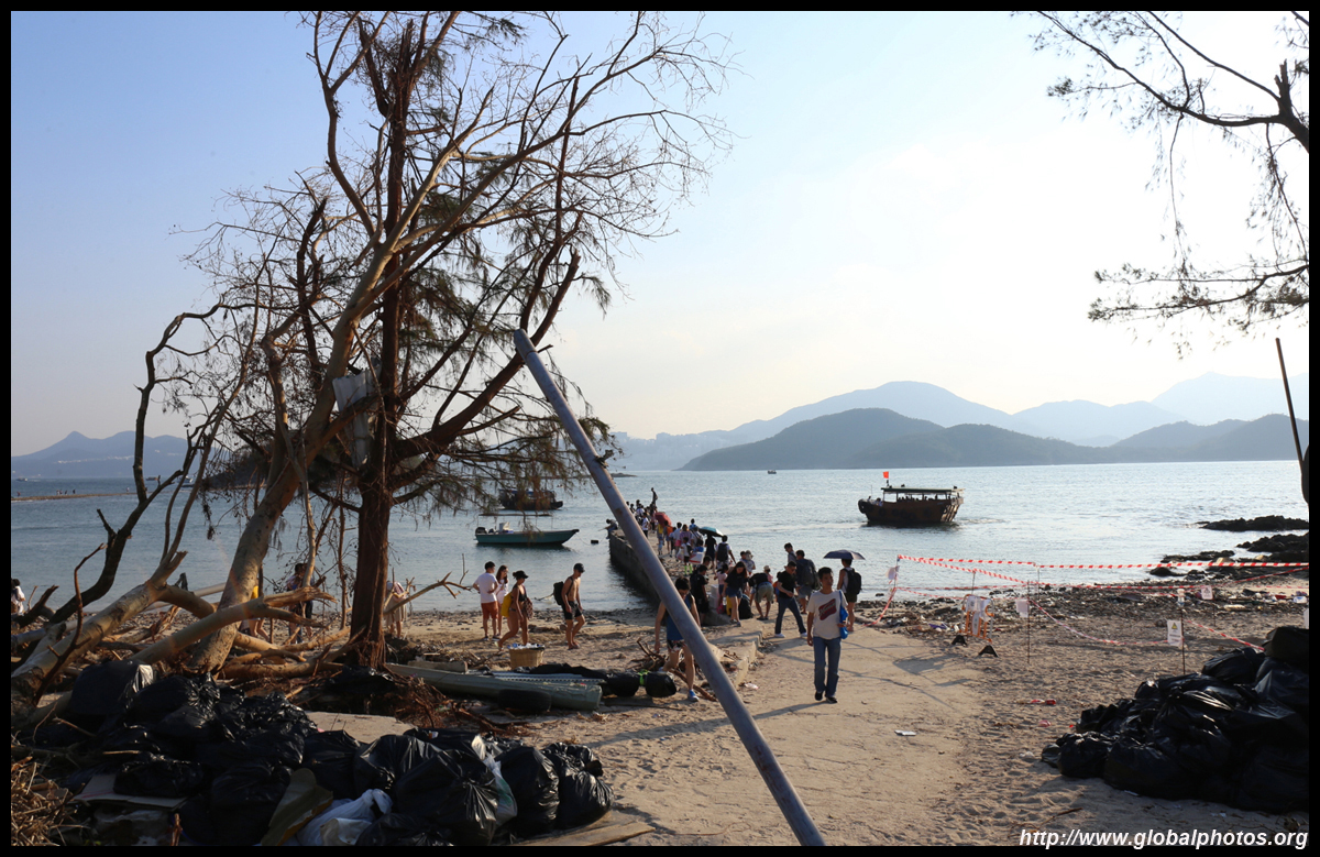 Sharp Island is part of the UNESCO Global Geopark and is a popular trip out of Sai Kung. Numerous kaito/ferries make the 2km journey to the island, which is famous for the natural sand levee (tombolo) to neighbouring Kiu Tau island. Visiting shortly after Super Typhoon Mangkhut hit, the damage to the island's facilities was quite evident, and many tree branches and garbage littered the beach.