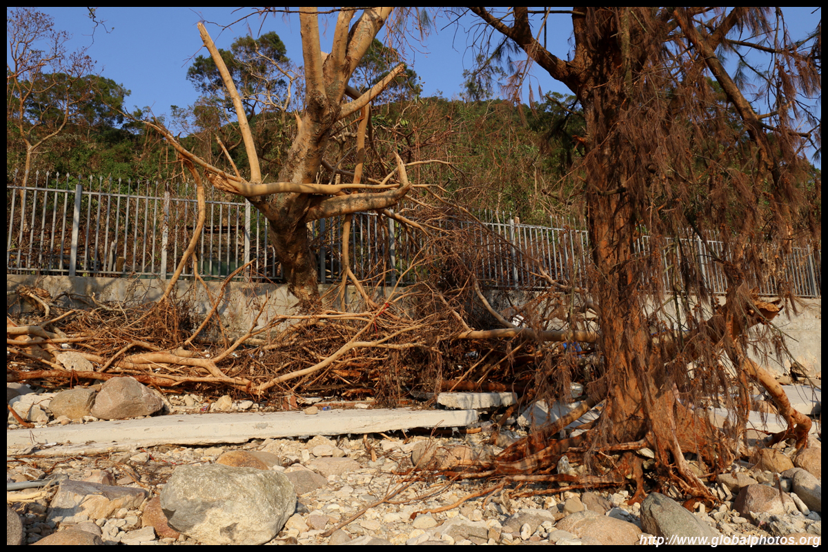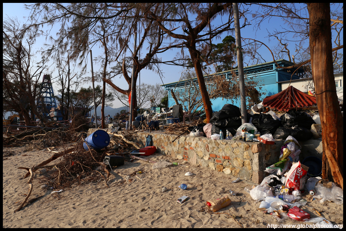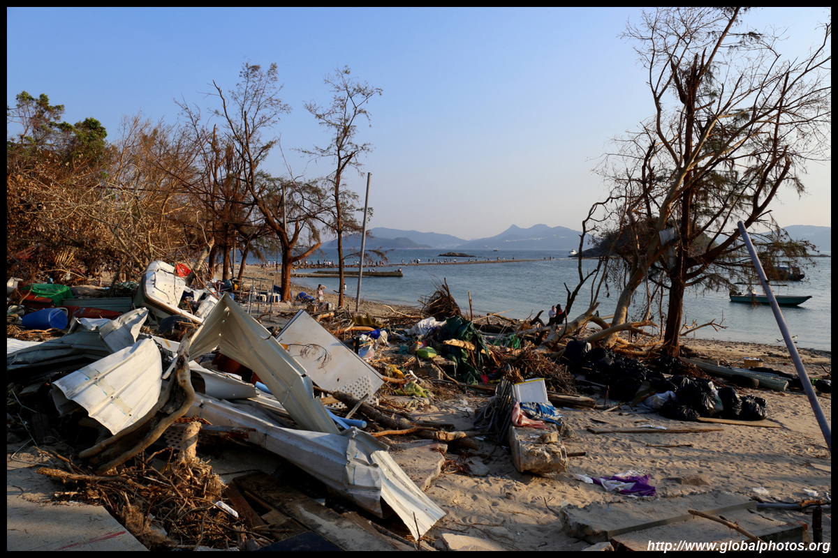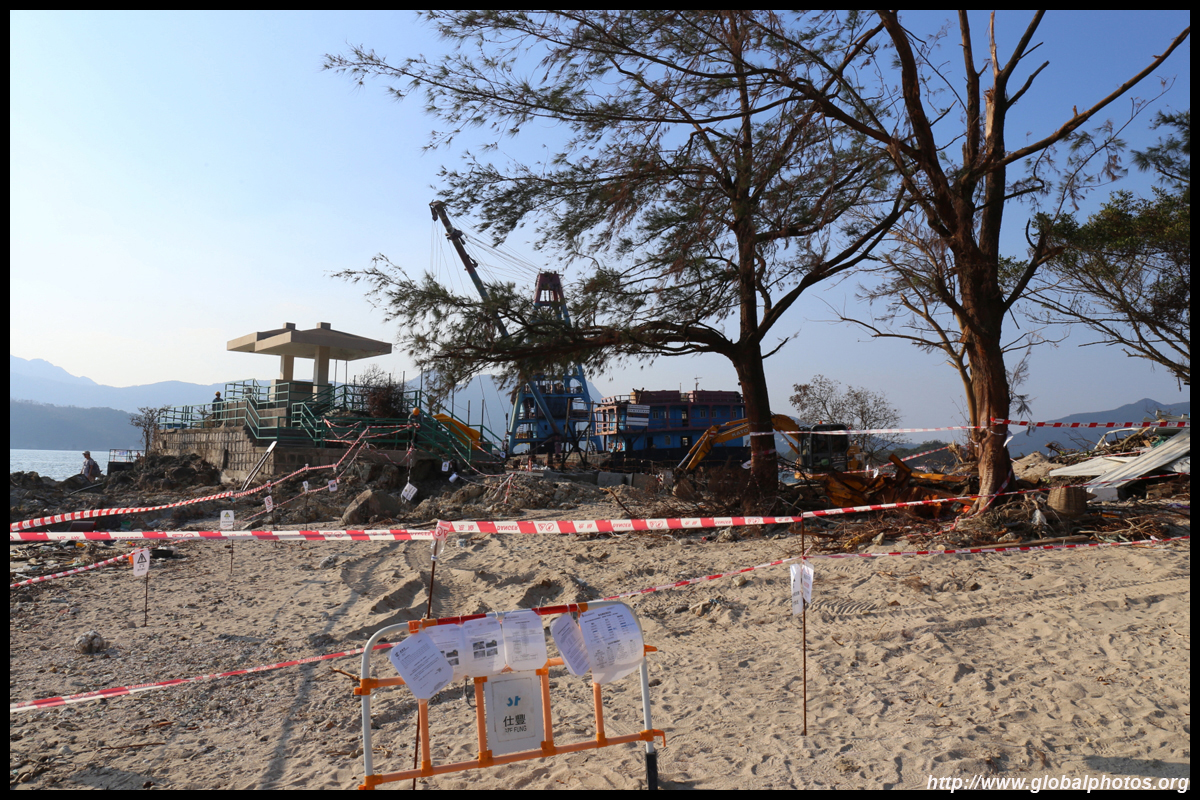 Sharp Island is part of the UNESCO Global Geopark and is a popular trip out of Sai Kung. Numerous kaito/ferries make the 2km journey to the island, which is famous for the natural sand levee (tombolo) to neighbouring Kiu Tau island. Visiting shortly after Super Typhoon Mangkhut hit, the damage to the island's facilities was quite evident, and many tree branches and garbage littered the beach.