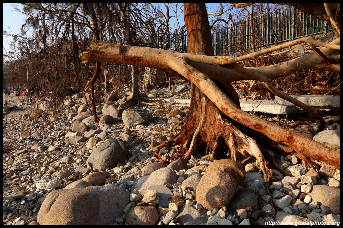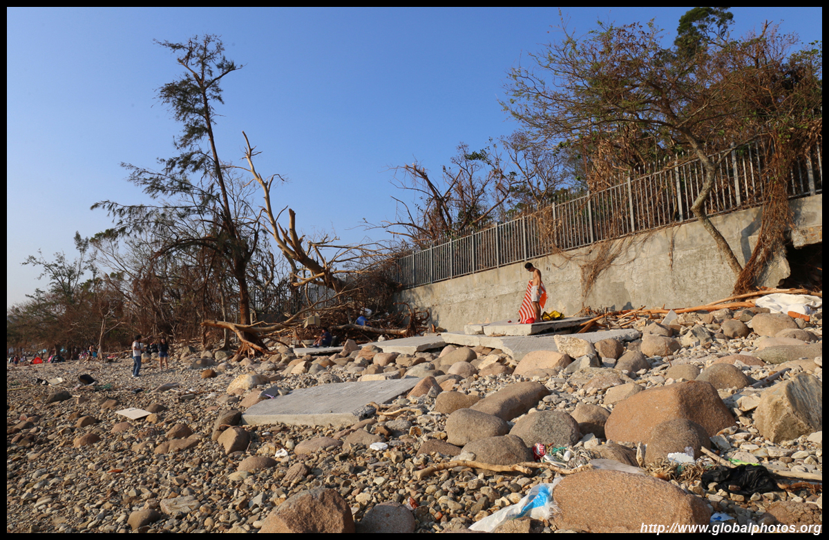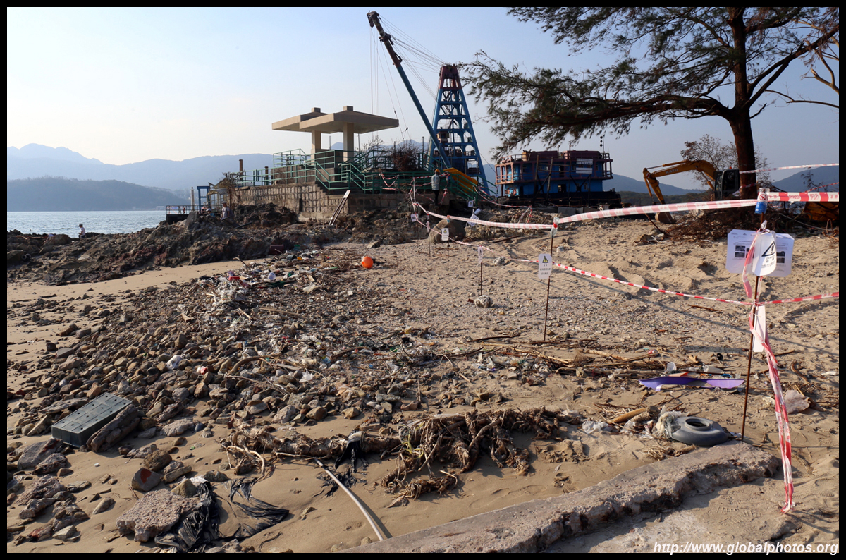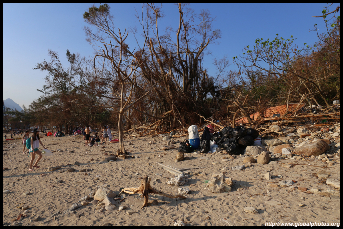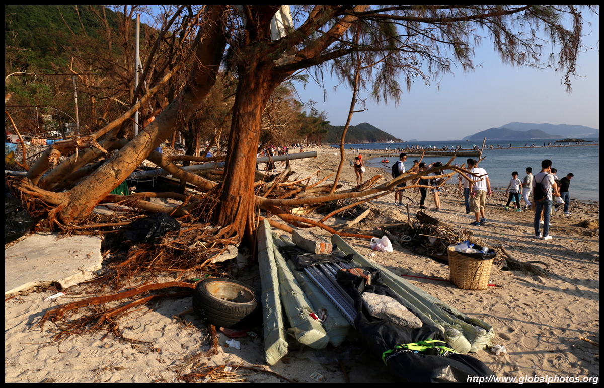 Sharp Island is part of the UNESCO Global Geopark and is a popular trip out of Sai Kung. Numerous kaito/ferries make the 2km journey to the island, which is famous for the natural sand levee (tombolo) to neighbouring Kiu Tau island. Visiting shortly after Super Typhoon Mangkhut hit, the damage to the island's facilities was quite evident, and many tree branches and garbage littered the beach.