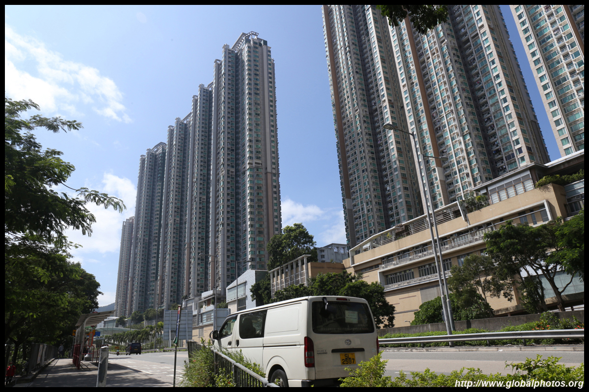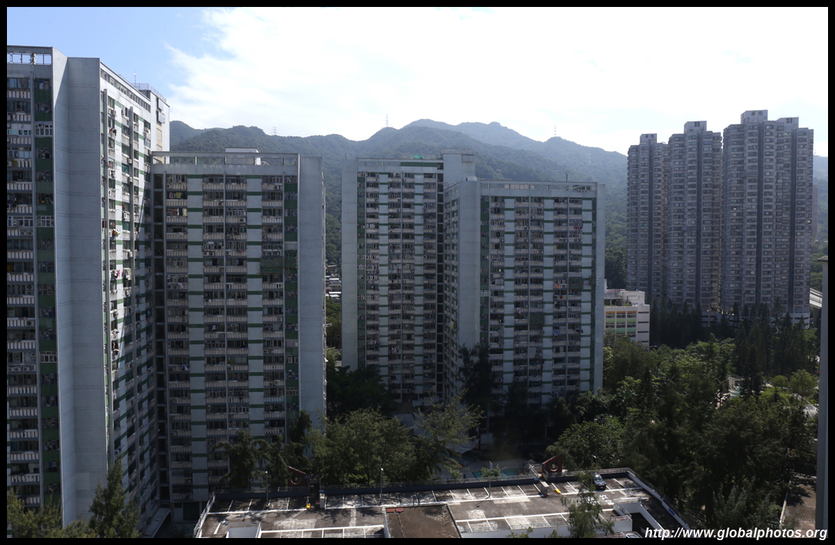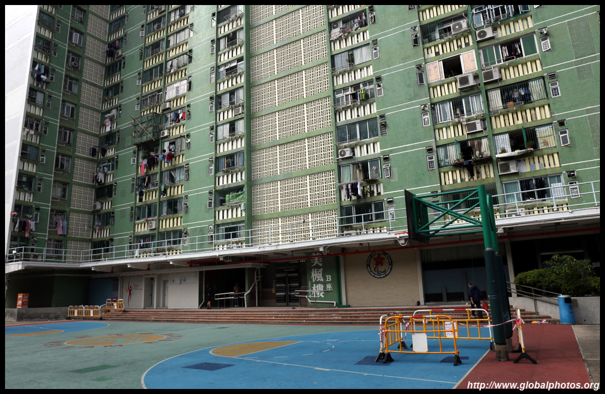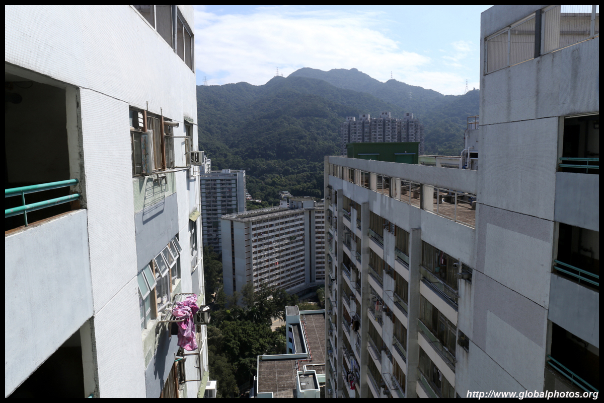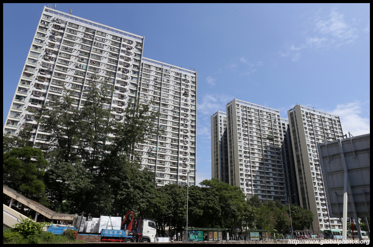 The rich have the convenience of accessing the train station downstairs, but the poor are only across the street living at Sun Chui Estate, which is a much older public housing estate from the early 1980s.