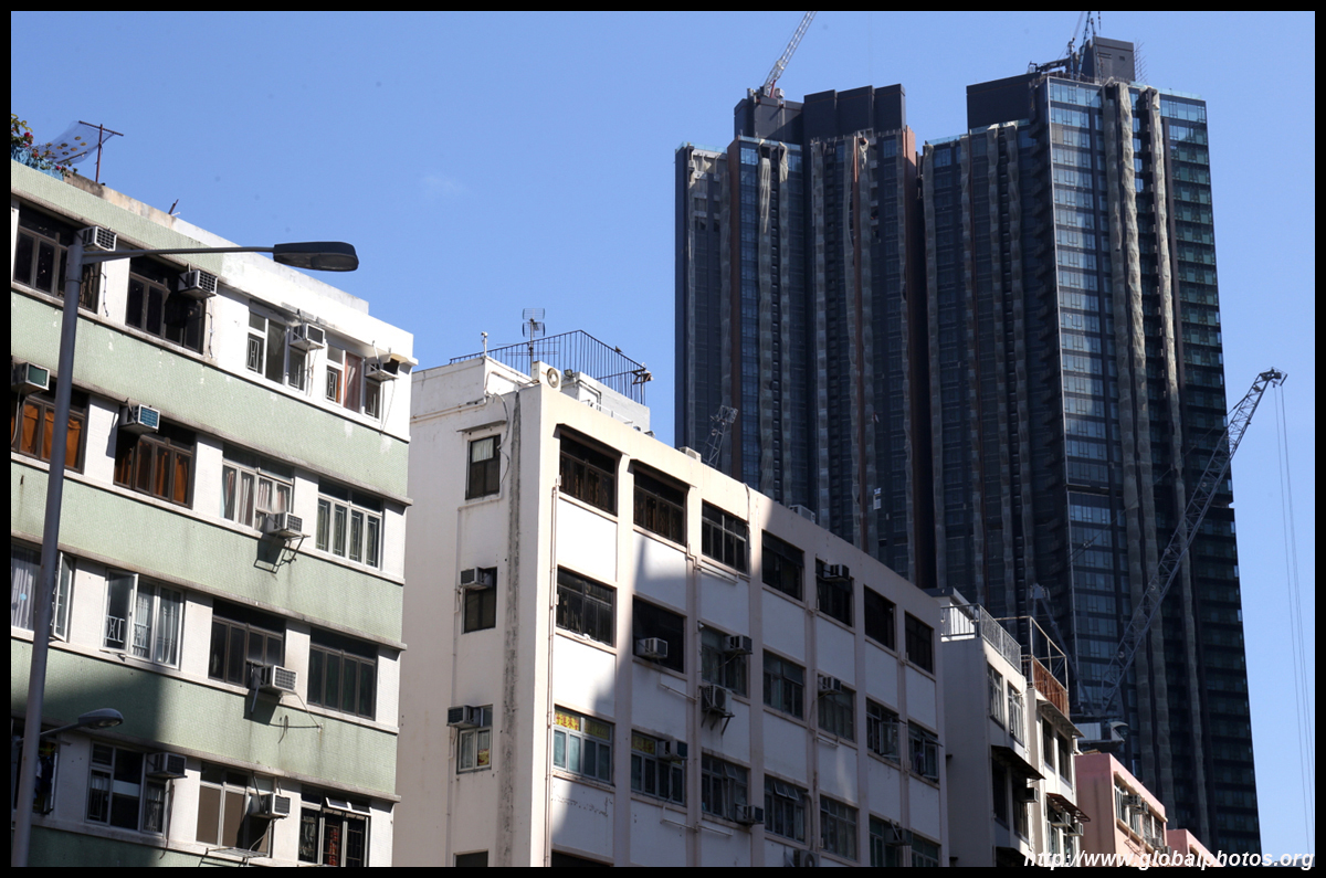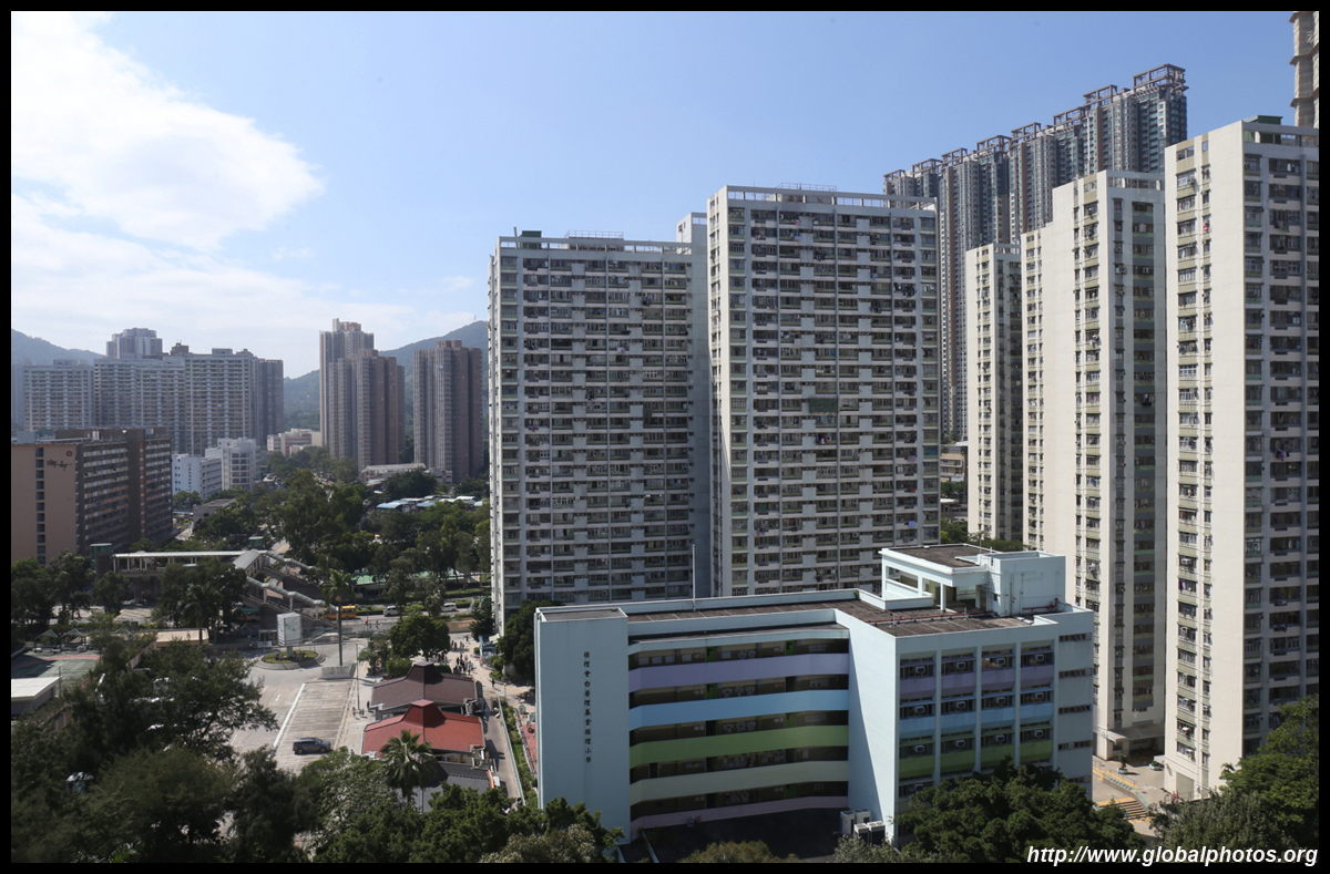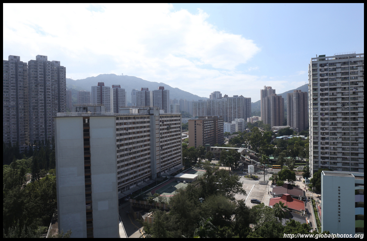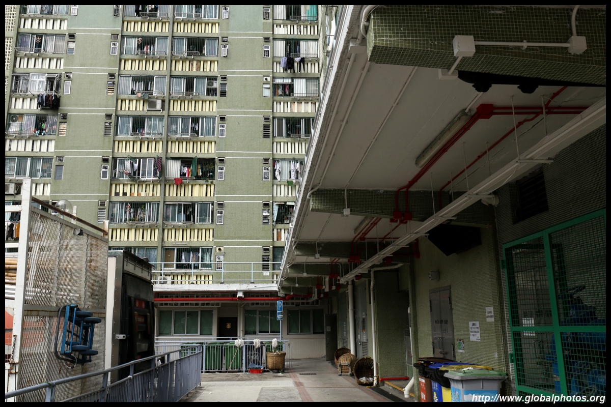 The rich have the convenience of accessing the train station downstairs, but the poor are only across the street living at Sun Chui Estate, which is a much older public housing estate from the early 1980s.