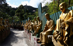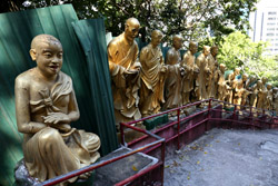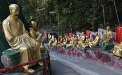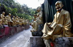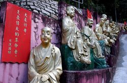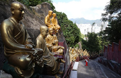 Tucked away on Shatin's hillsides, the Ten Thousand Buddhas Monastery actually has over 12,000 Buddha statues and dates from the 1950s. A path leads from behind the IKEA up a long staircase to reach the monastery part way uphill. Unfortunately, a sign warns of fake monks roaming around looking for money. The real ones won't do this.