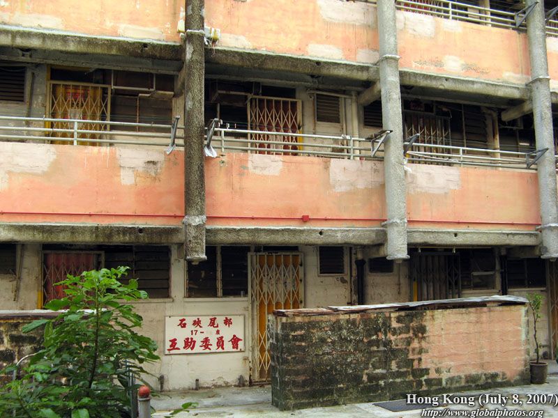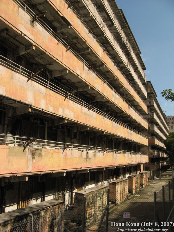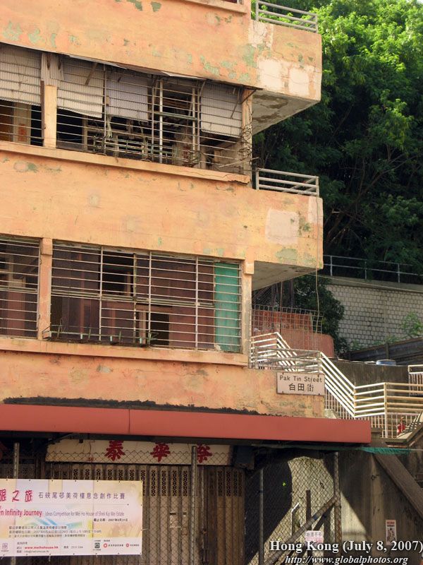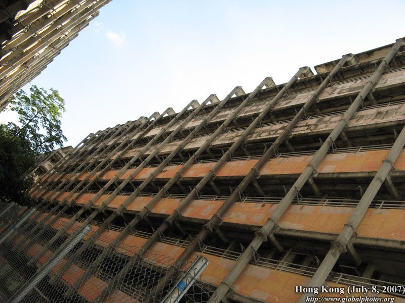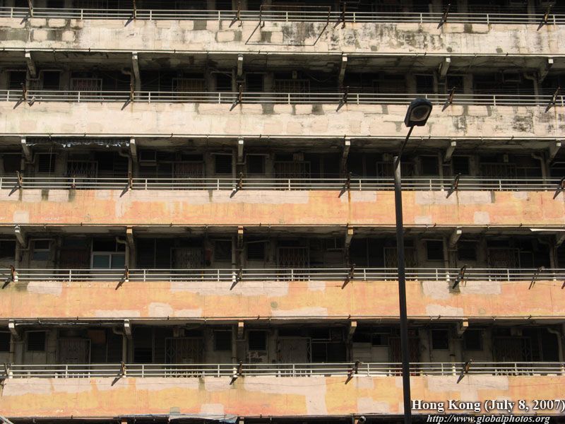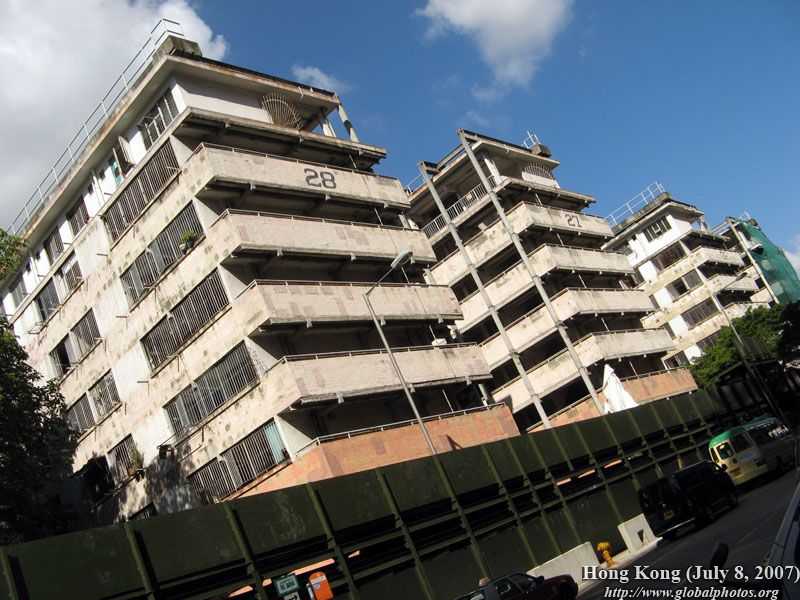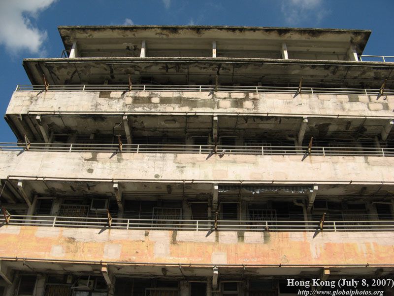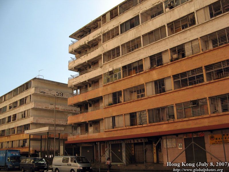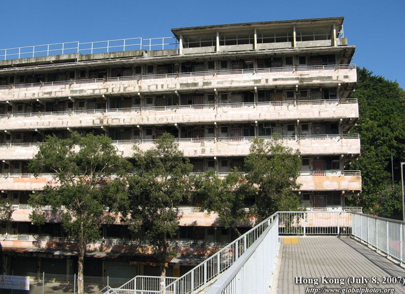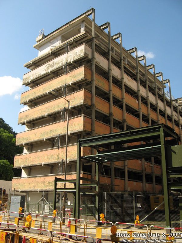 Shek Kip Mei Estate is Hong Kong's first public housing estate, built to house squatters left homeless from a massive fire. The first blocks were built between 1954 and 1955 with an H-shape and shared bathrooms, which were redeveloped into self-contained units in the 1980s. The next section was built in the 1960s with every 2 units sharing a bathroom.The estate's redevelopment took place in phases from 2000, with the last residents leaving in 2006. Below are photos from 2007 of the vacated blocks that had not been demolished yet.