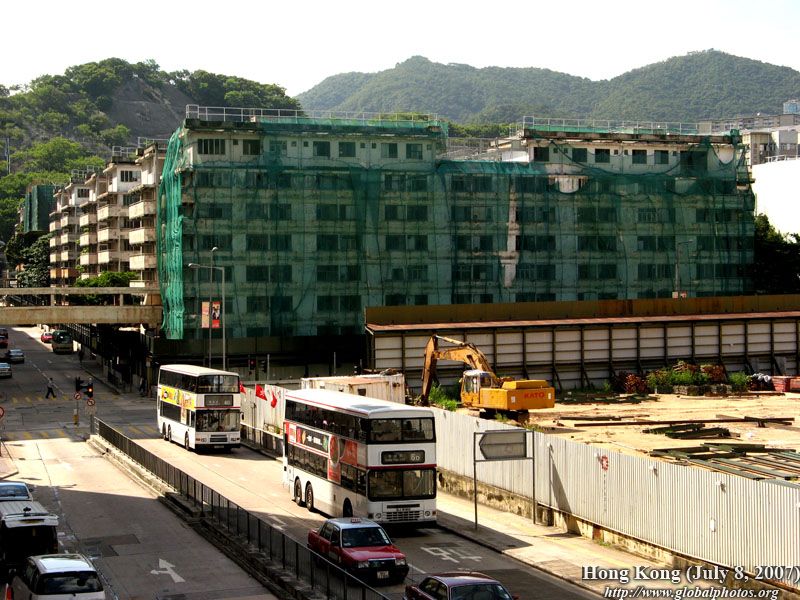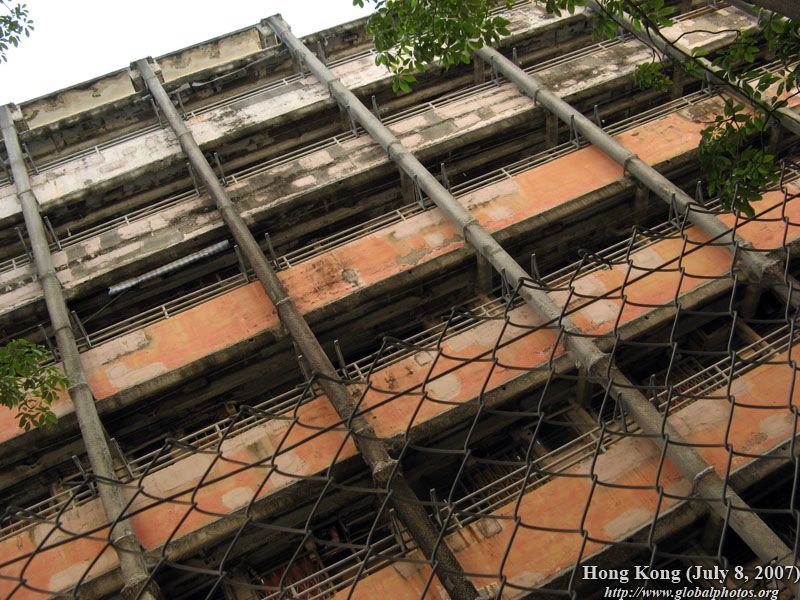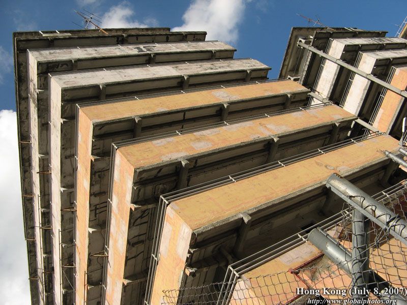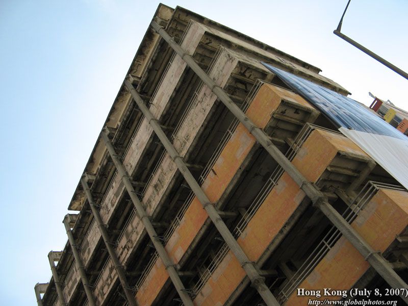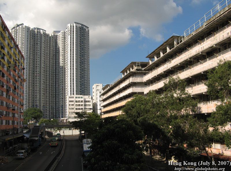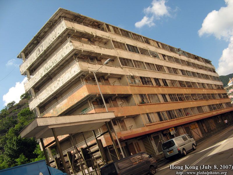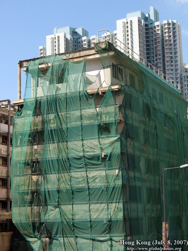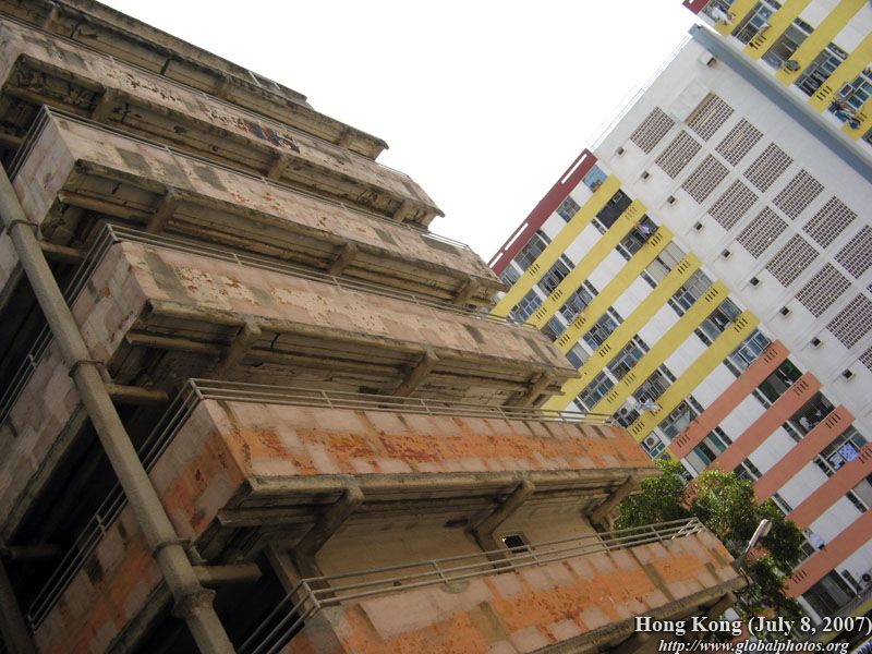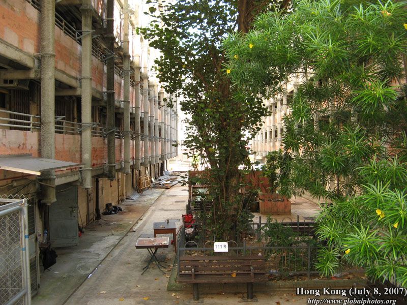 Shek Kip Mei Estate is Hong Kong's first public housing estate, built to house squatters left homeless from a massive fire. The first blocks were built between 1954 and 1955 with an H-shape and shared bathrooms, which were redeveloped into self-contained units in the 1980s. The next section was built in the 1960s with every 2 units sharing a bathroom.The estate's redevelopment took place in phases from 2000, with the last residents leaving in 2006. Below are photos from 2007 of the vacated blocks that had not been demolished yet.