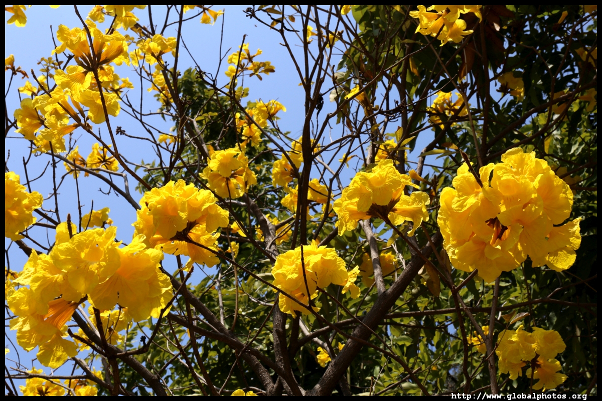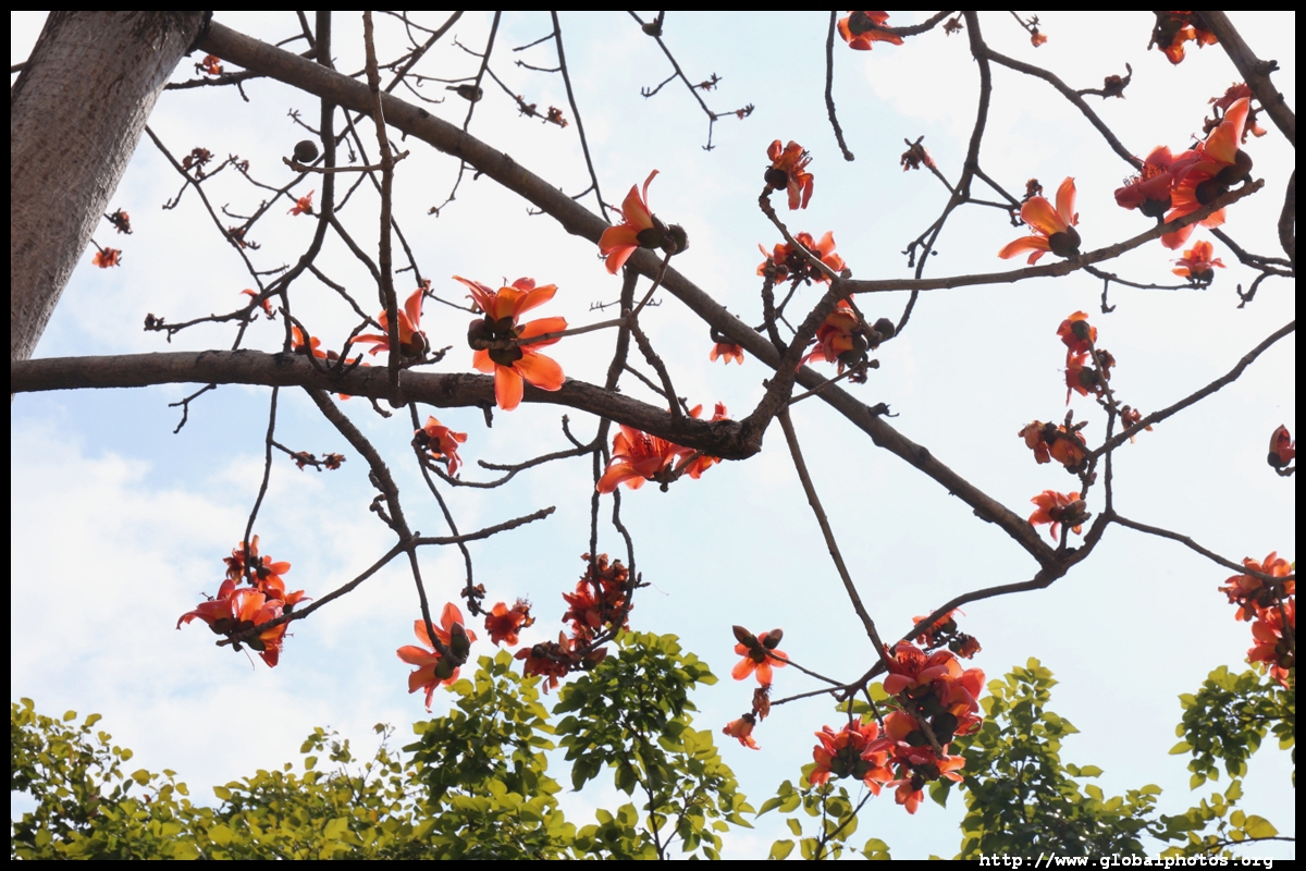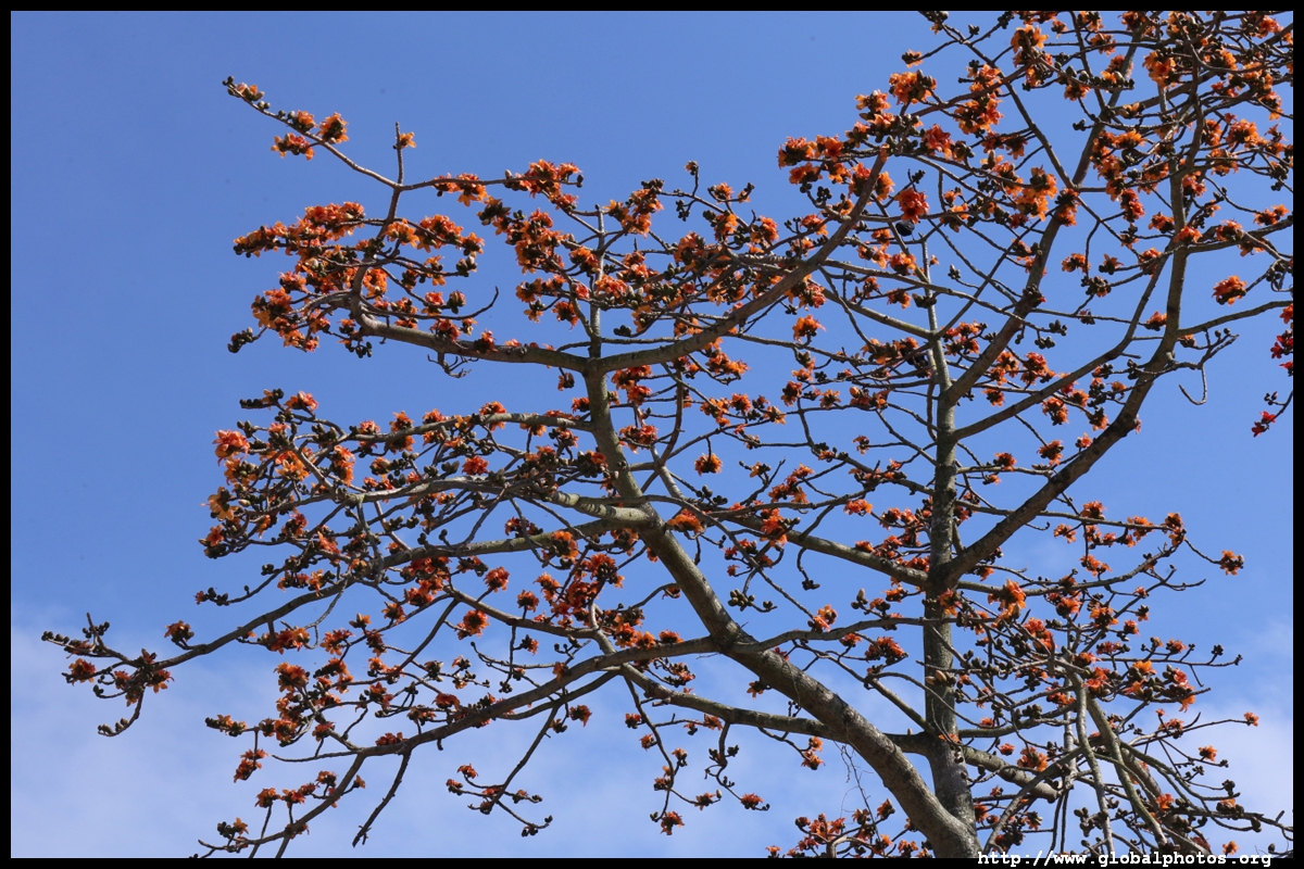 Cotton trees are bare most of the year but burst into colour during the spring.