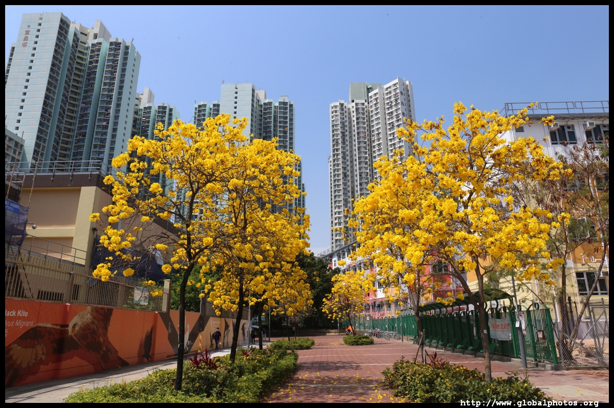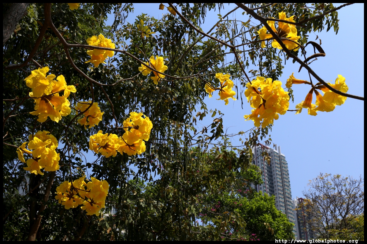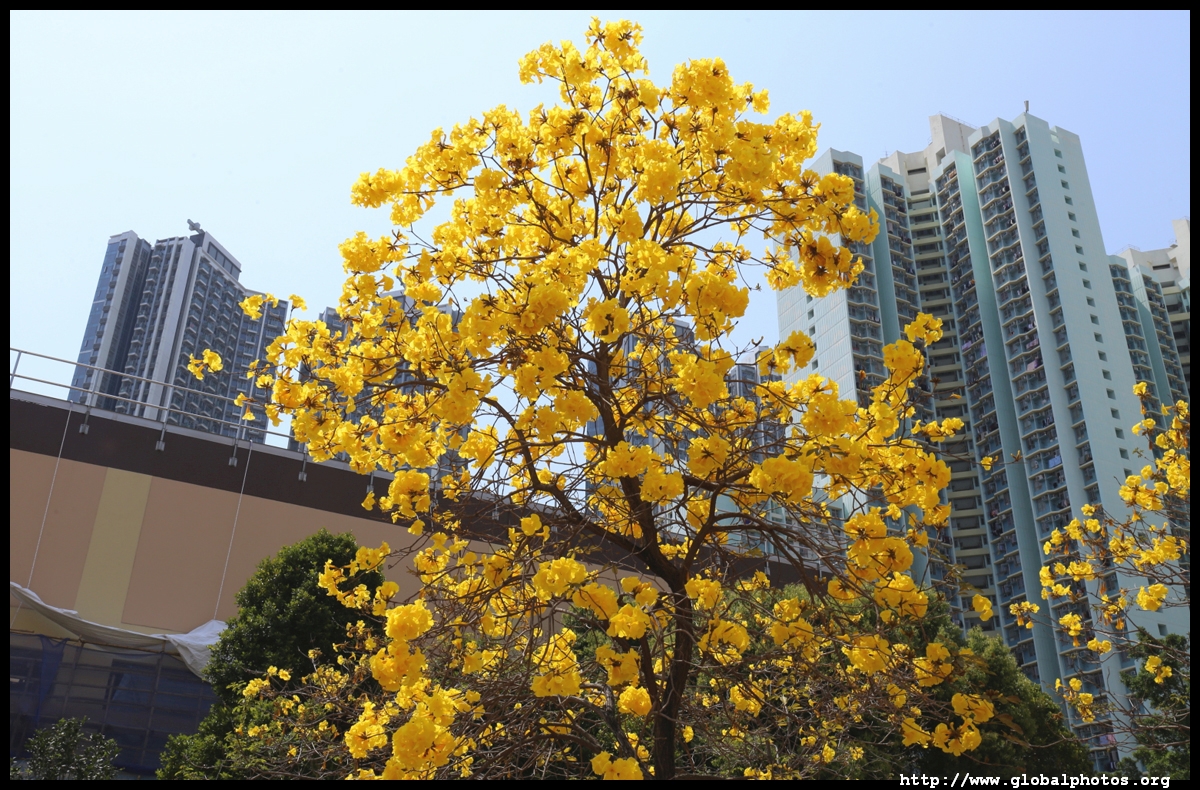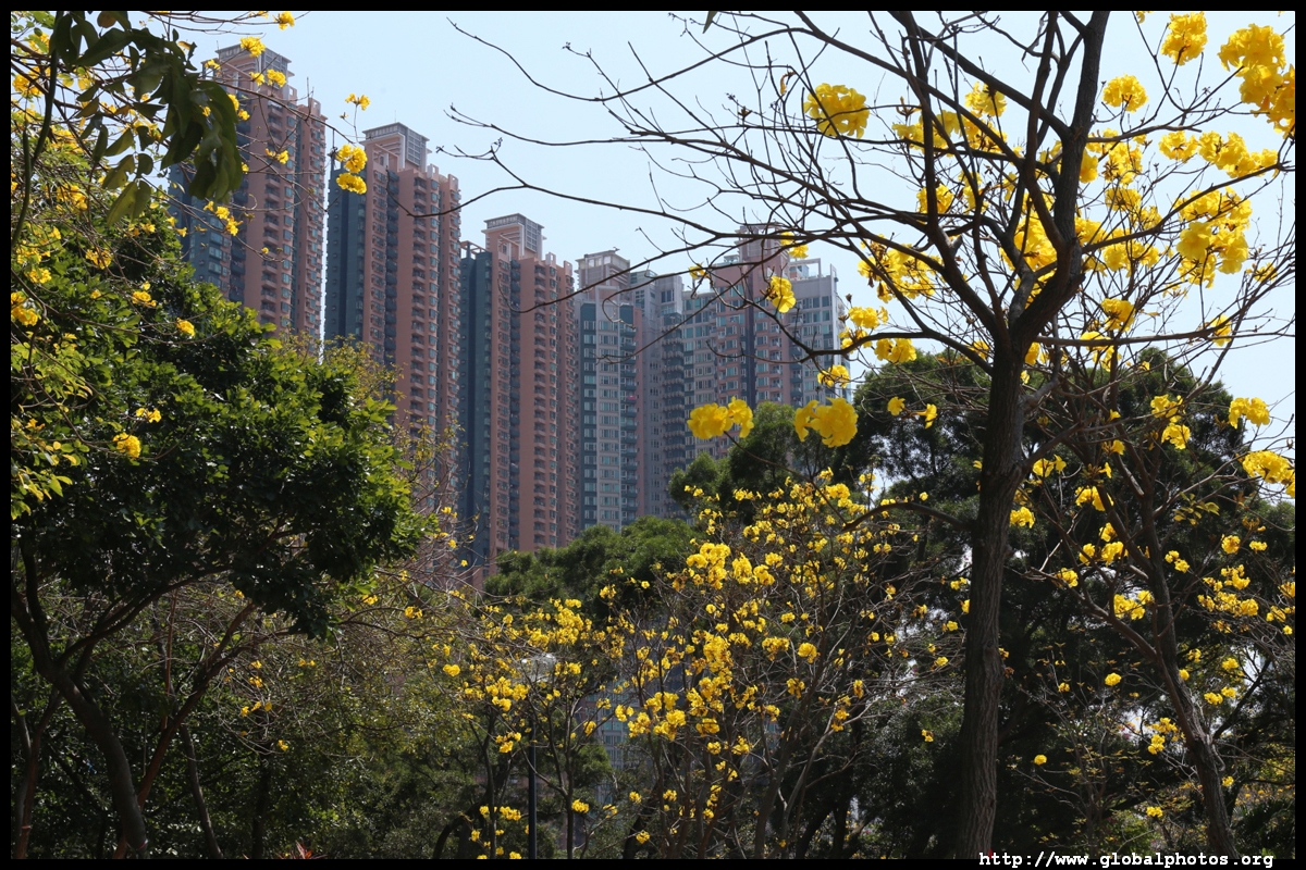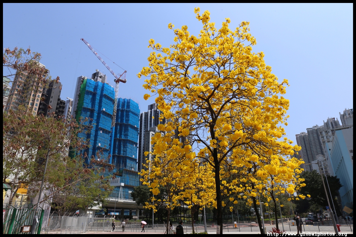 The worst of winter is probably over by the end of February, and colourful flowers begin to bloom in March.Nam Cheong Park and surrounding streets have many golden trumpet trees. They are native to South America but were widely planted in parks and around the city.