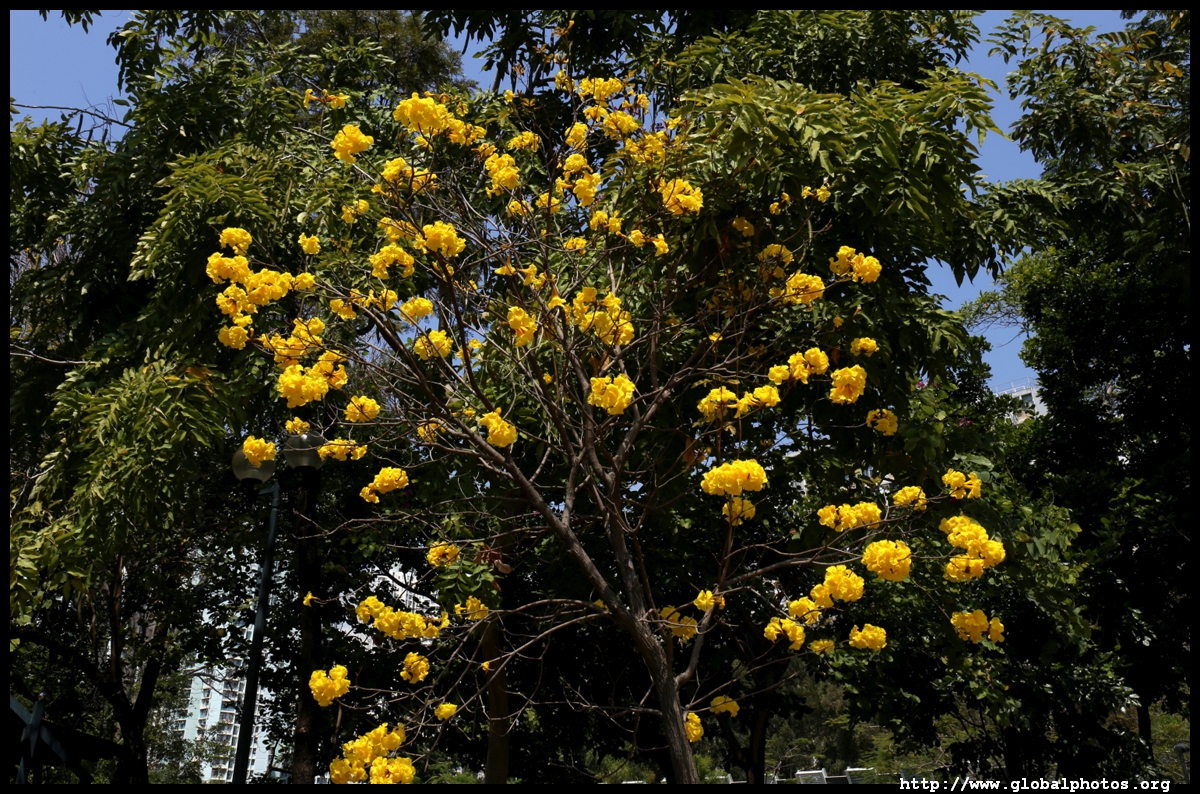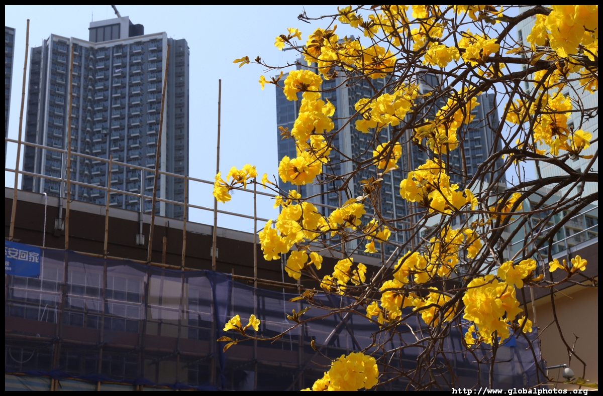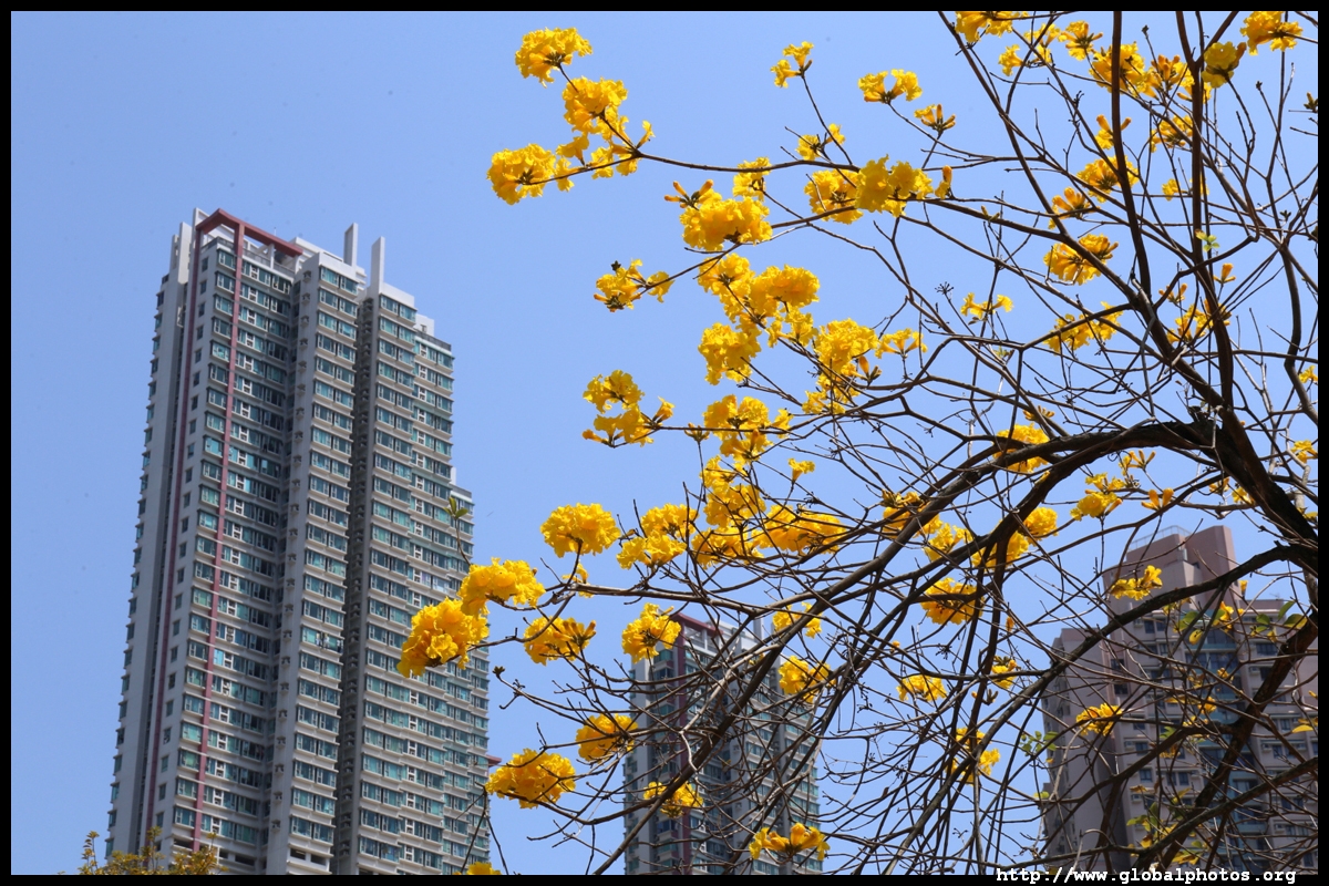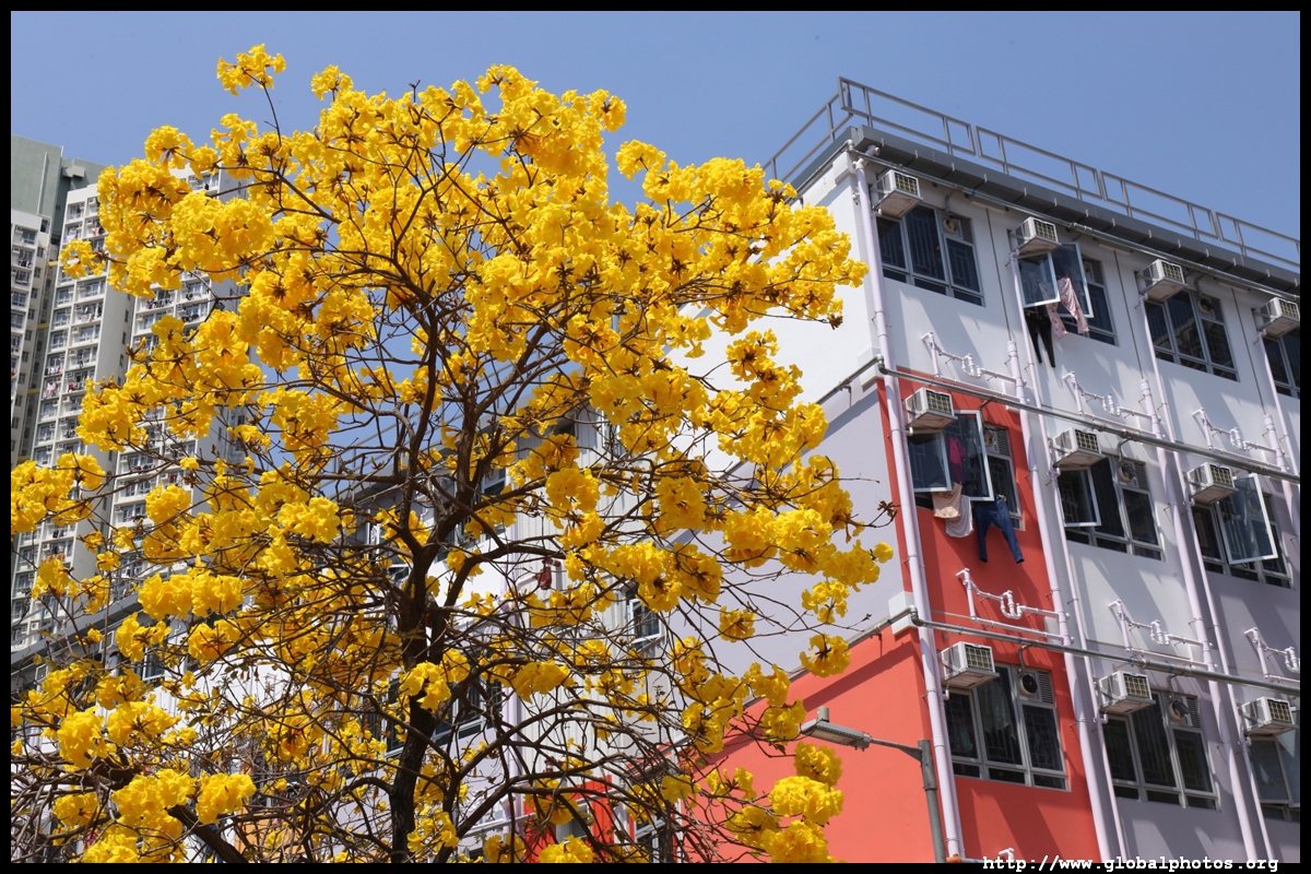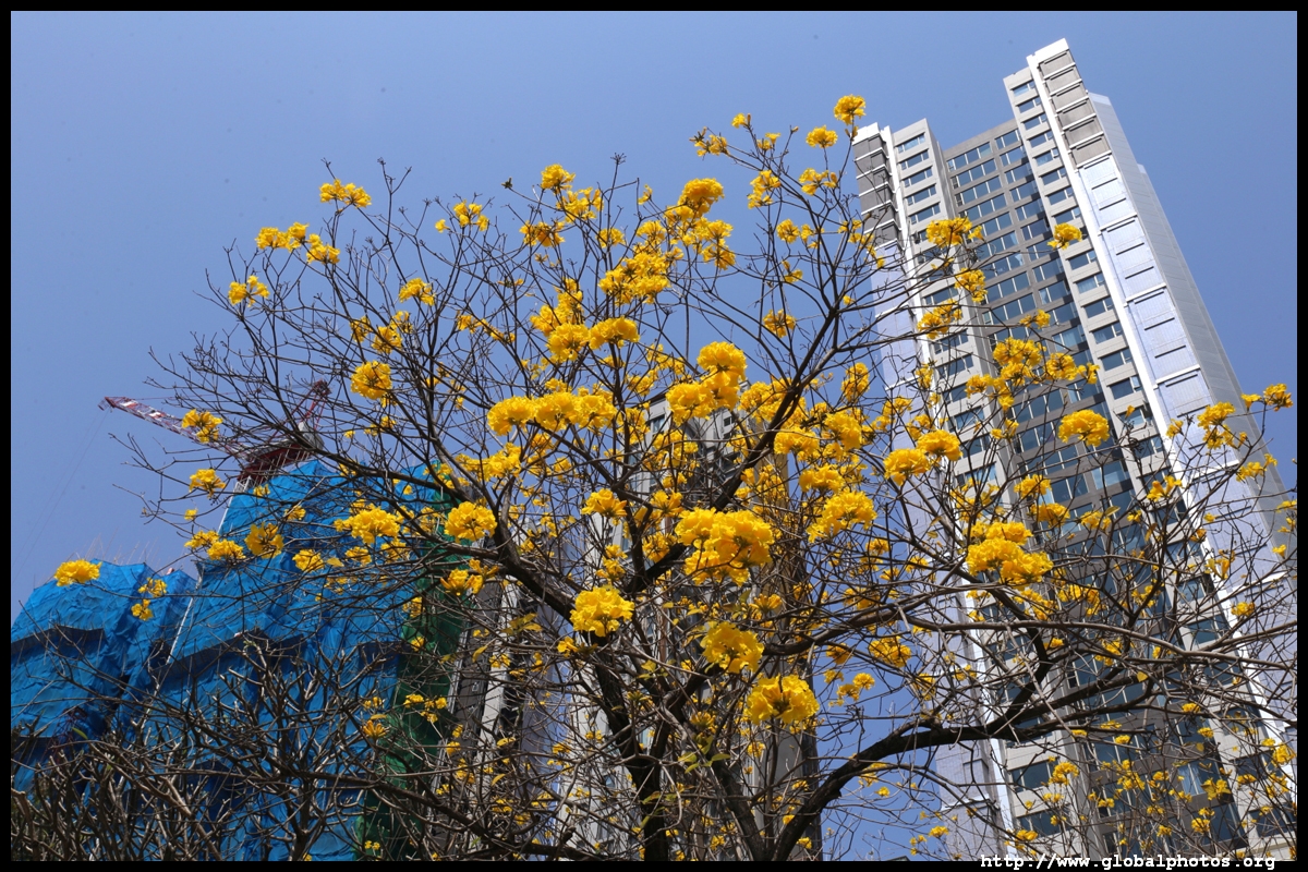 The worst of winter is probably over by the end of February, and colourful flowers begin to bloom in March.Nam Cheong Park and surrounding streets have many golden trumpet trees. They are native to South America but were widely planted in parks and around the city.