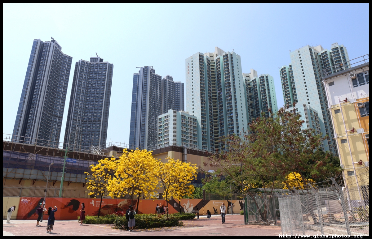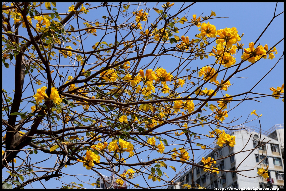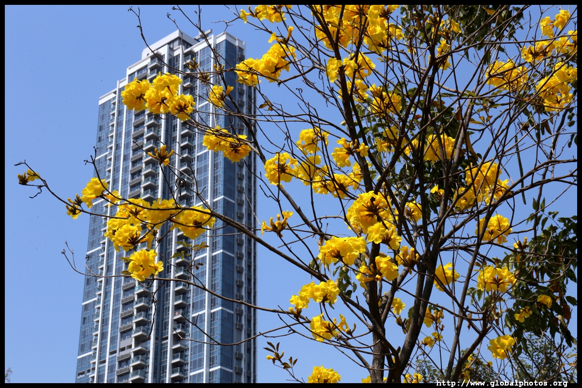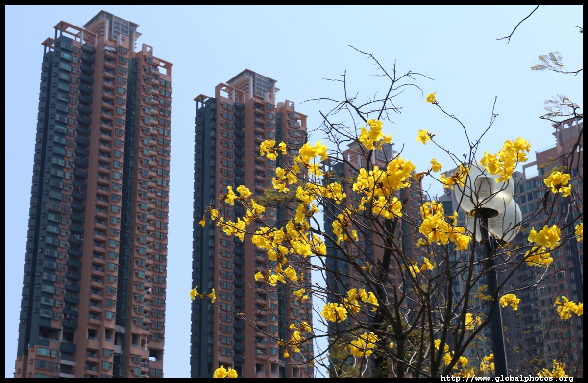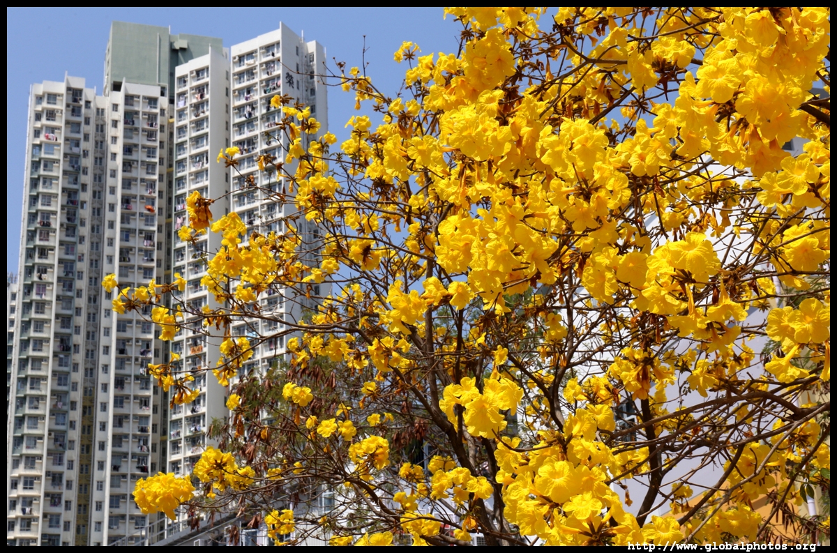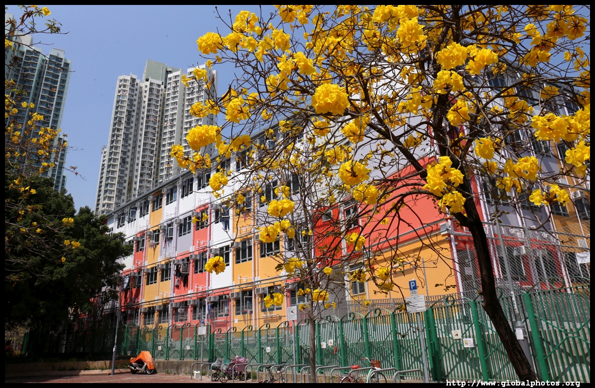 The worst of winter is probably over by the end of February, and colourful flowers begin to bloom in March.Nam Cheong Park and surrounding streets have many golden trumpet trees. They are native to South America but were widely planted in parks and around the city.