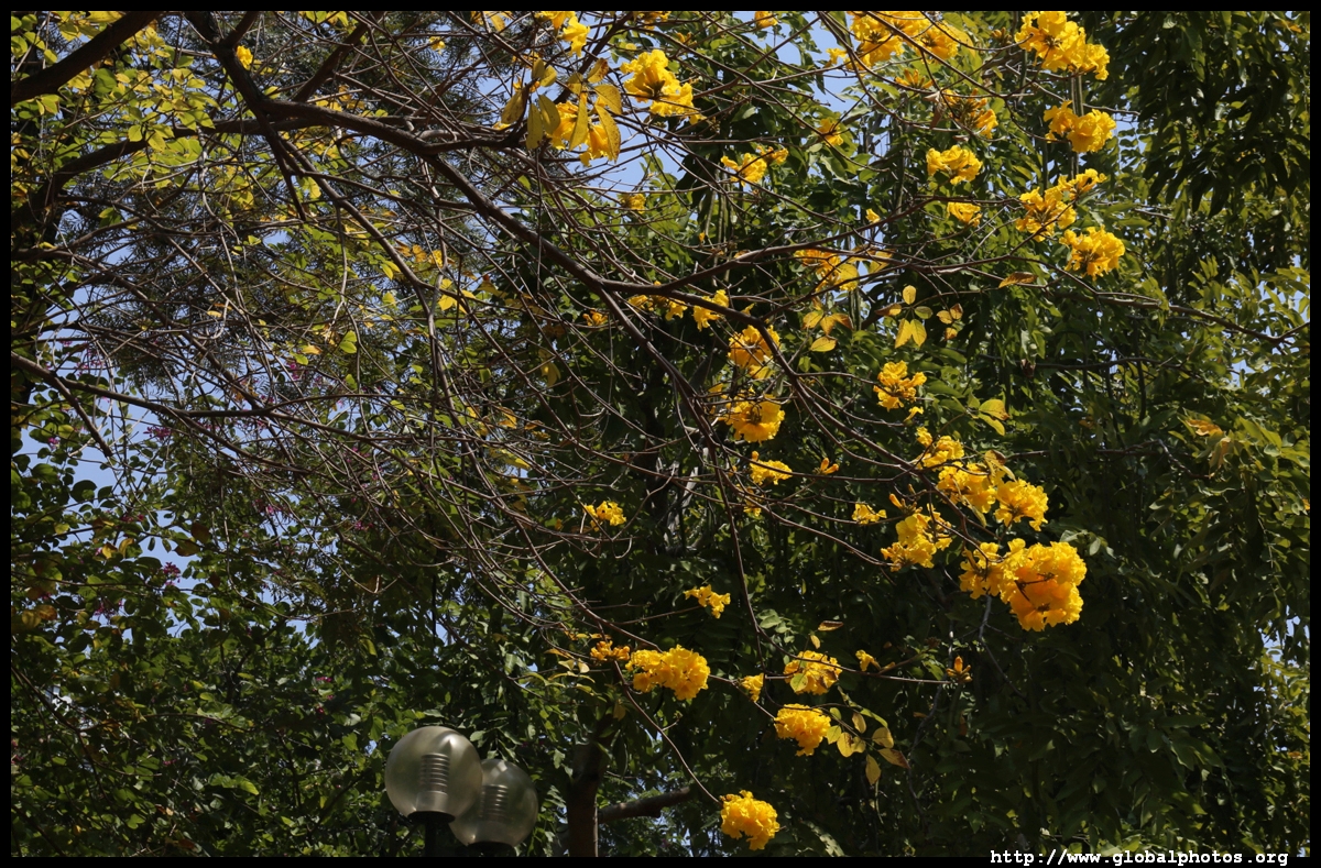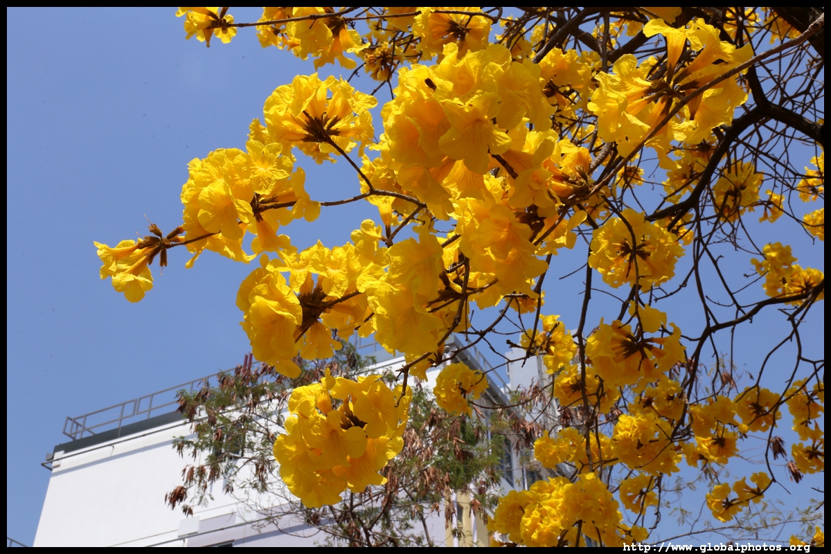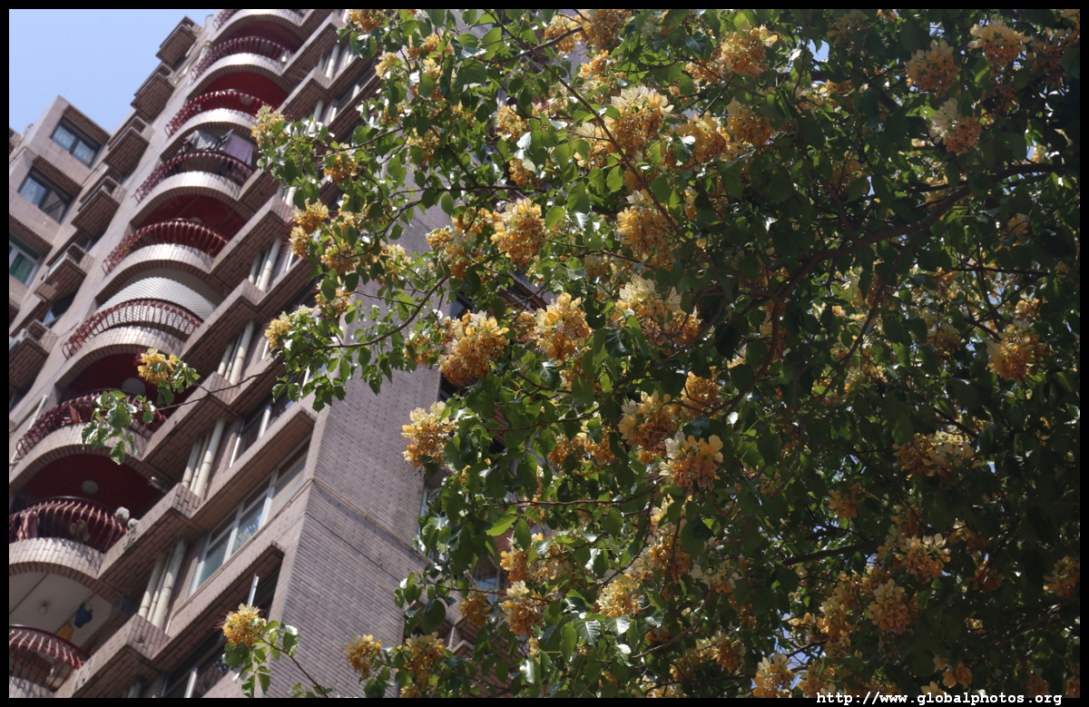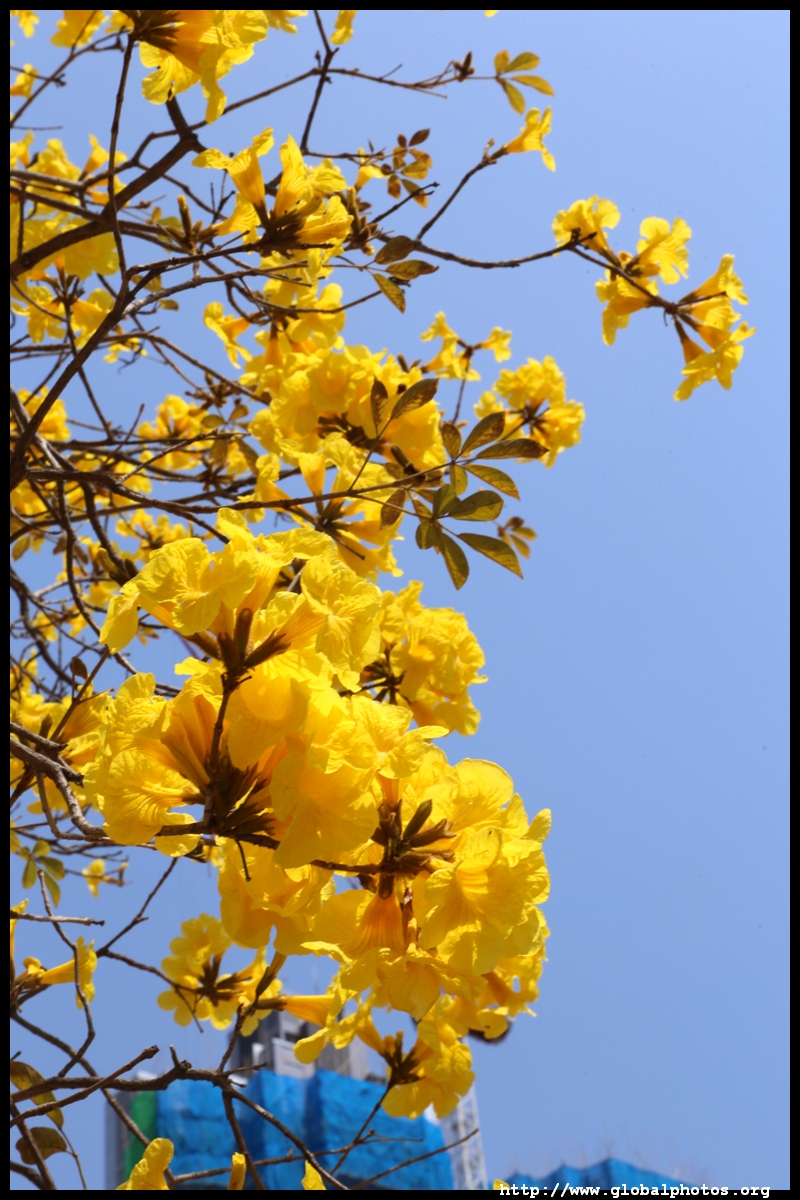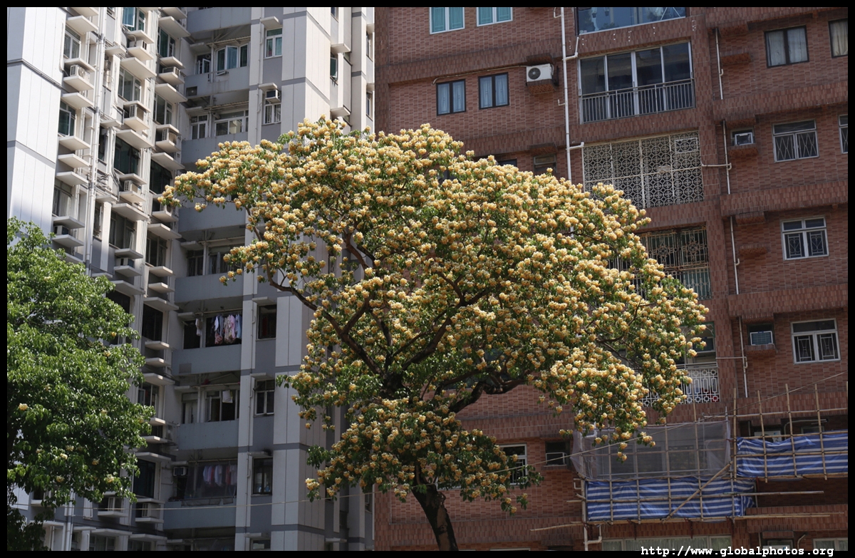 The worst of winter is probably over by the end of February, and colourful flowers begin to bloom in March.Nam Cheong Park and surrounding streets have many golden trumpet trees. They are native to South America but were widely planted in parks and around the city.