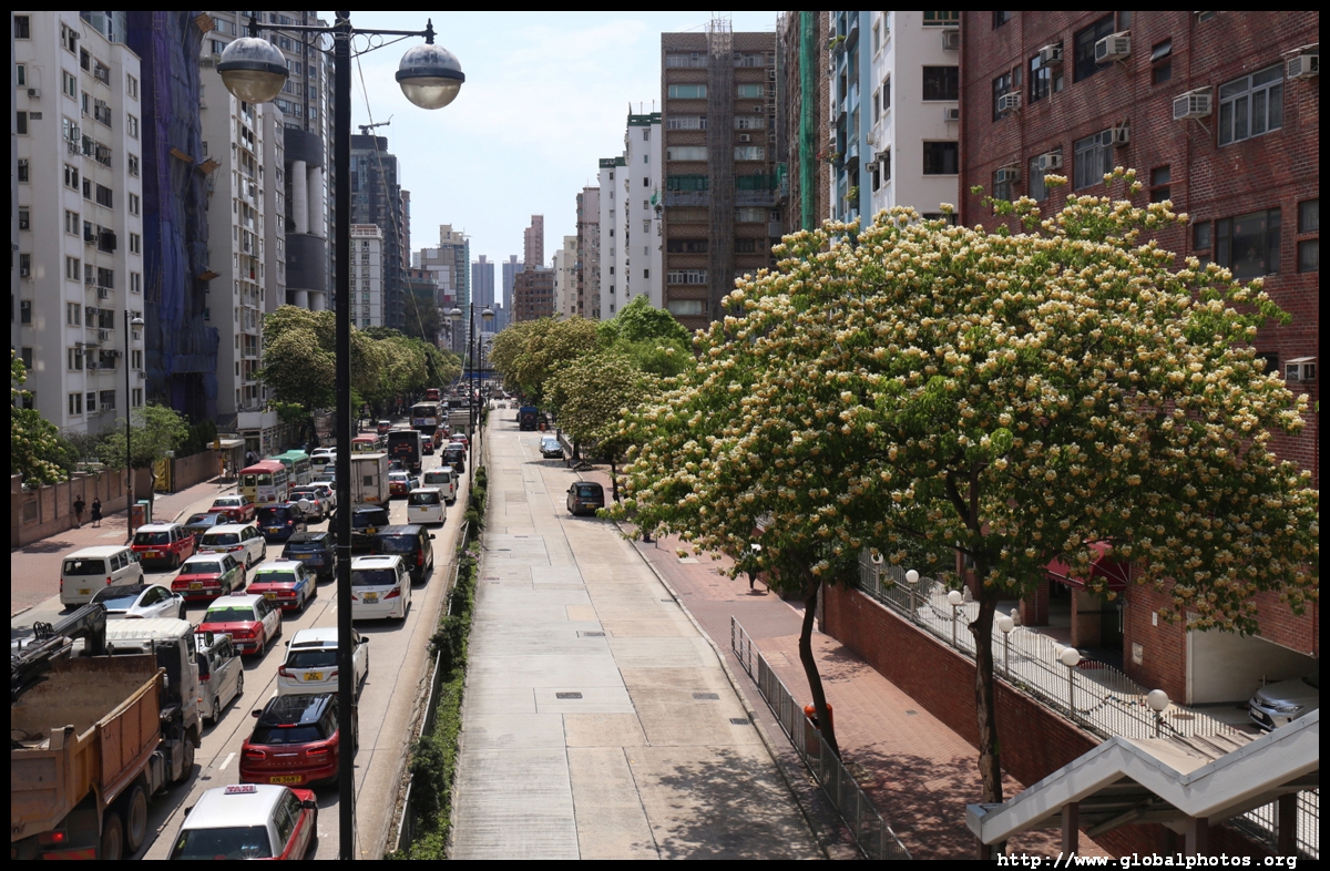 The stretch of Prince Edward Road West leading to the flower market and Mongkok is lined with spider trees (crateva unilocularis).