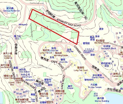 Continuing east, you will descend along Ma Hang Prison's walls and end up on Carmel Road, just steps from Stanley Plaza. This short hike of a few hundred metres is packed with interesting historic sites. However, these have not yet been classified by the heritage department for preservation. If you are interested in colonial transport history, there was also another road from Stanley to the northern side of Hong Kong Island dating from the 1840s. Remnants of Shaukiwan Road are a bit harder to find than this one. | |||