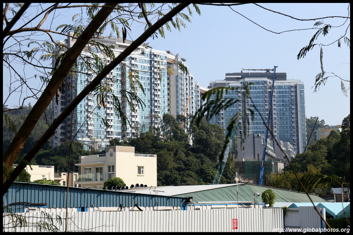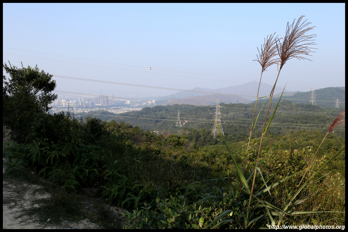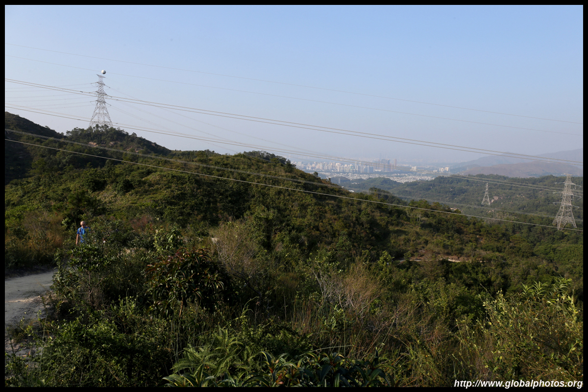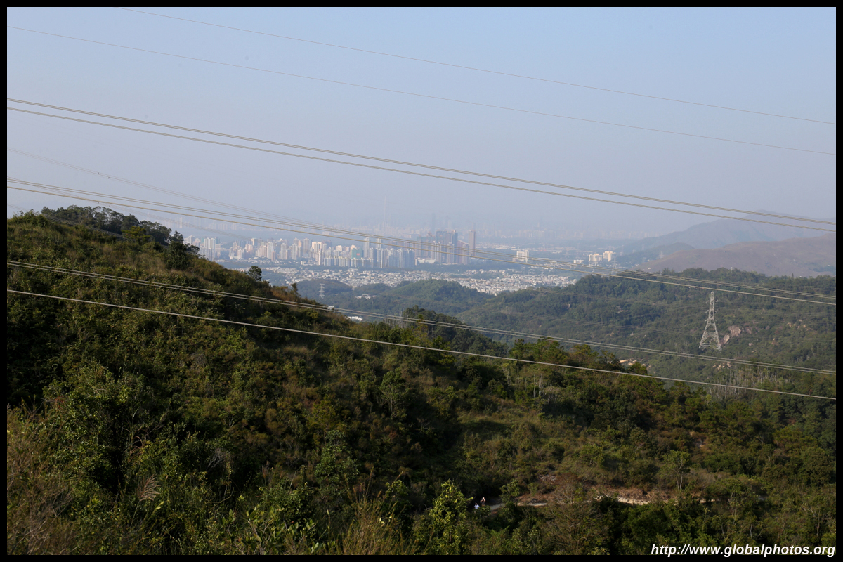 Yuen Long is in the distance behind the hills. Although hazy, Shenzhen's skyline was also visible across the water.