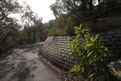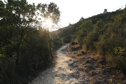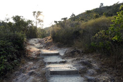 As you continue uphill, you will notice a bend on the road, an open area with views of the reservoir, and a dirt path emerging to the right just beyond the portable toilet. Head down that path for another 30 minutes or so, and between the 181 and 182 distance markers is a staircase with an obvious label of the view above.