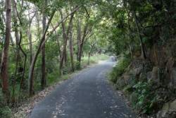 The minibus stops at the end of the main road facing the Tin Hau temple. Take the path to the left of the temple and continue heading into the forest towards the reservoir. The path is flat although there is a short steep ascent as you near the reservoir.
