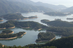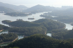 Tai Lam Chung Reservoir was built in 1951 with a dam that has created a number of small islets nicknamed the "thousand islands". Reaching the viewpoint is quite easy along Section 10 of the MacLehose Trail, about 1.5 hours from the nearest town, So Kwun Wat.