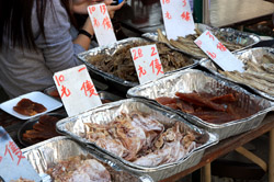 Outside, you can savour plenty of freshly-grilled seafood or purchased dried ones that you can cook at home later.
