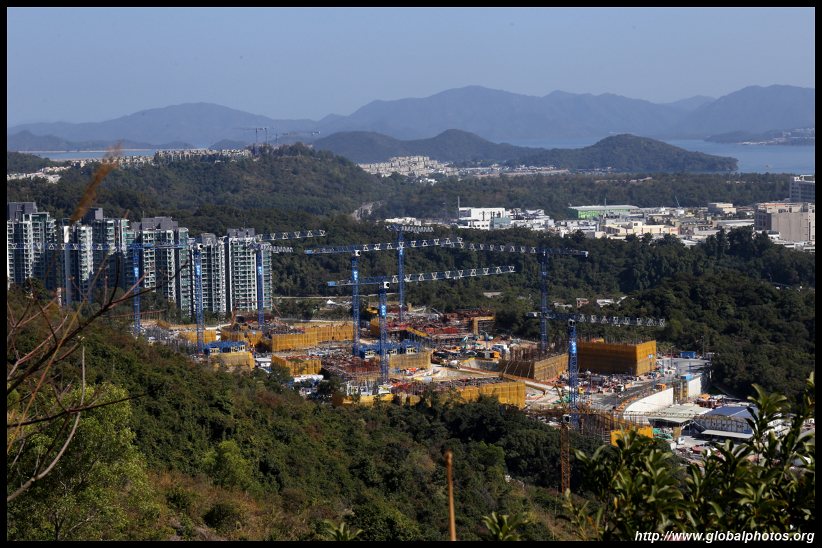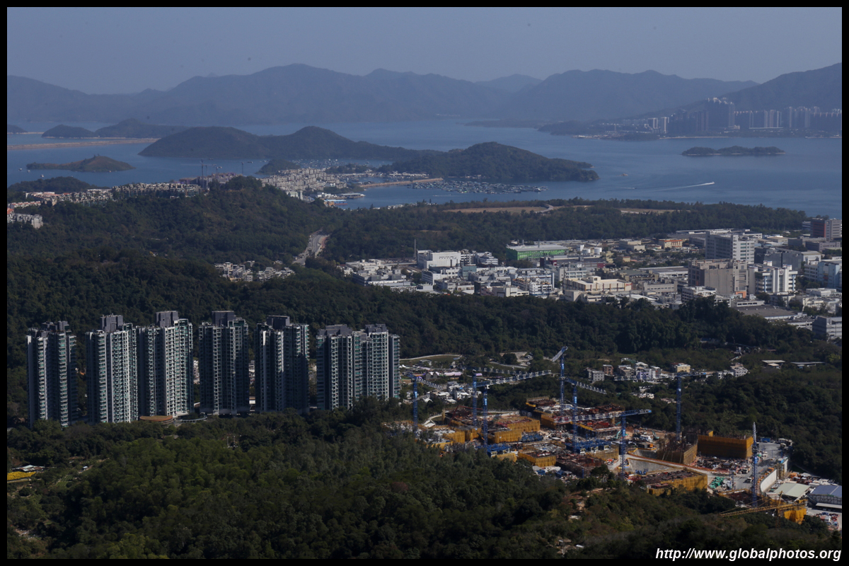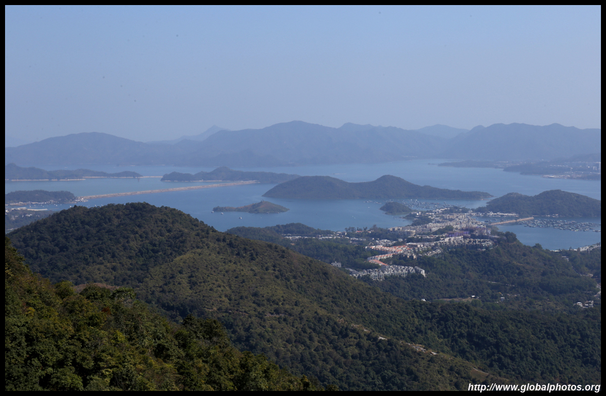 To the left is the Plover Cove Reservoir, with the dam being a favourite weekend biking spot.