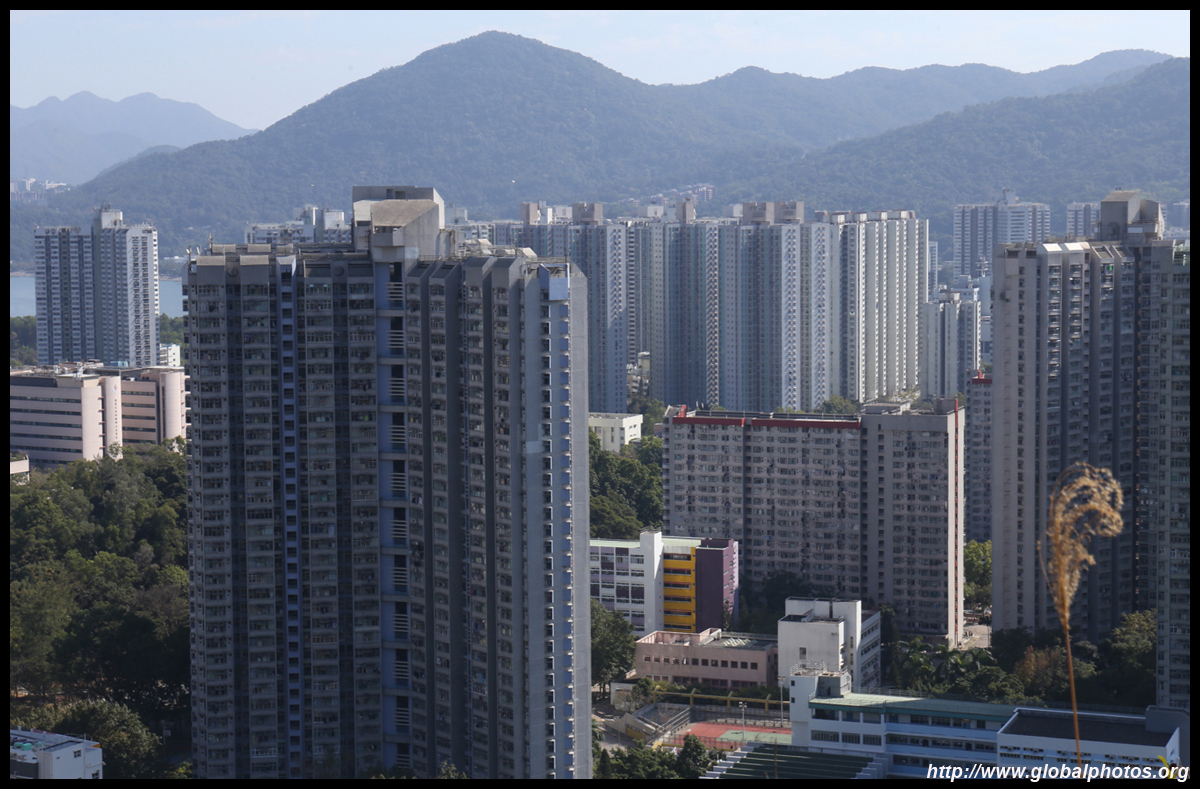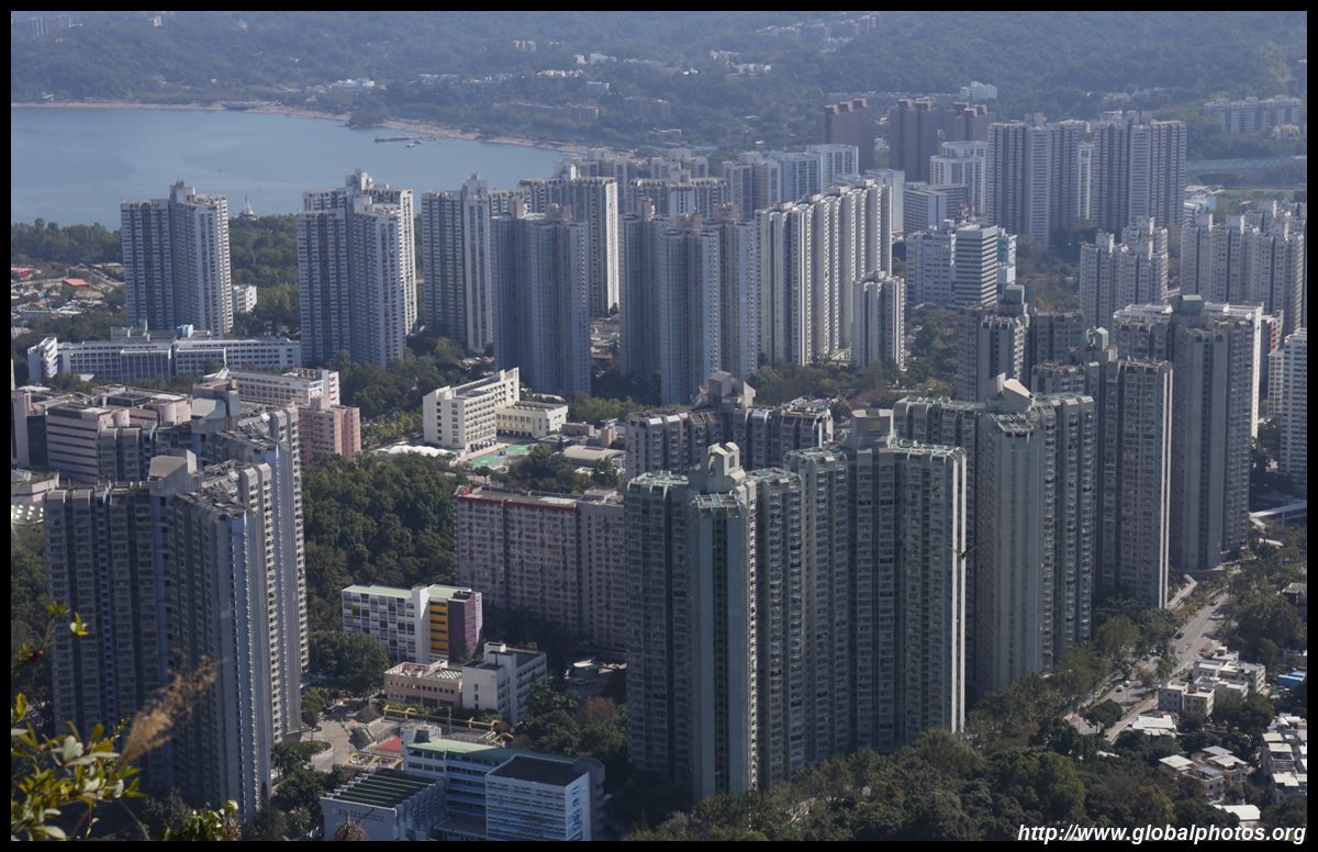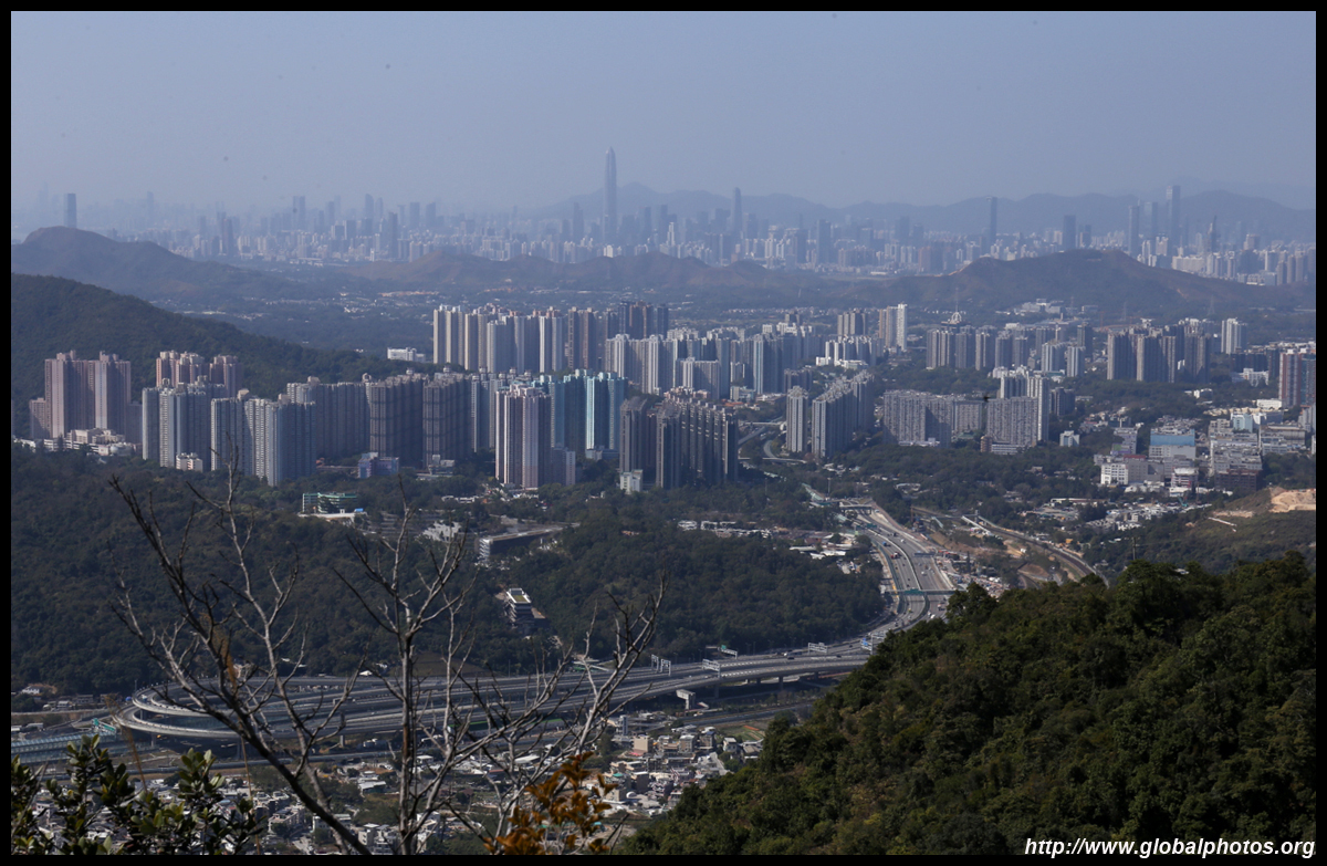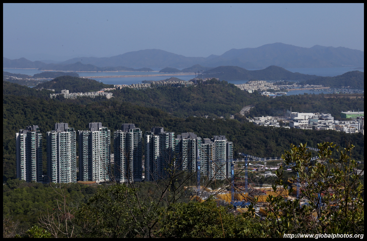 To the left is the Plover Cove Reservoir, with the dam being a favourite weekend biking spot.