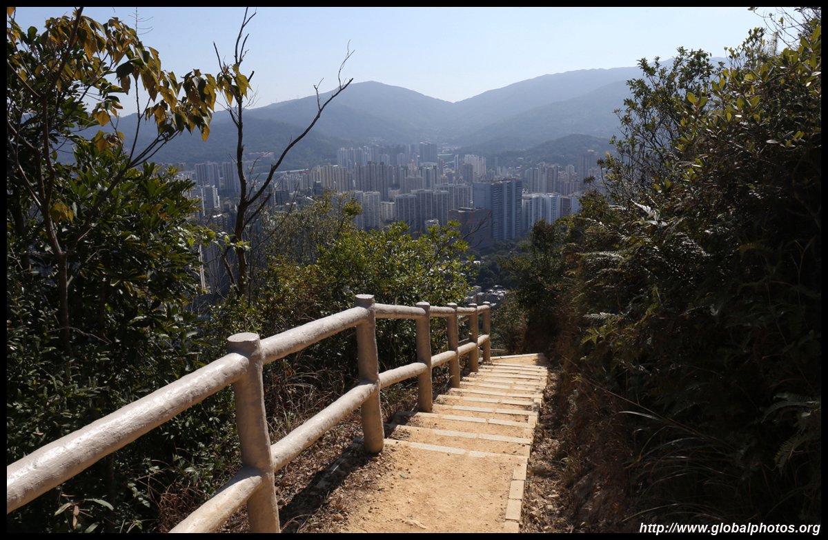 At this trigonometric station, I diverged from my original route, turning left and down a different dirt path which offers a different scenic view down to Tai Po's highrises.