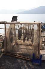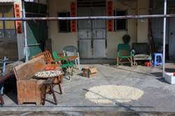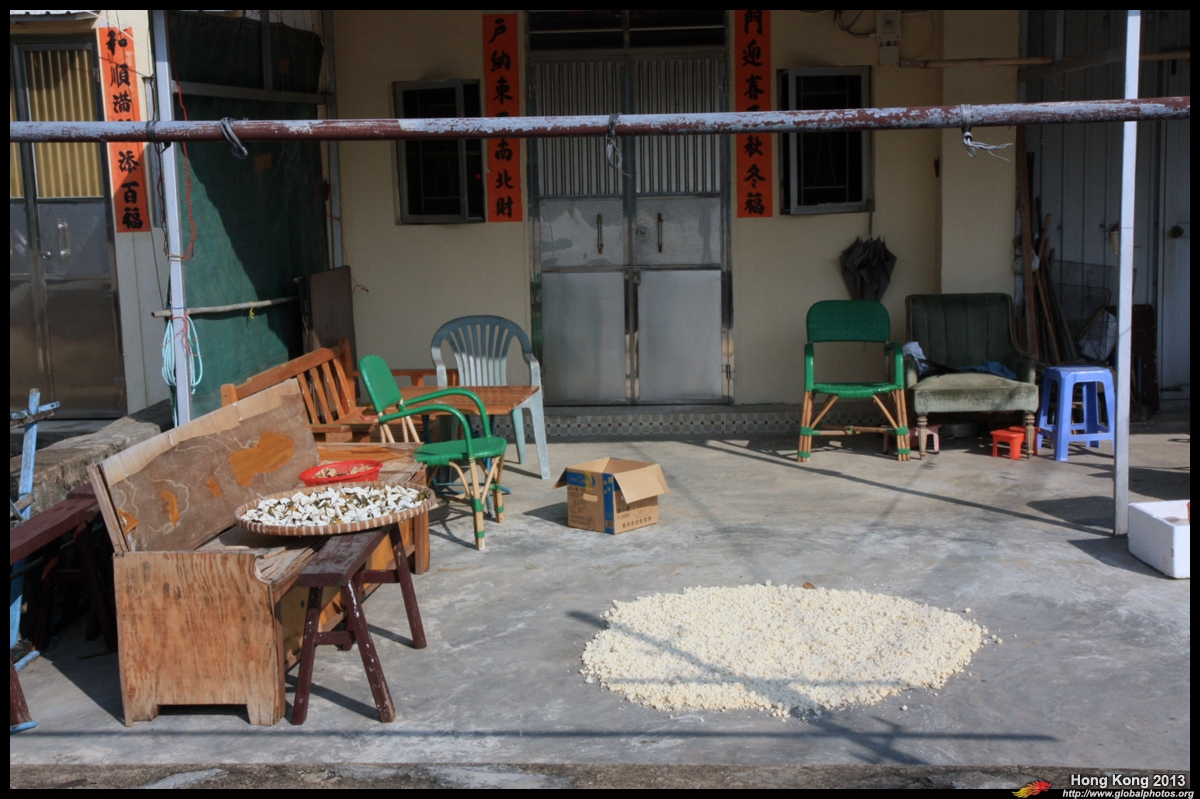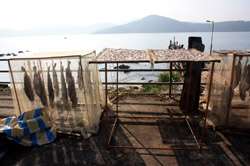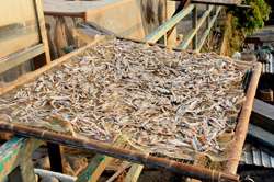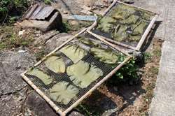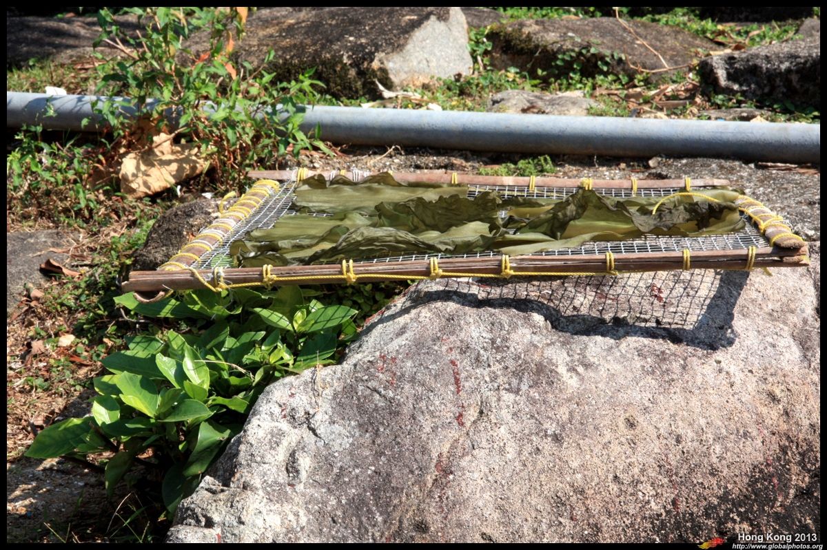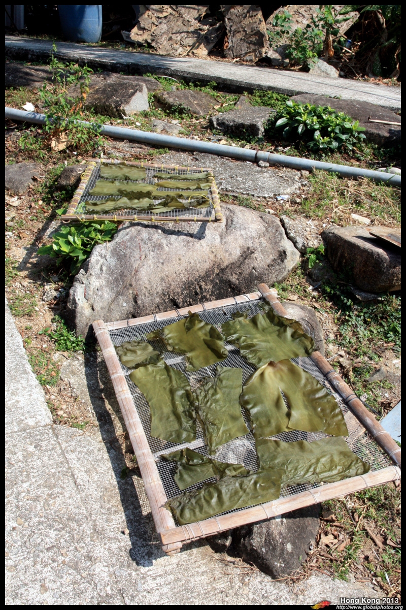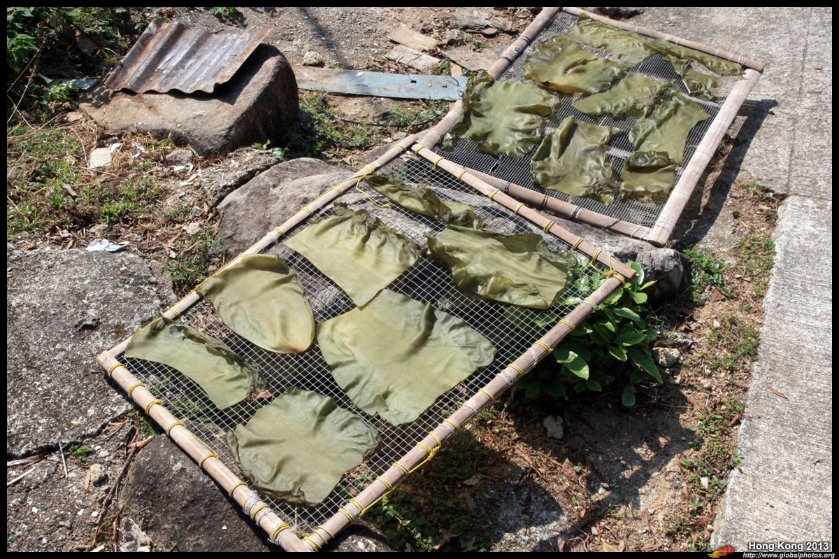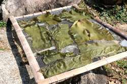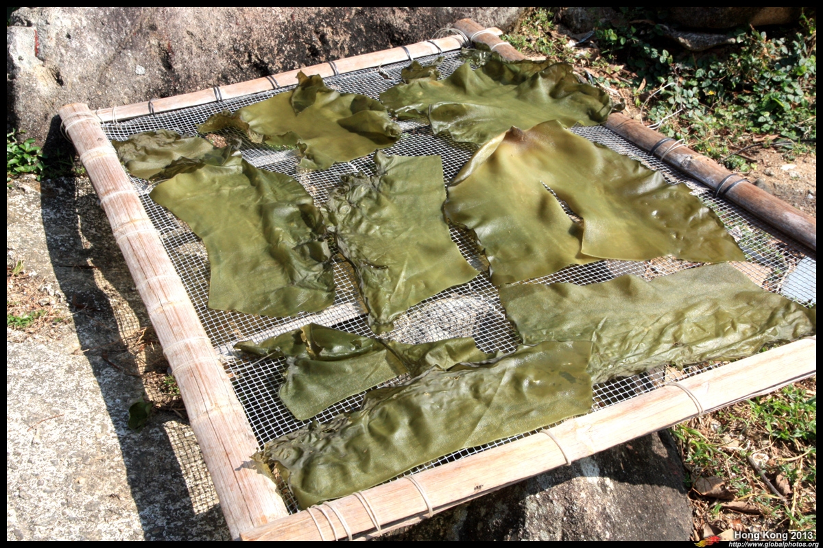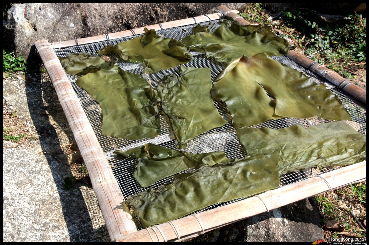 Locals dry seaweed in the open.