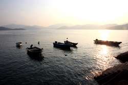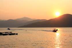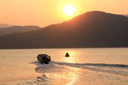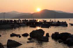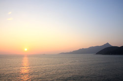 The scheduled ferries stop service at around sunset. With a mountain and ocean setting, the sunset was bound to be spectacular.