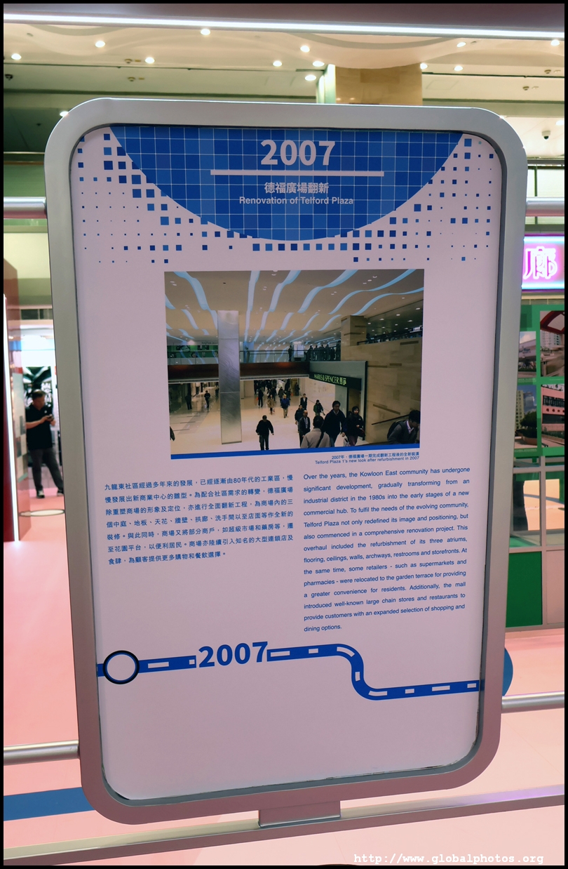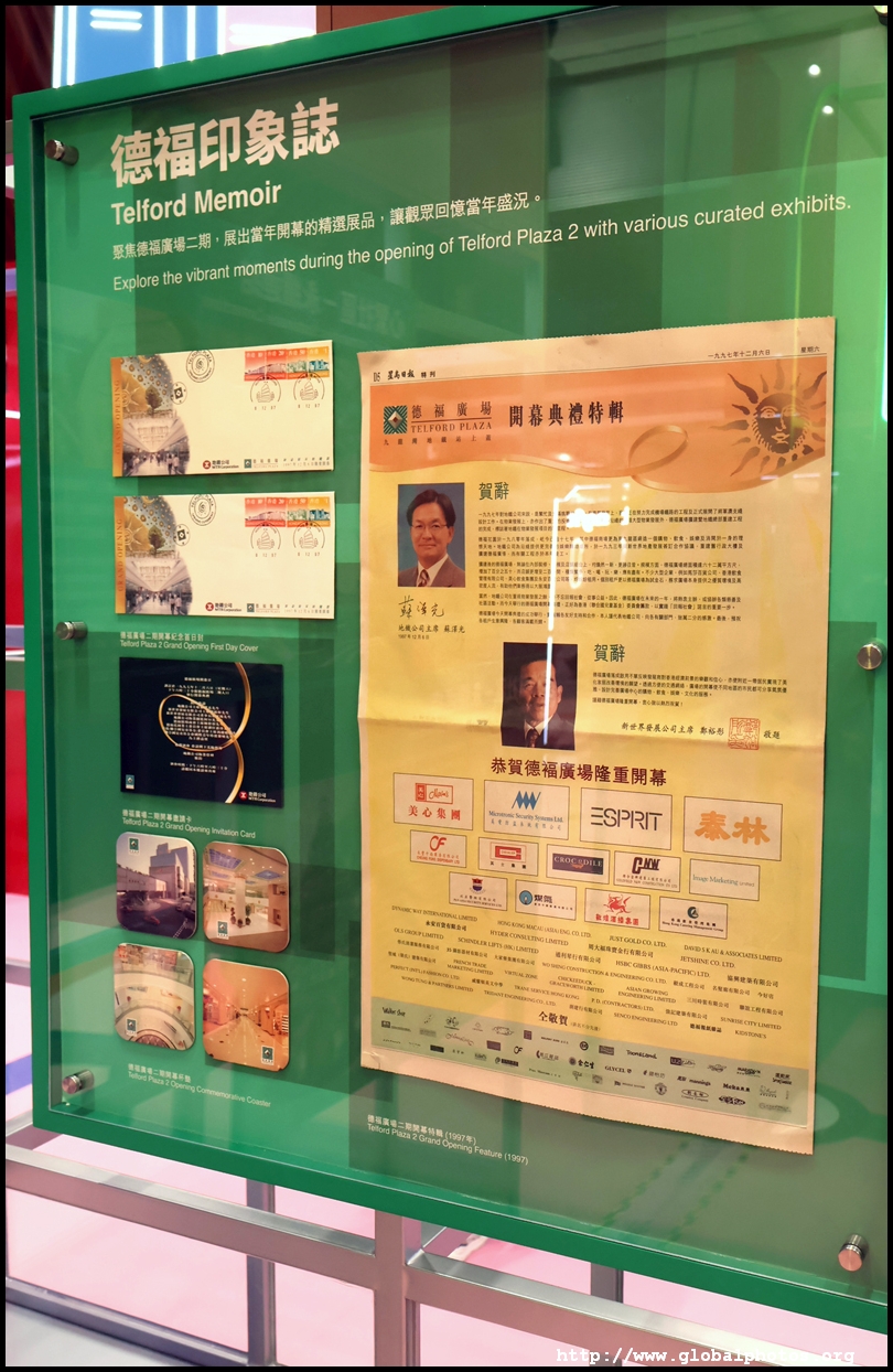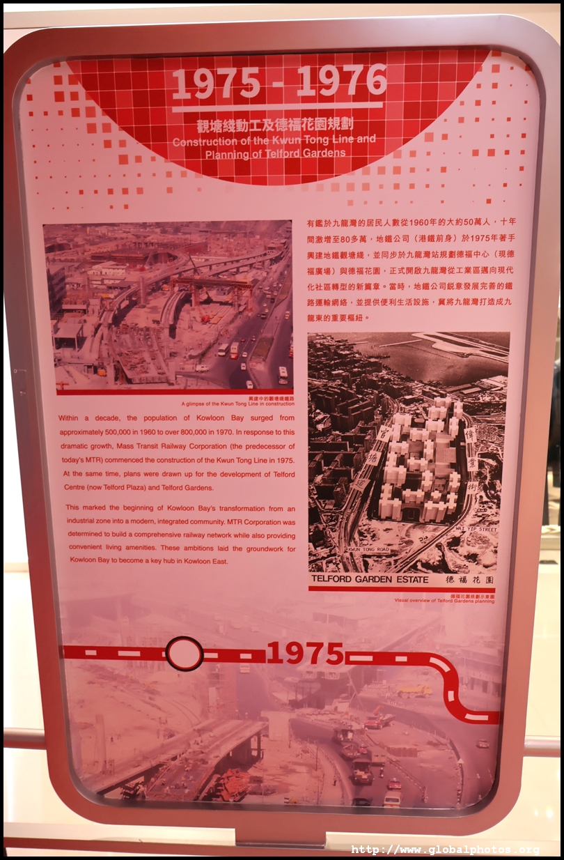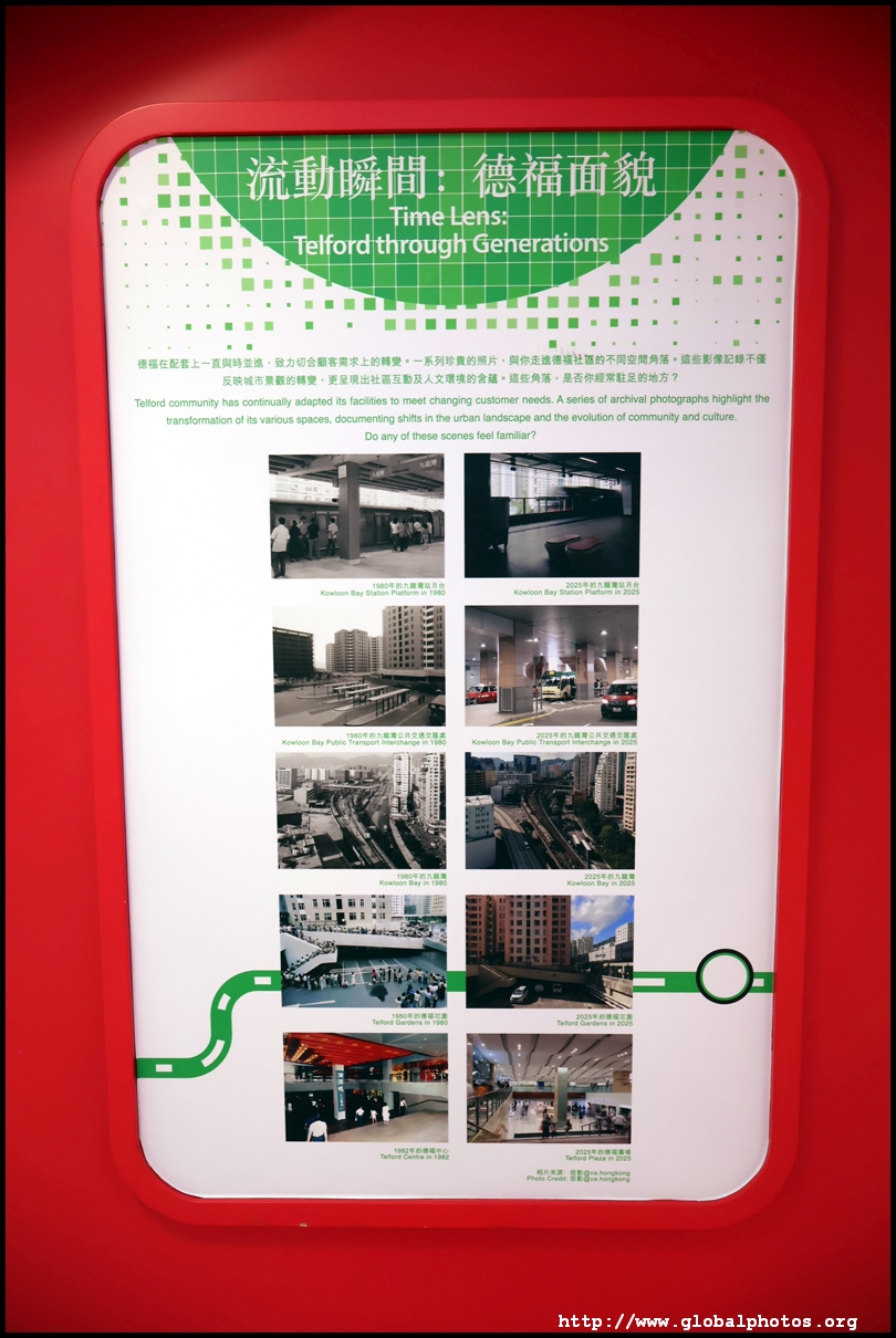 To celebrate Telford Plaza's 45 the anniversary, the MTR has hosted an exhibition about its history. This is the company's first property development, built in the early 1980s as an integrated model of shopping centre and residences above, all above the railway depot.The Kwun Tong Line first opened in 1979 from Shek Kip Mei to Kwun Tong, passing through this area. The first residents moved into Telford Gardens a year later, and the project would comprise 41 residential towers with about 5000 units. This type of integrated property development was repeated across many stations subsequently.