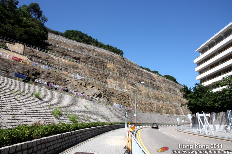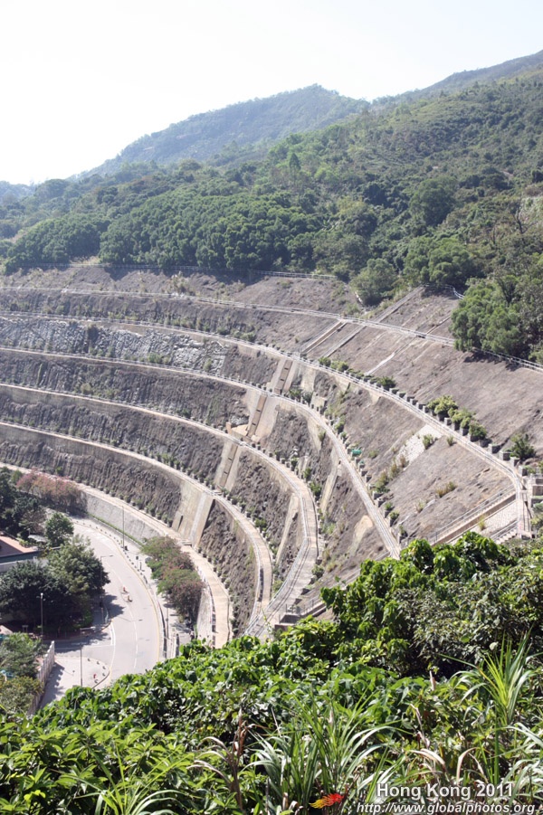 To make room for urban development, hillsides were carved away and reinforced to prevent landslides.