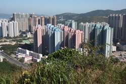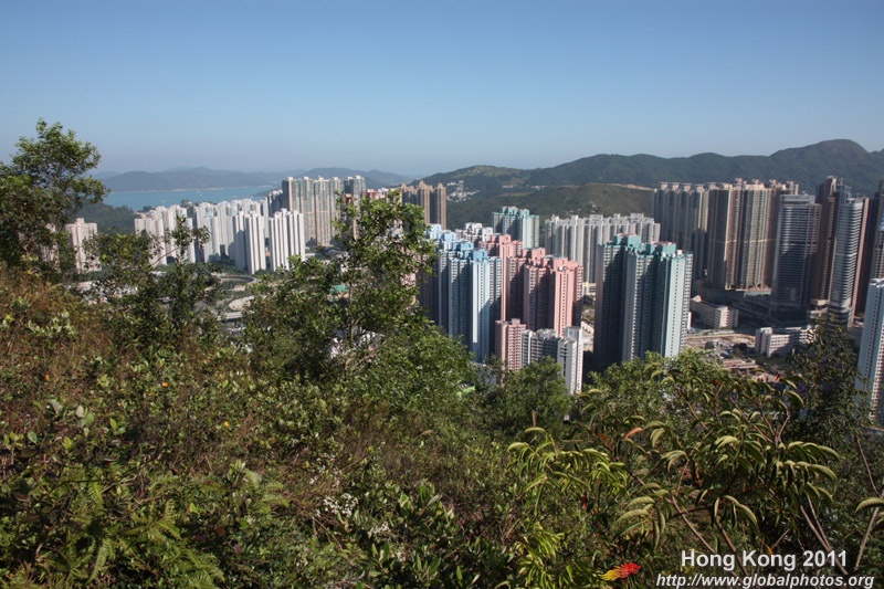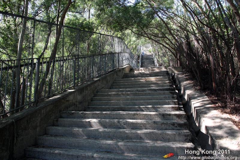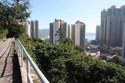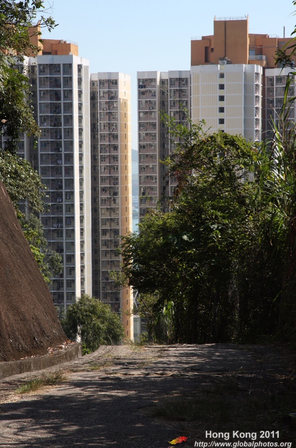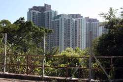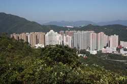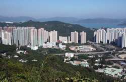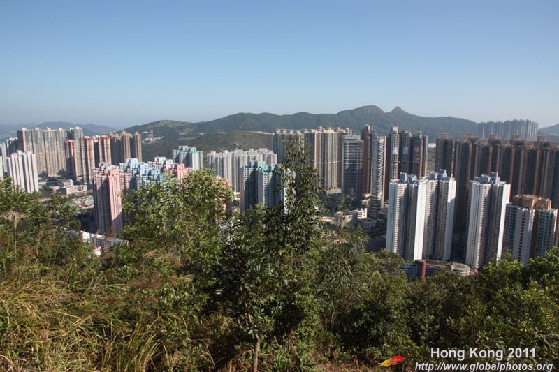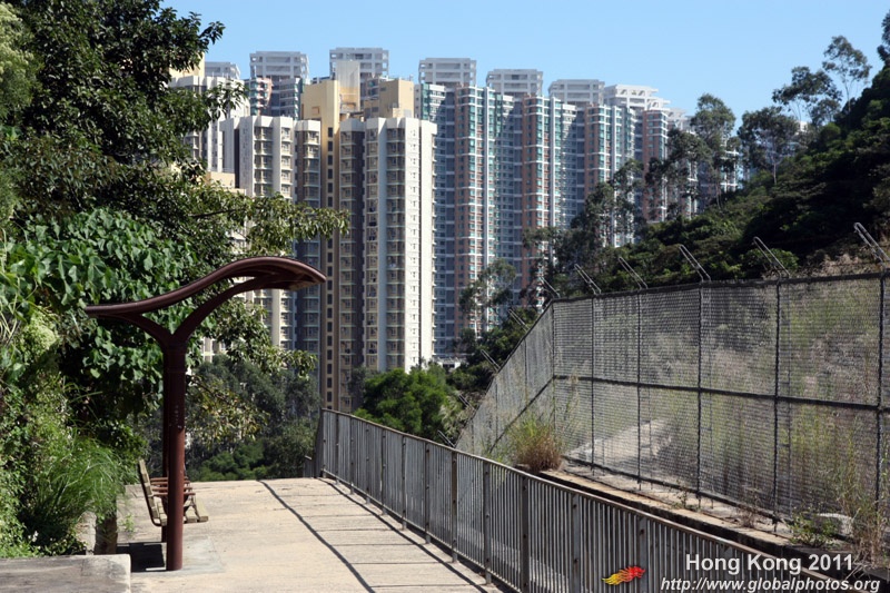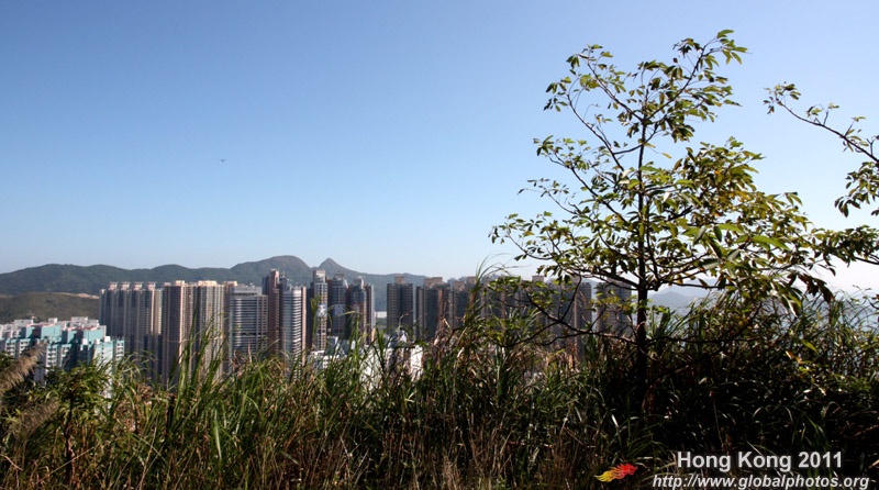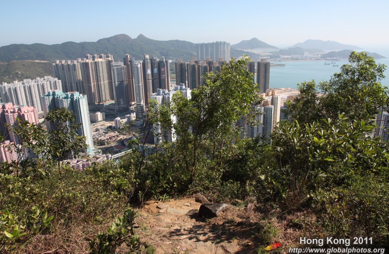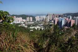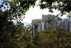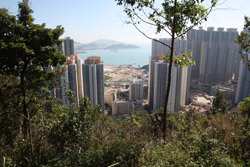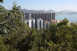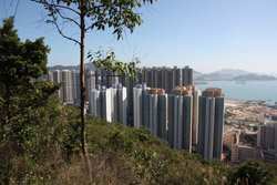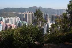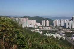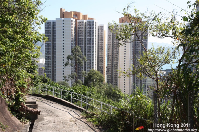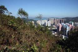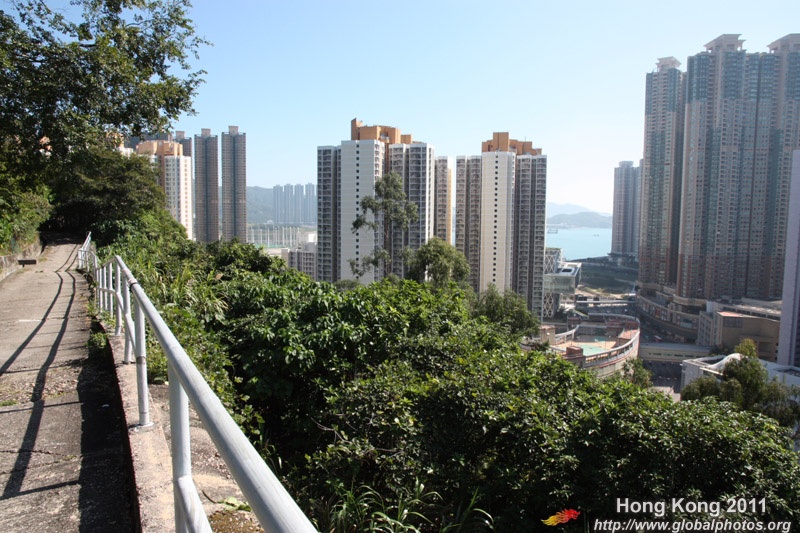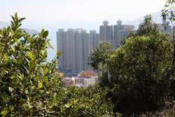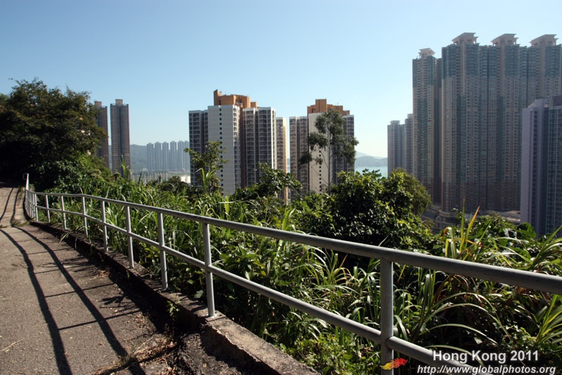 After a few staircases, Tiu Keng Leng's residential skyscrapers appear above the vegetation.