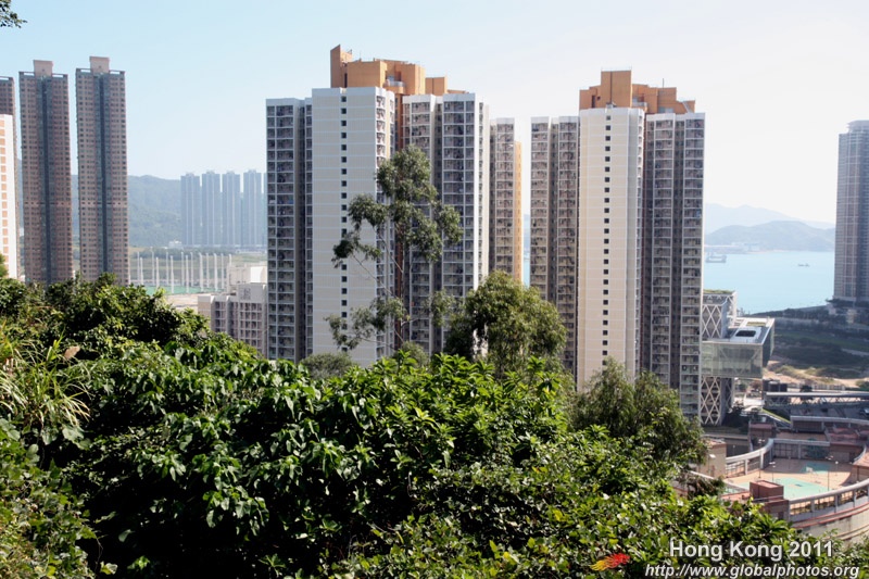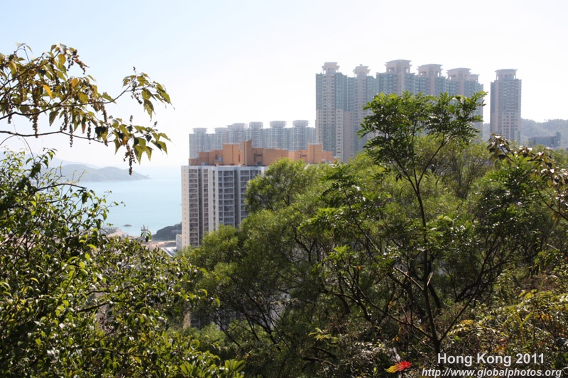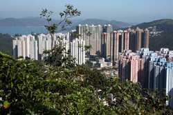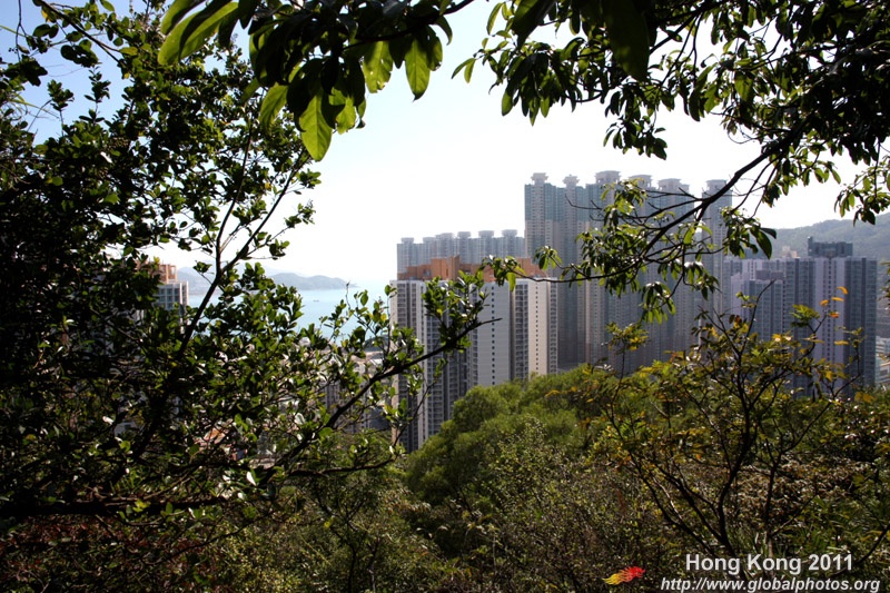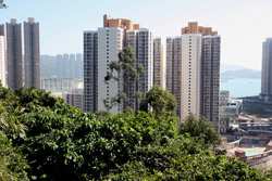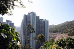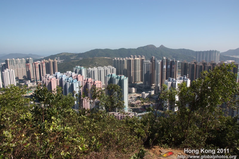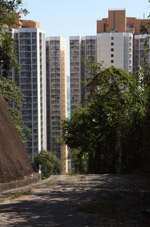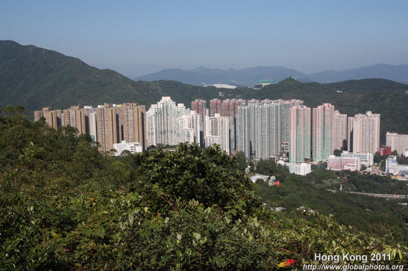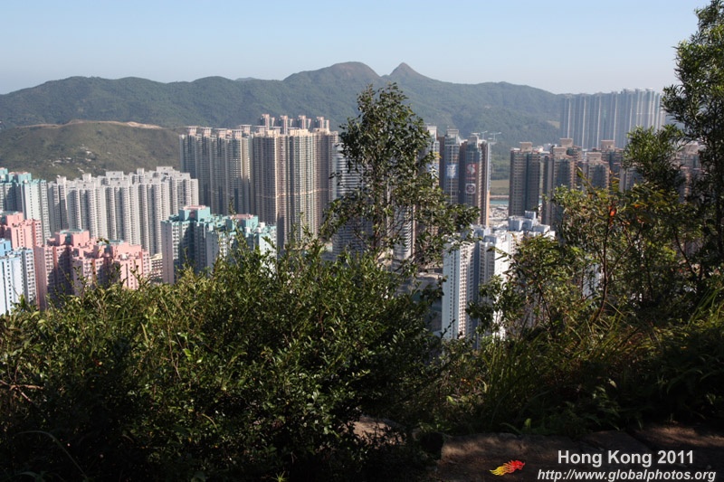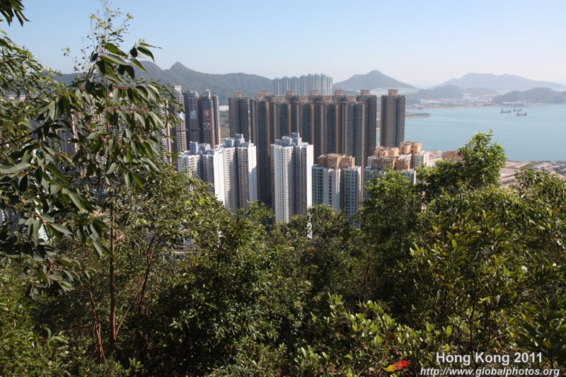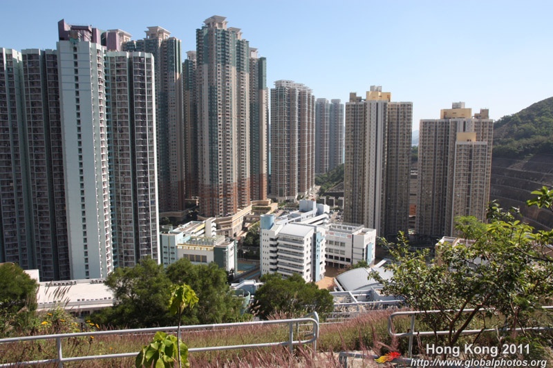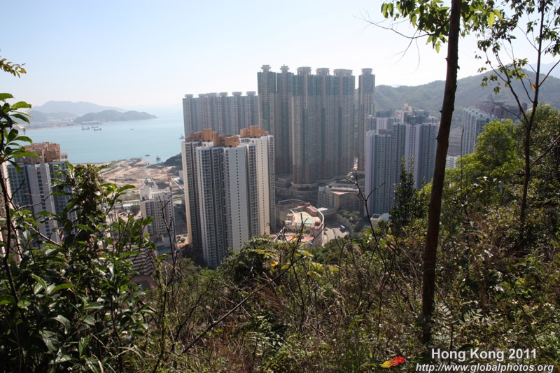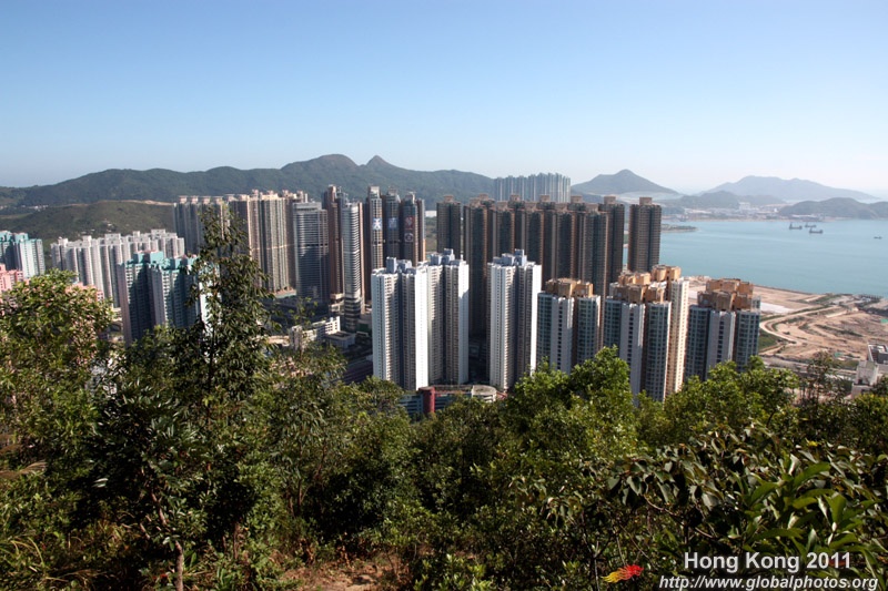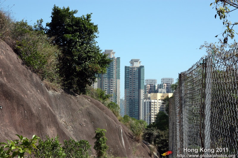 After a few staircases, Tiu Keng Leng's residential skyscrapers appear above the vegetation.