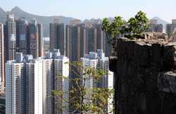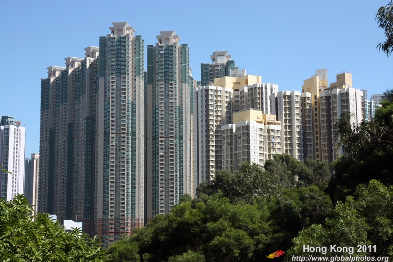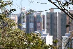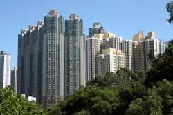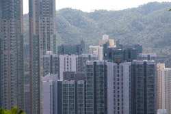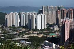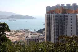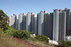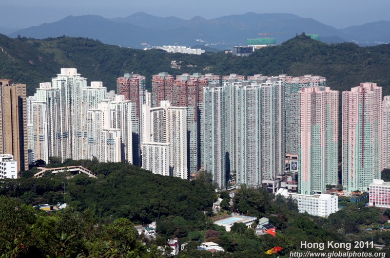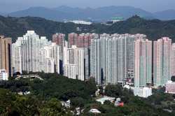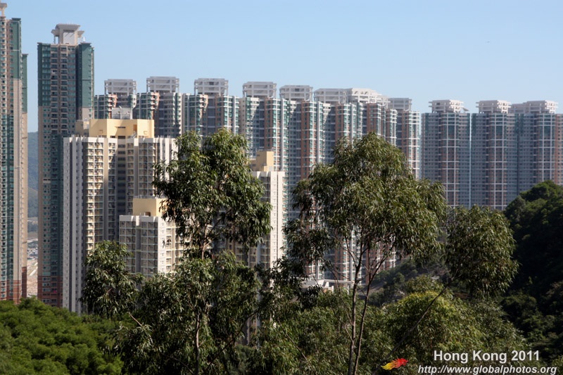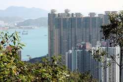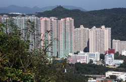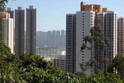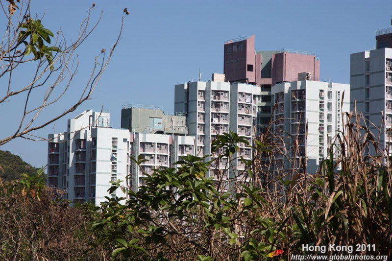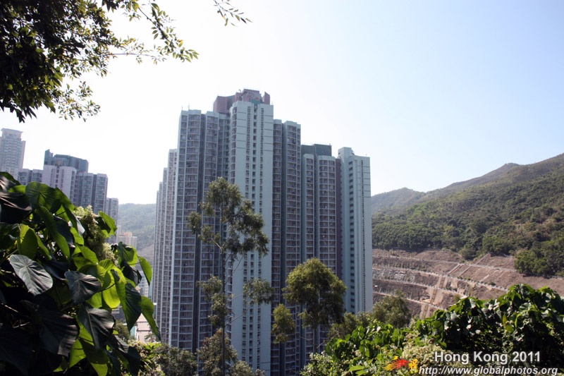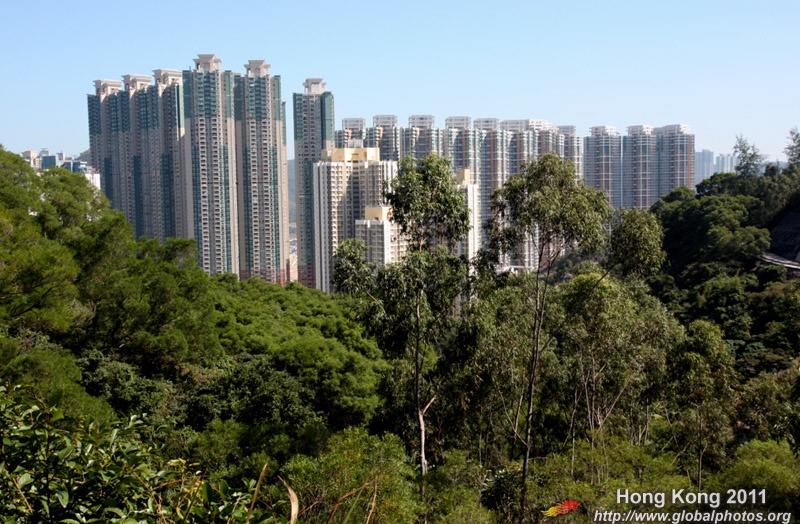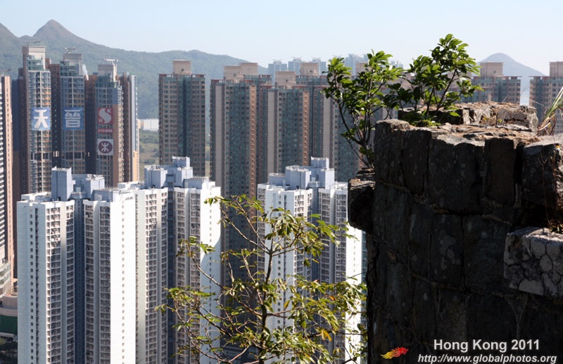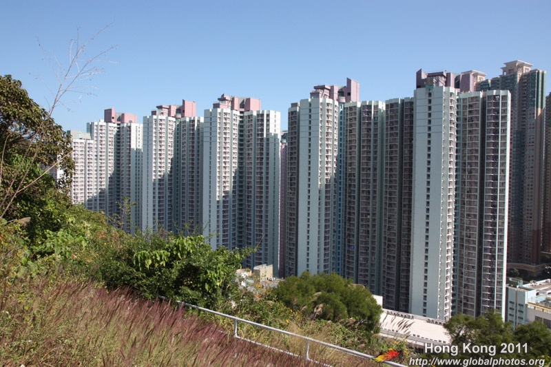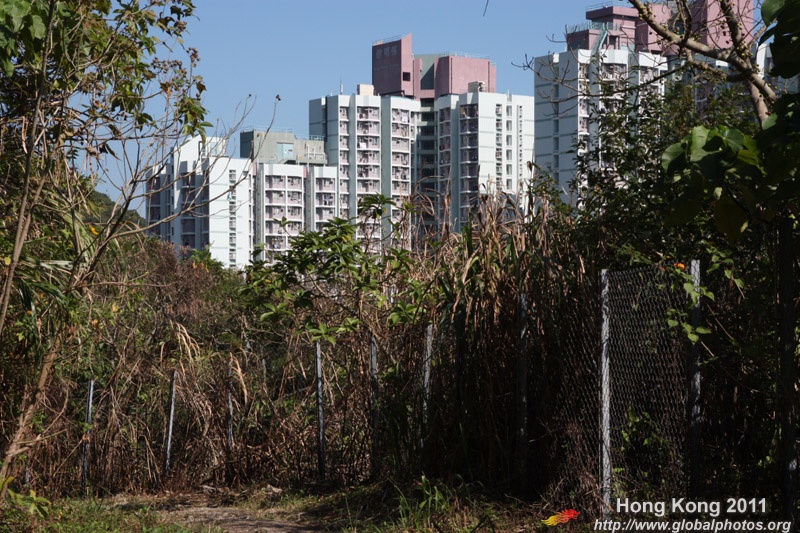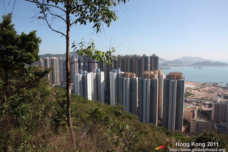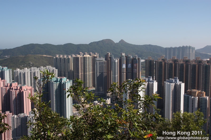 After a few staircases, Tiu Keng Leng's residential skyscrapers appear above the vegetation.