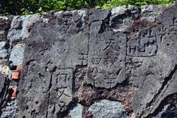 Historical remnants remain. This engraving dates from the old days when Nationalist forces ruled this hill.