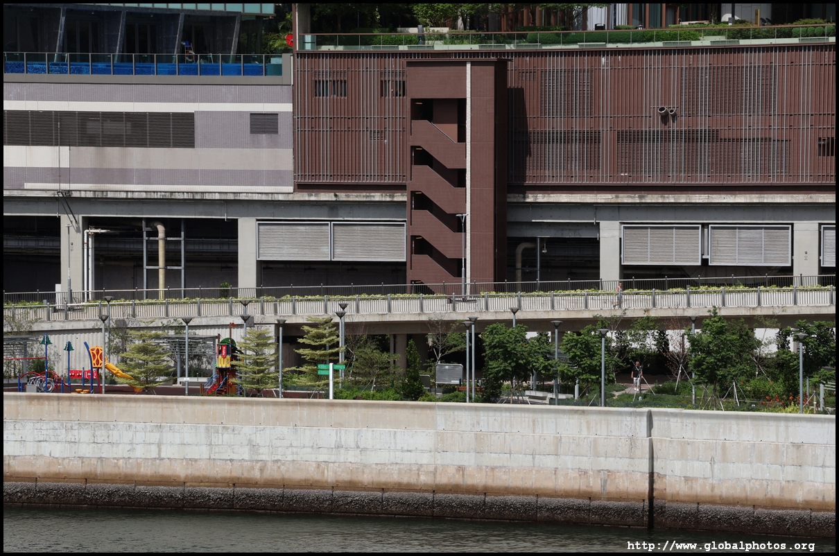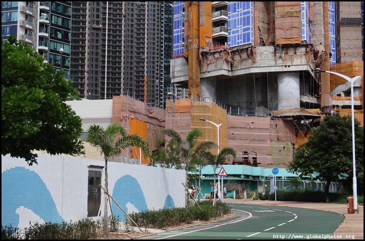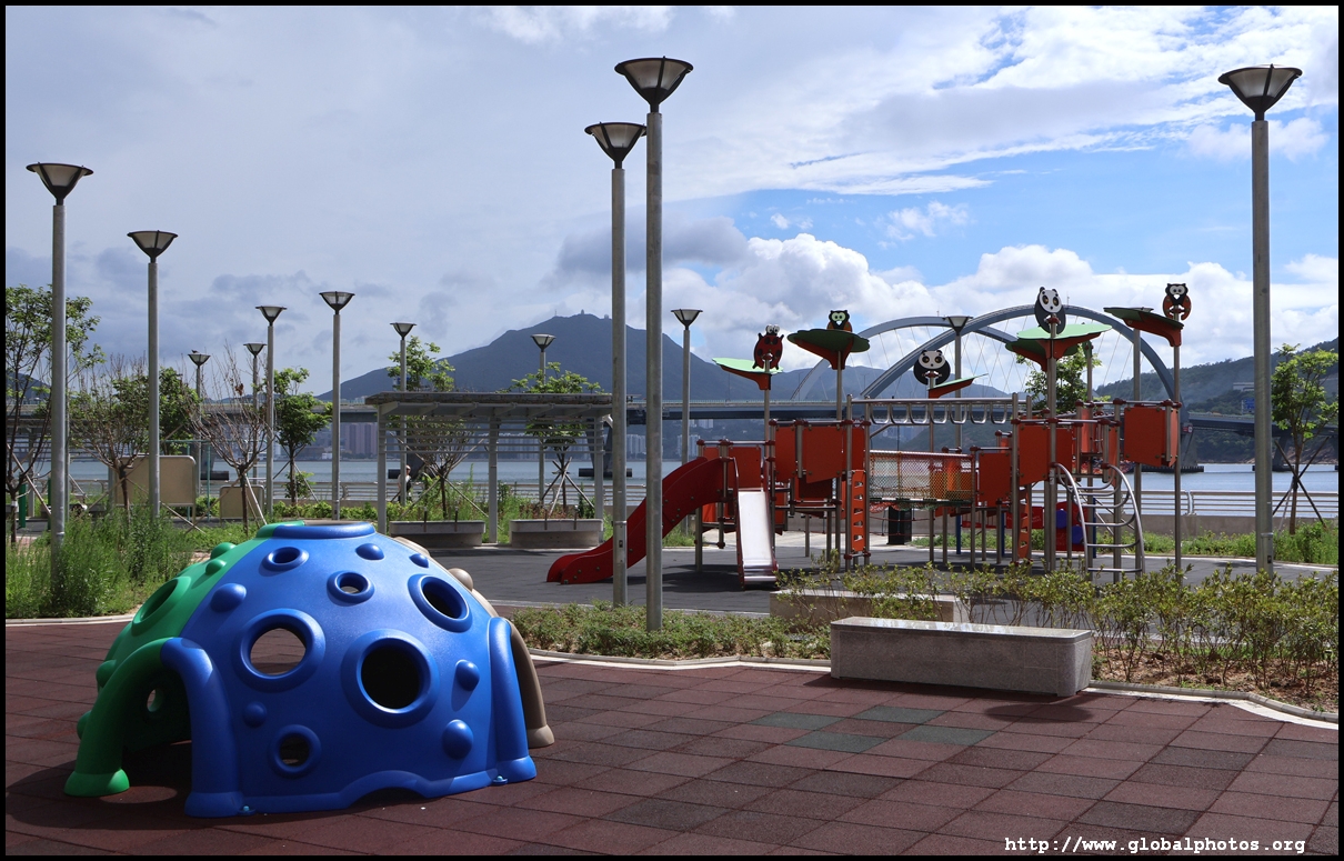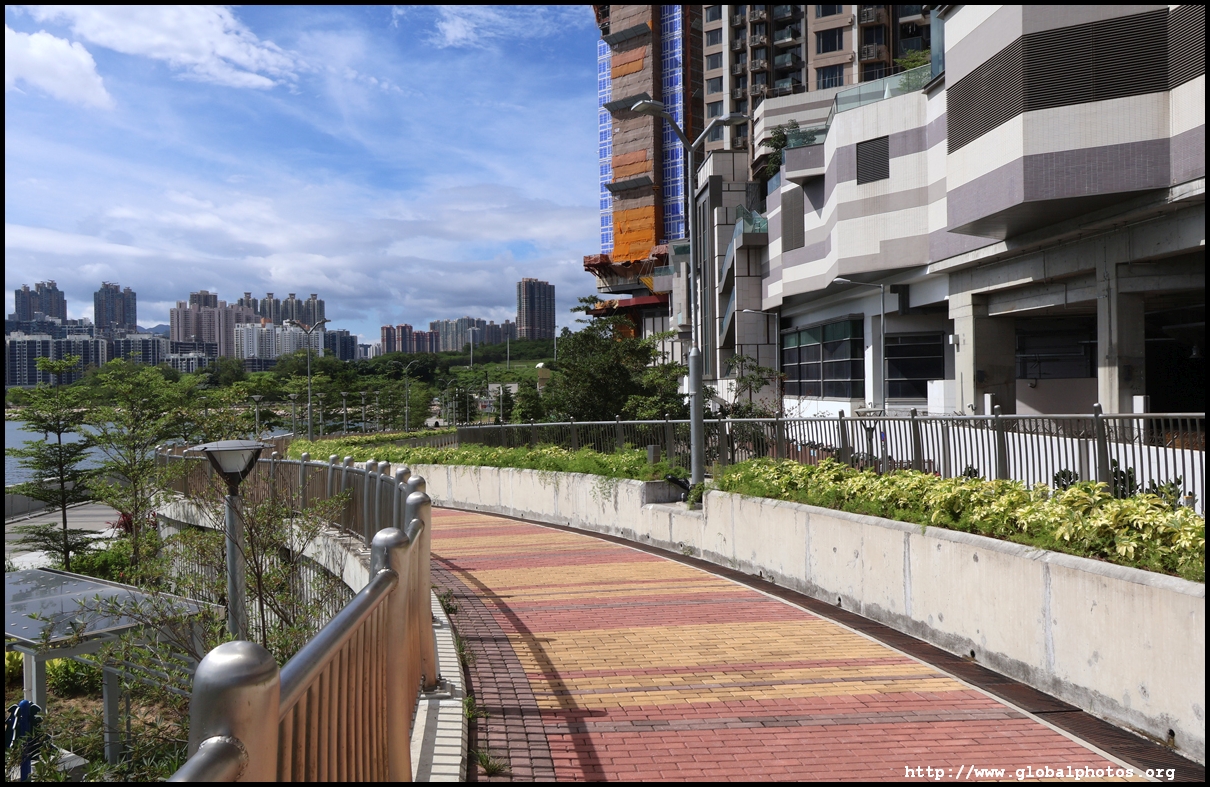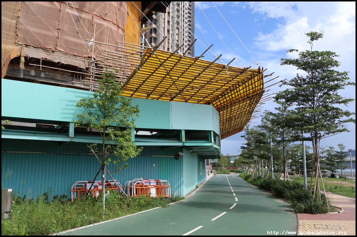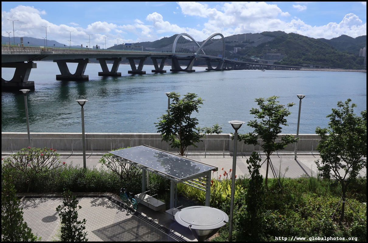 A waterfront promenade has opened on the western edge of the site overlooking the rest of Tseung Kwan O and the newly-opened Cross Bay Bridge, which also has a cycling and pedestrian passageway.