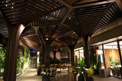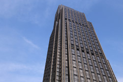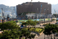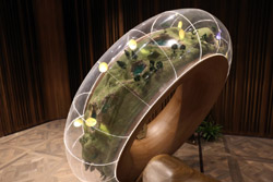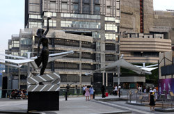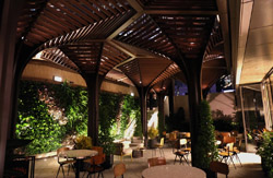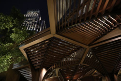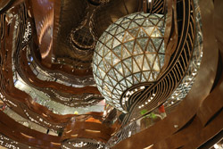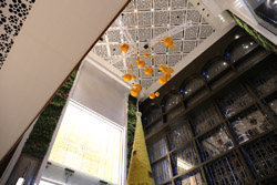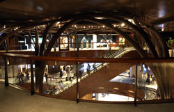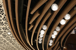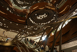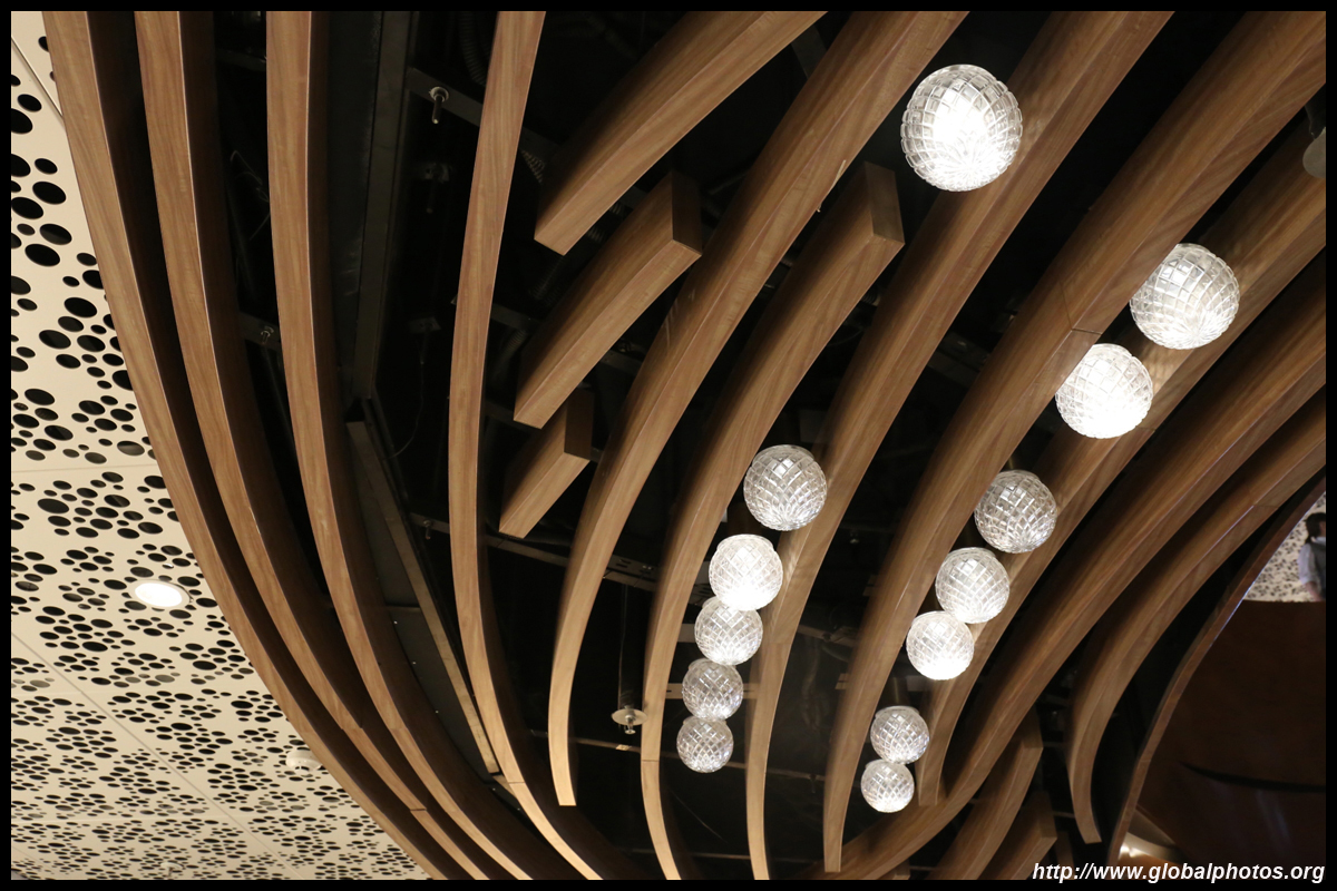 The wave patterns on the exterior panels mimick the harbour's waves.