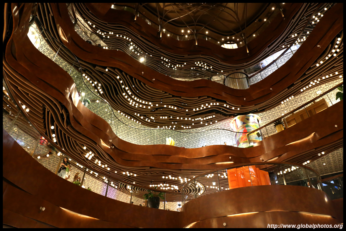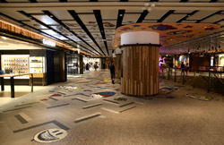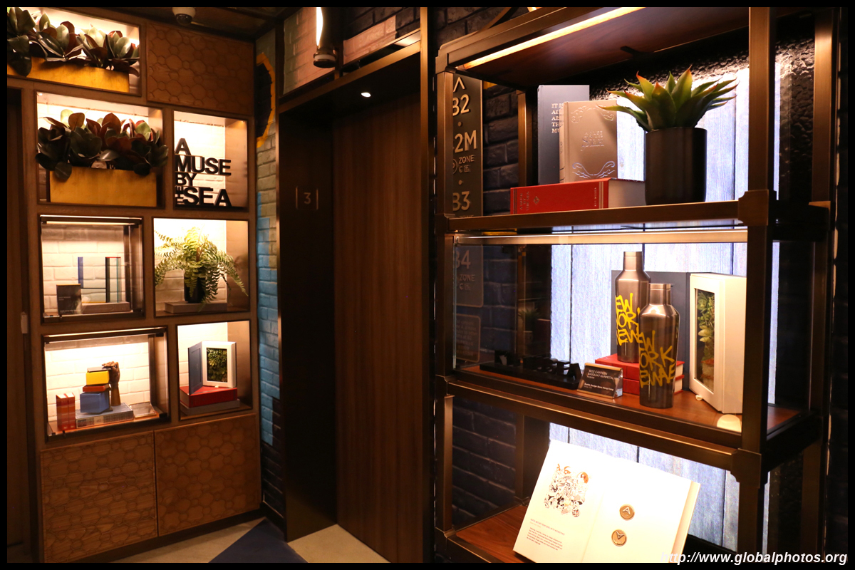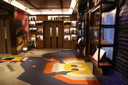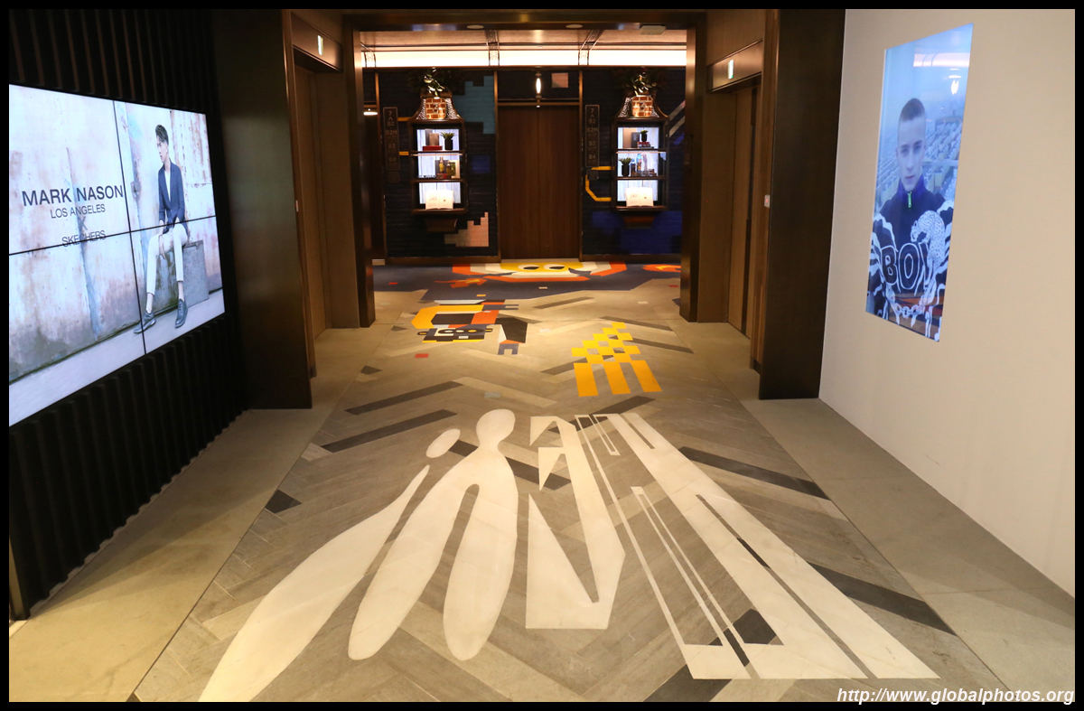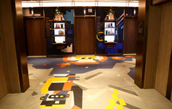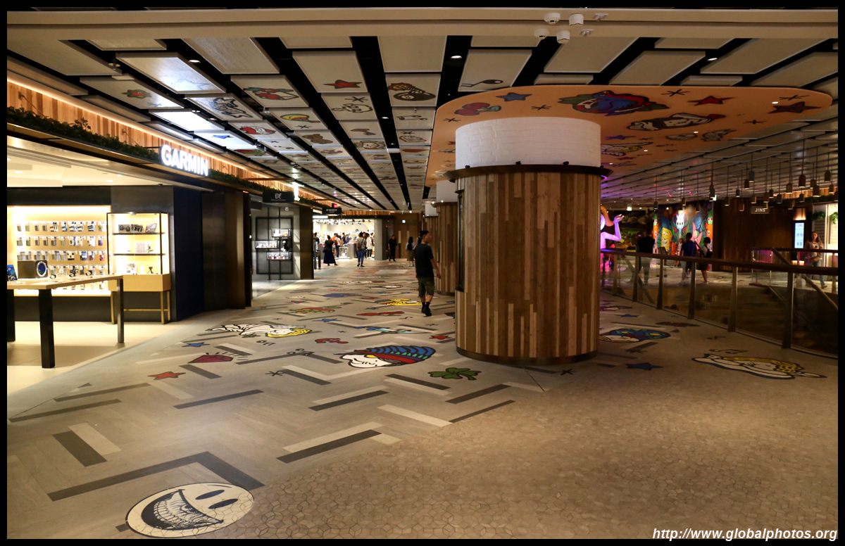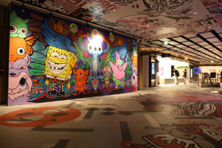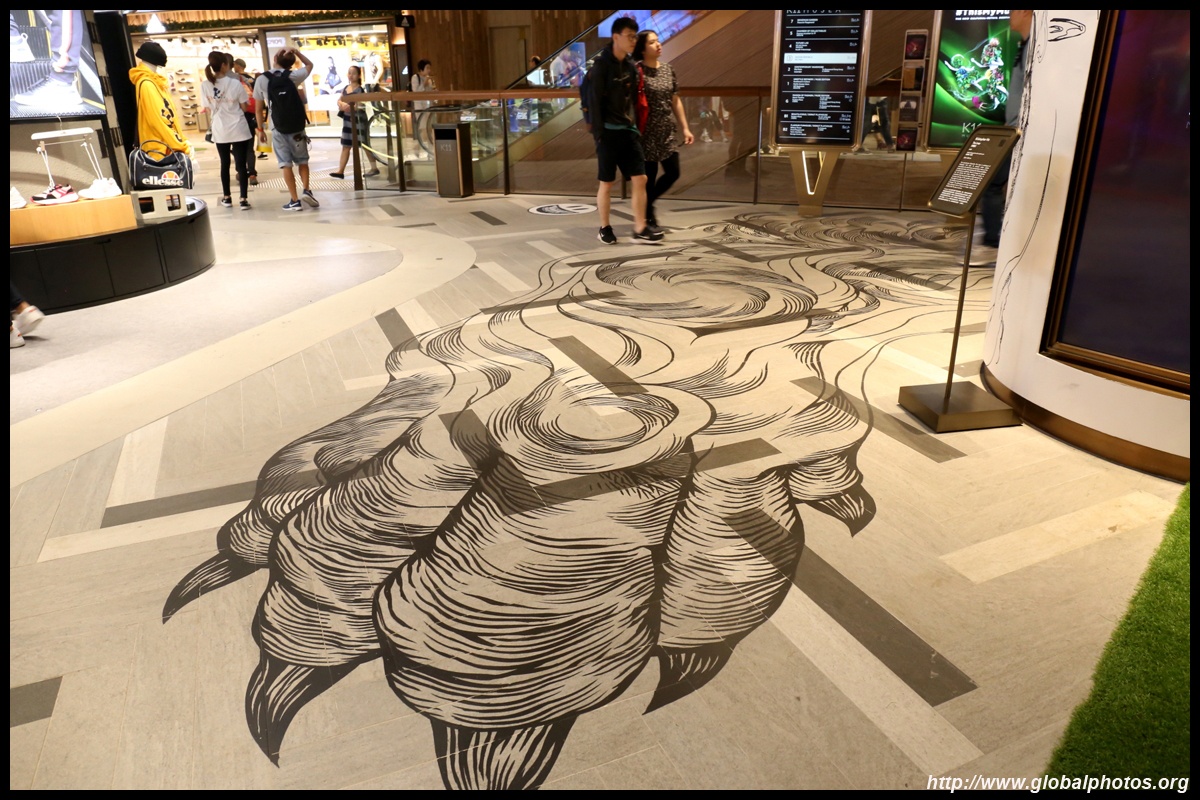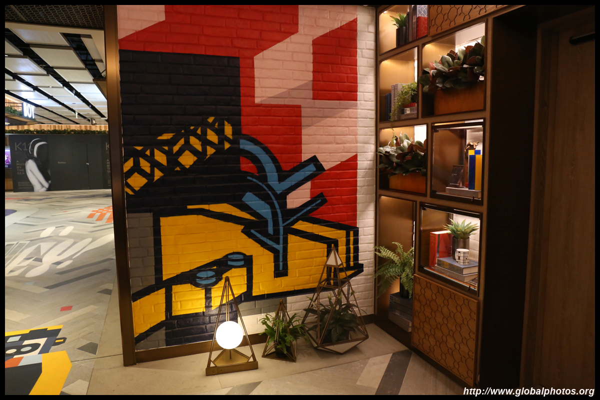 Each floor has a particular theme, with this one showcasing street culture. Notice the iconography on the floors.