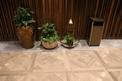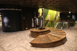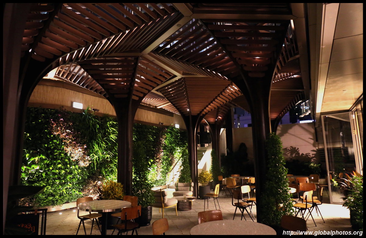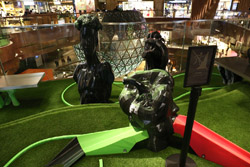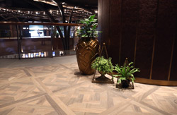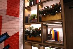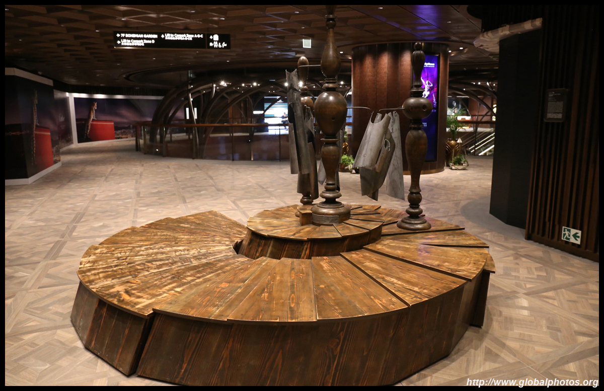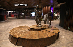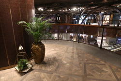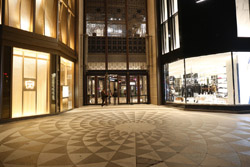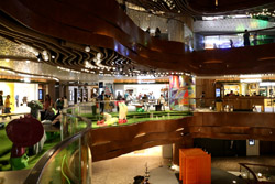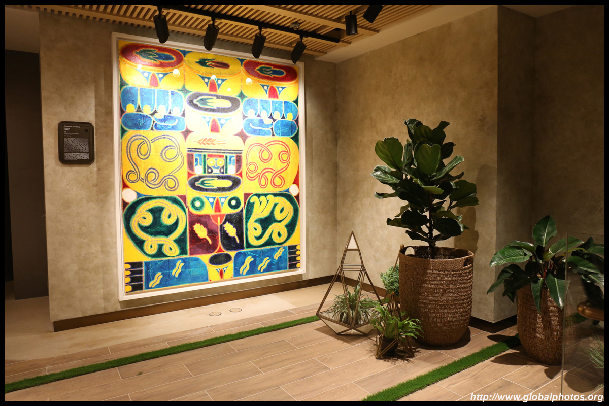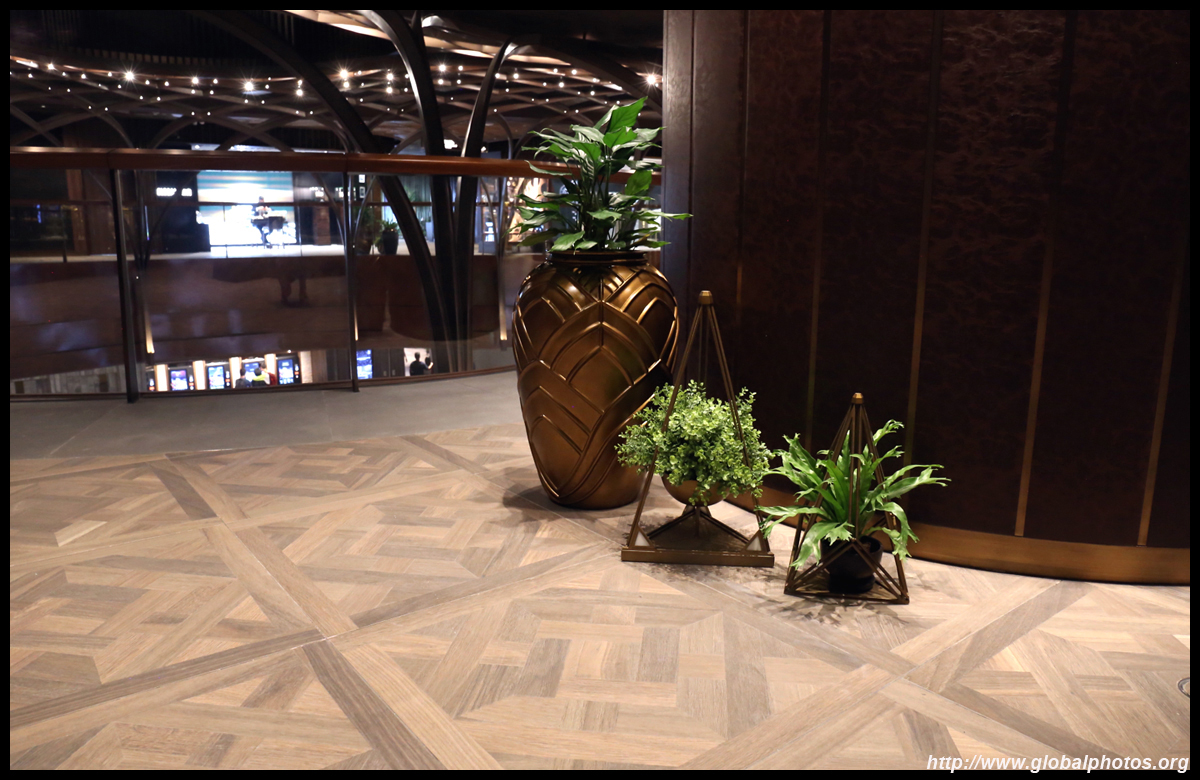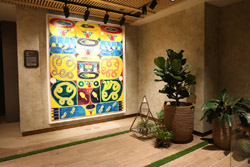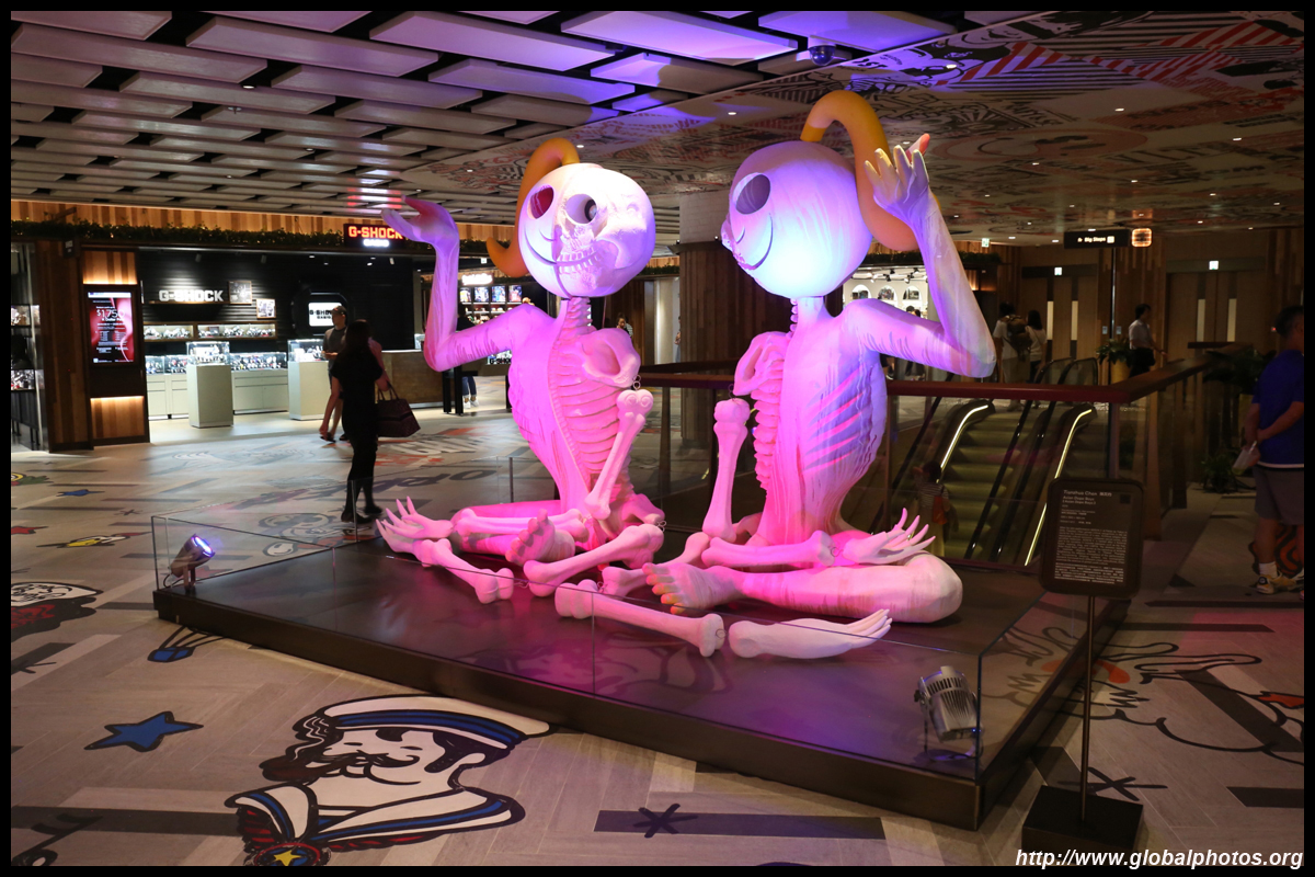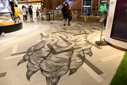 Each floor has a particular theme, with this one showcasing street culture. Notice the iconography on the floors.