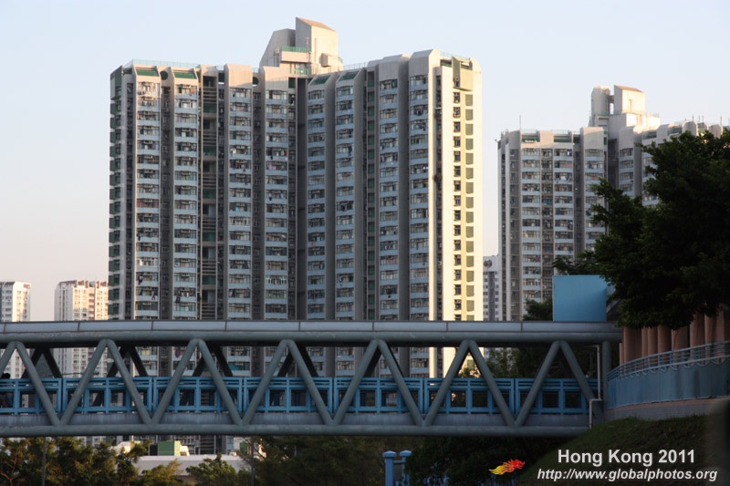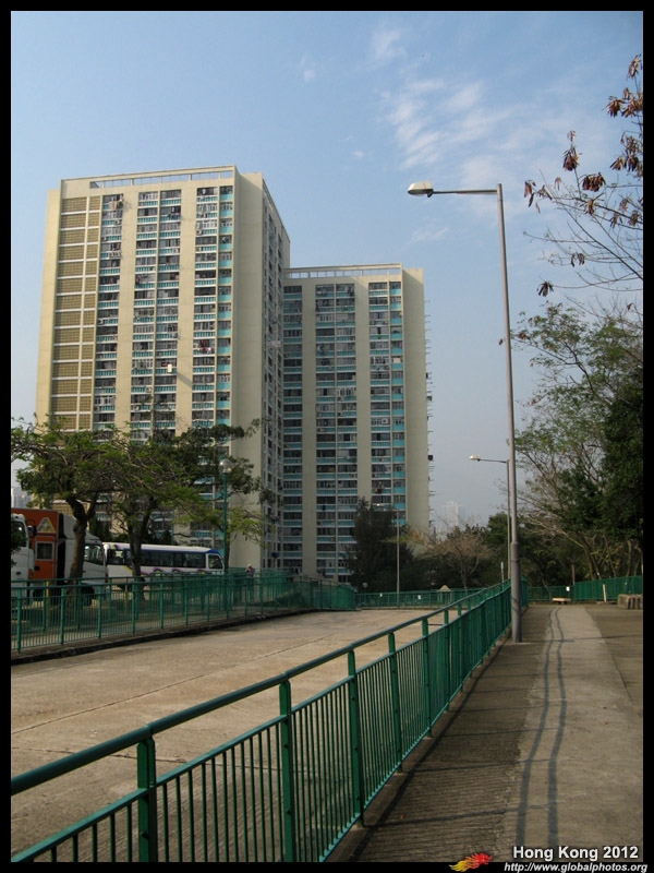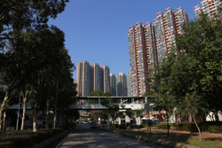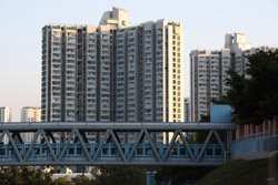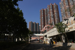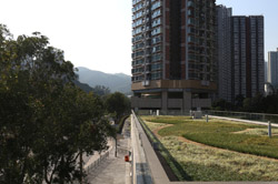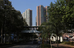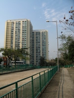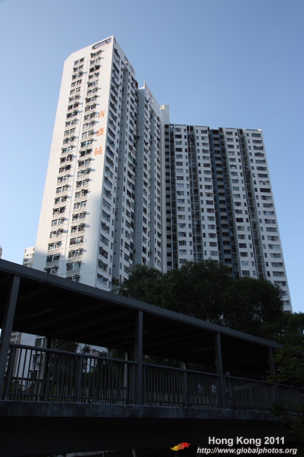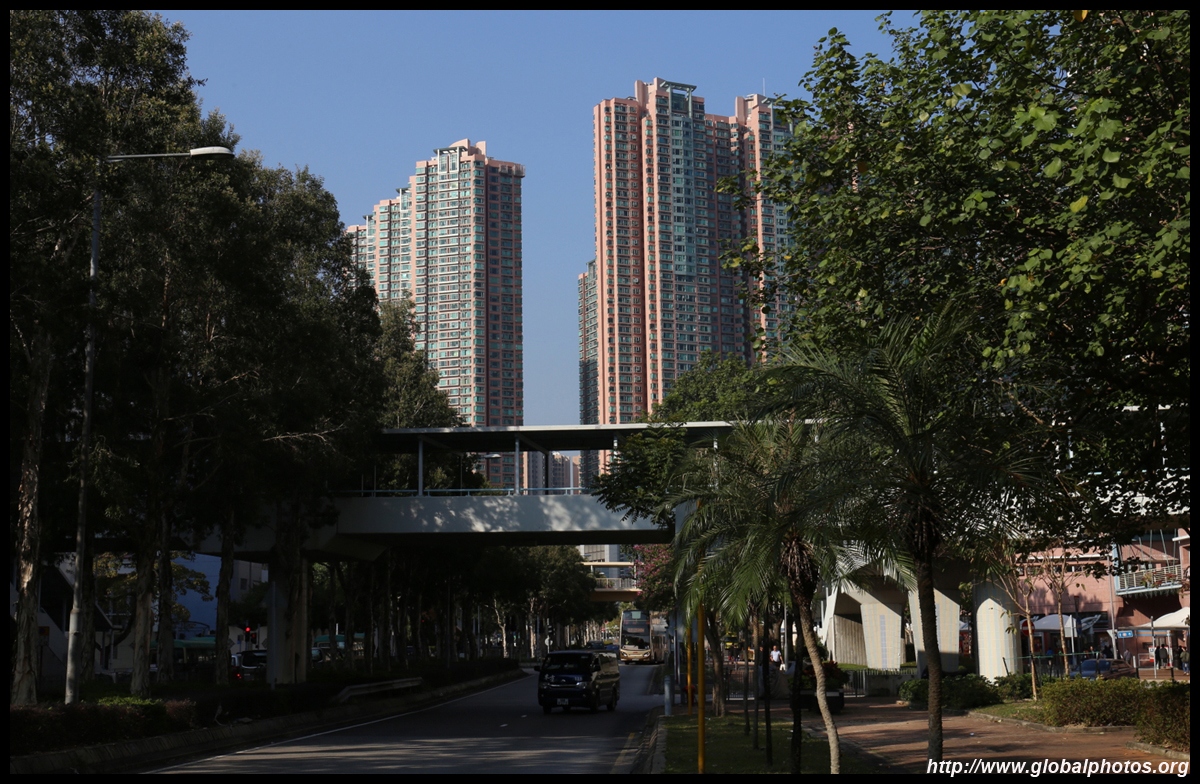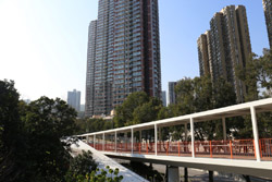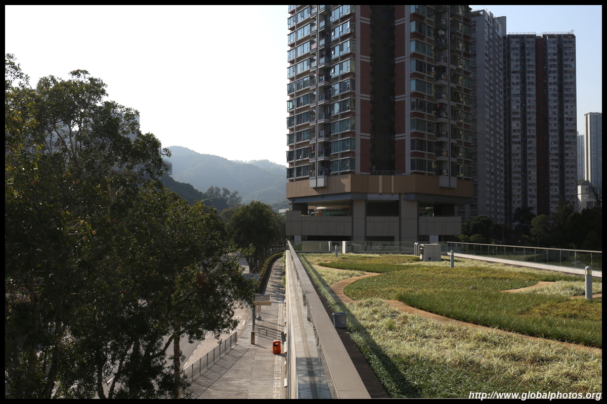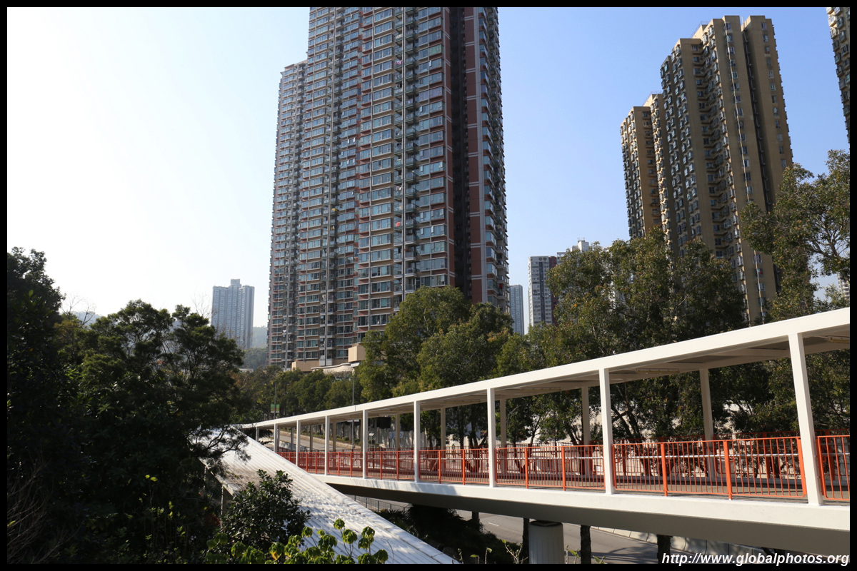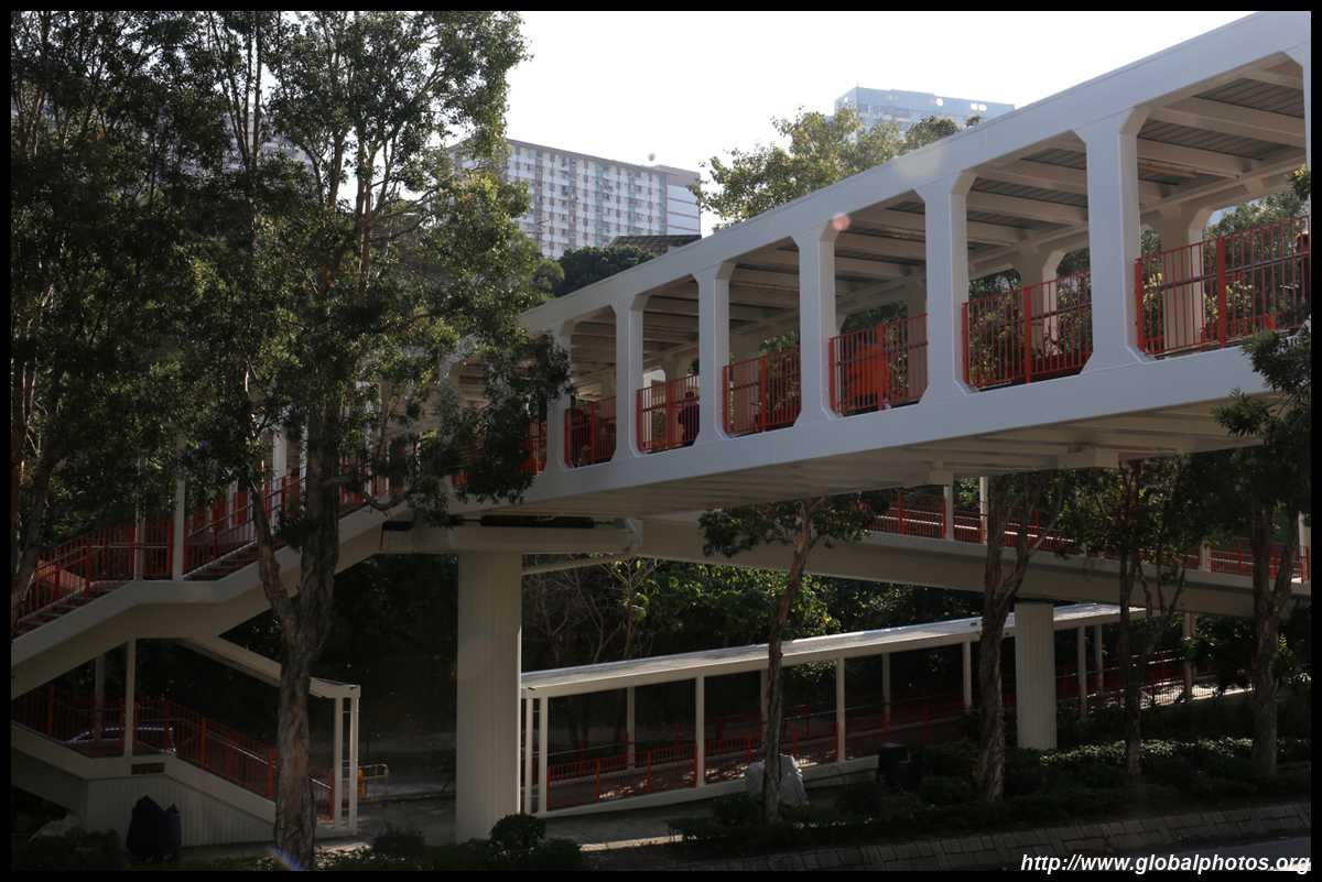 A long bridge leads to the next cluster of public housing at Cheung Hang and Cheung Wang Estates, which are on a separate hill.