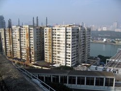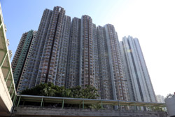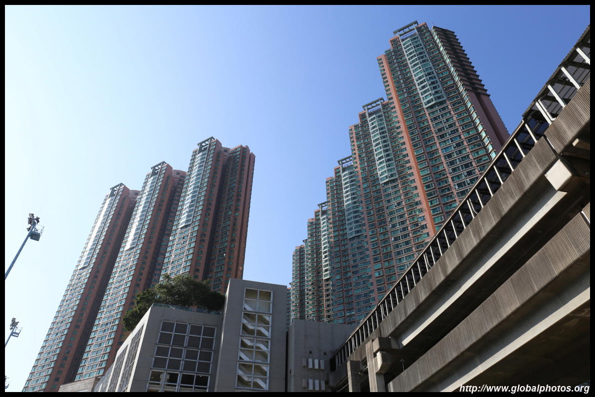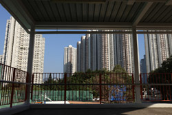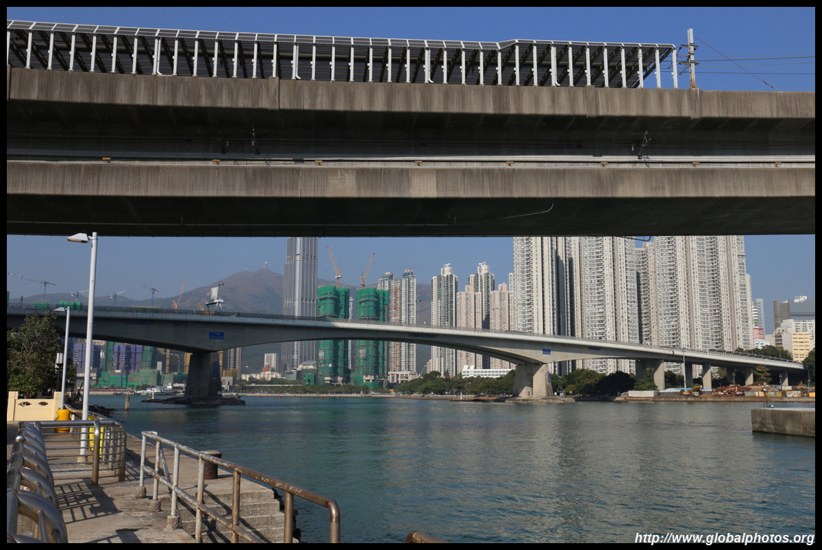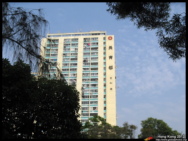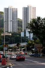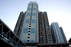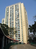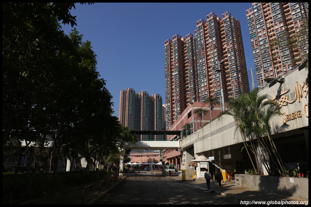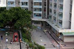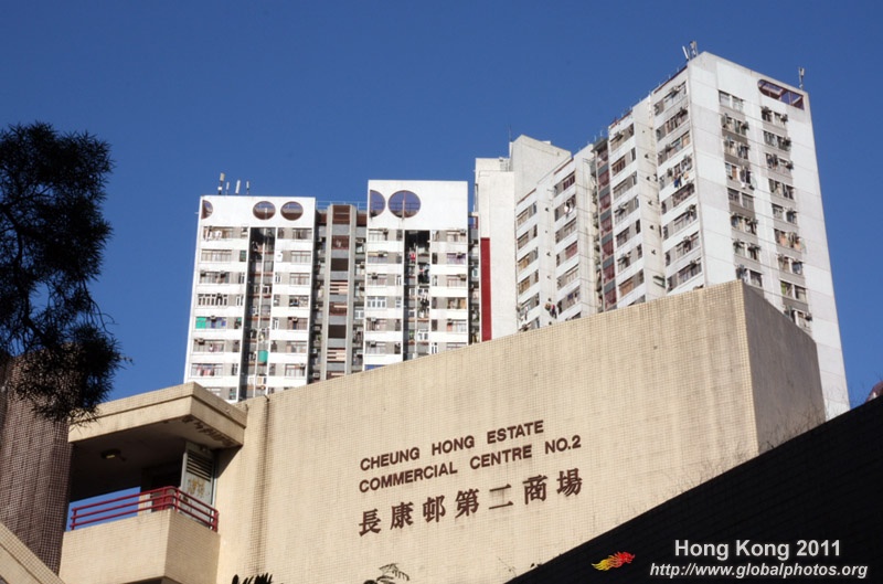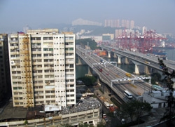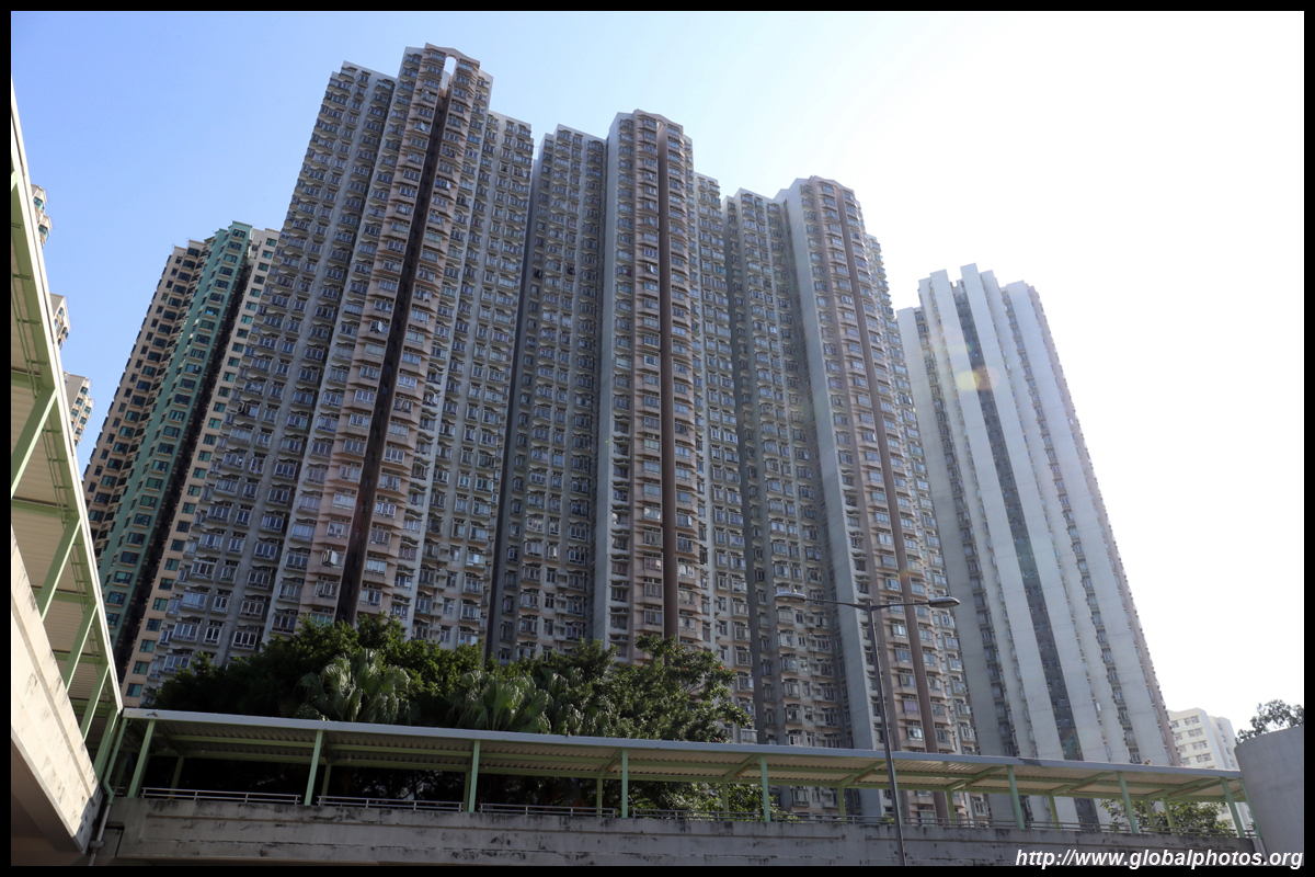 A long bridge leads to the next cluster of public housing at Cheung Hang and Cheung Wang Estates, which are on a separate hill.