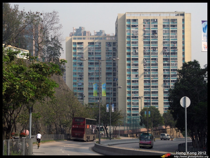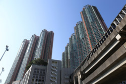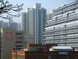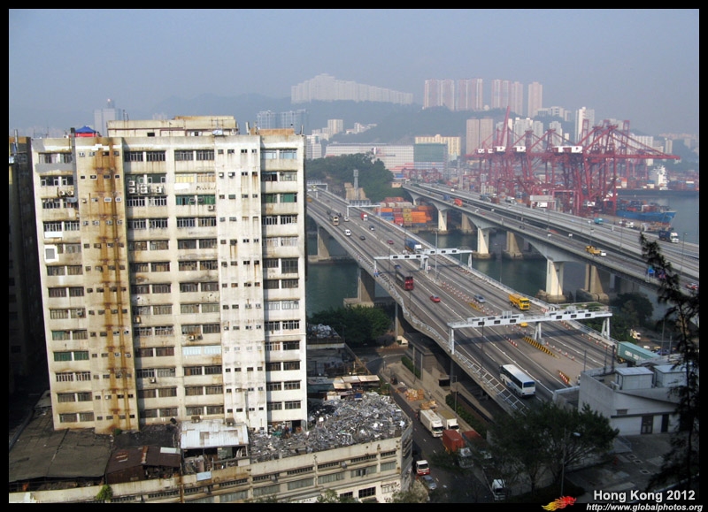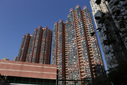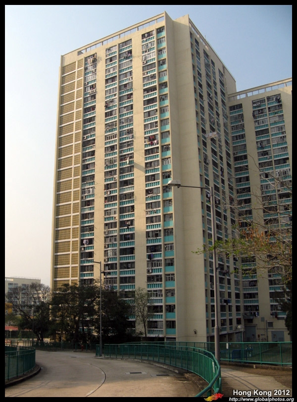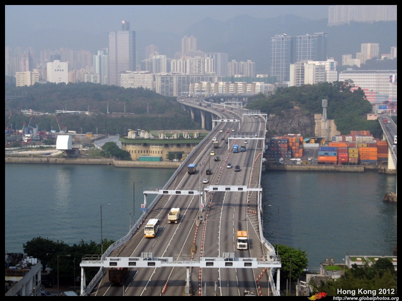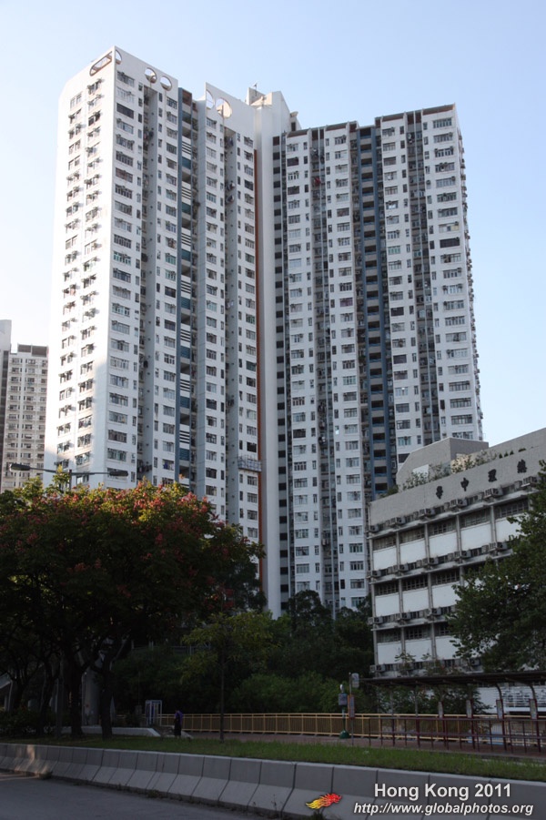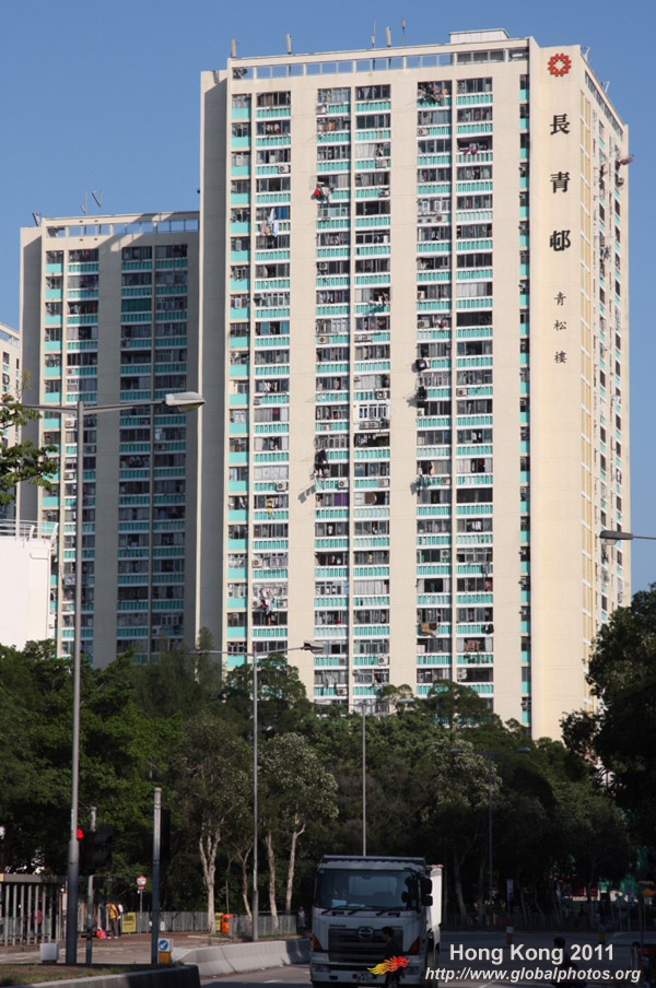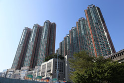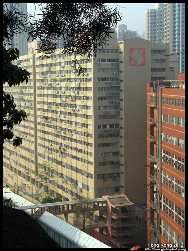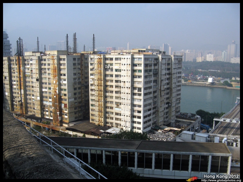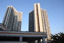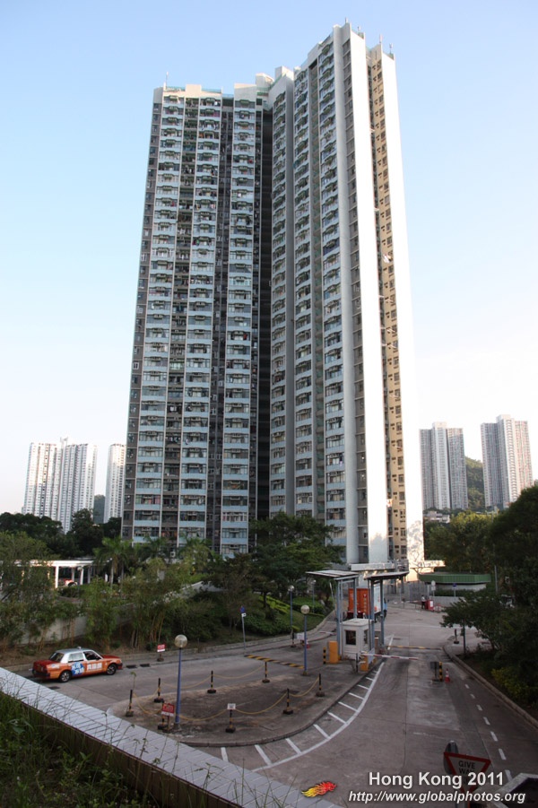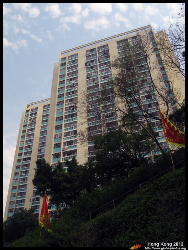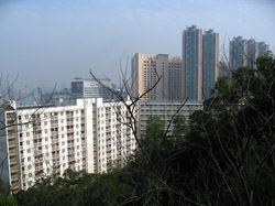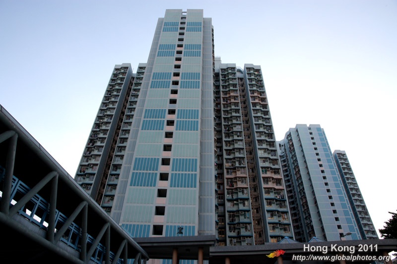 A long bridge leads to the next cluster of public housing at Cheung Hang and Cheung Wang Estates, which are on a separate hill.