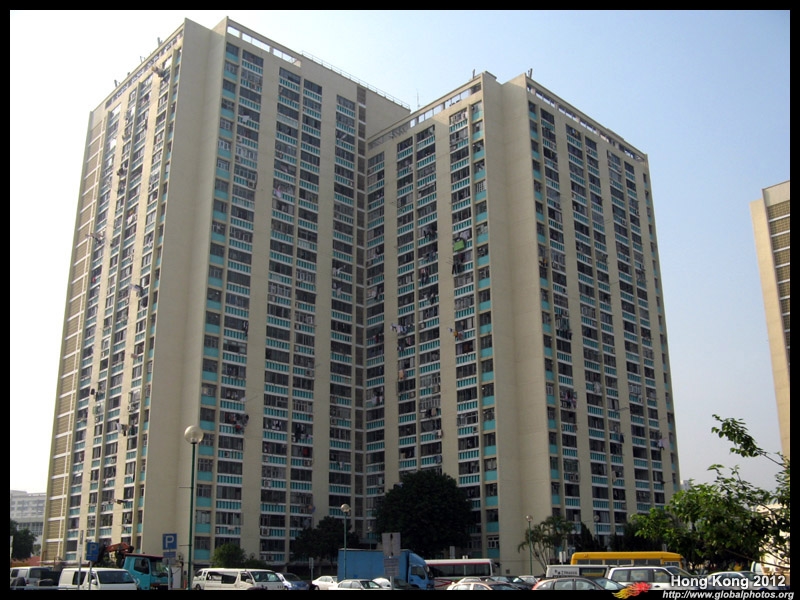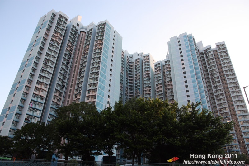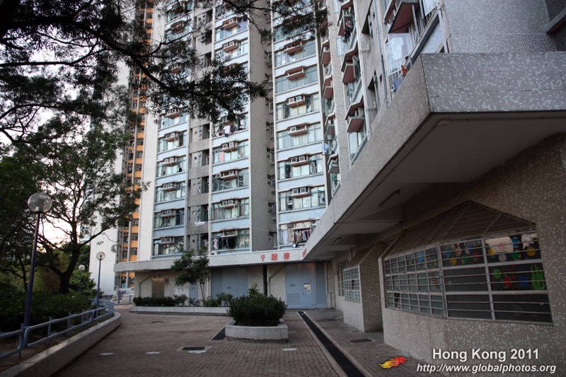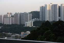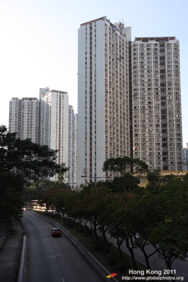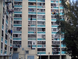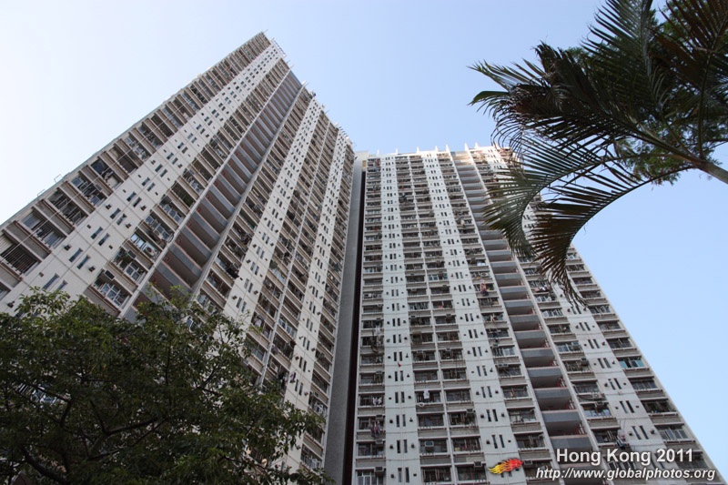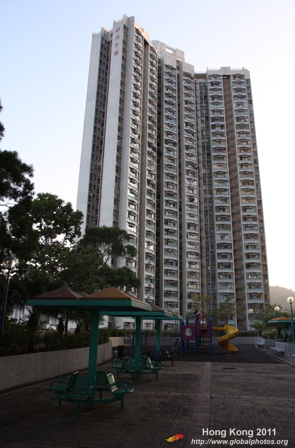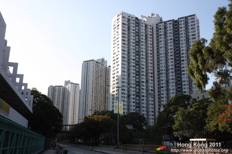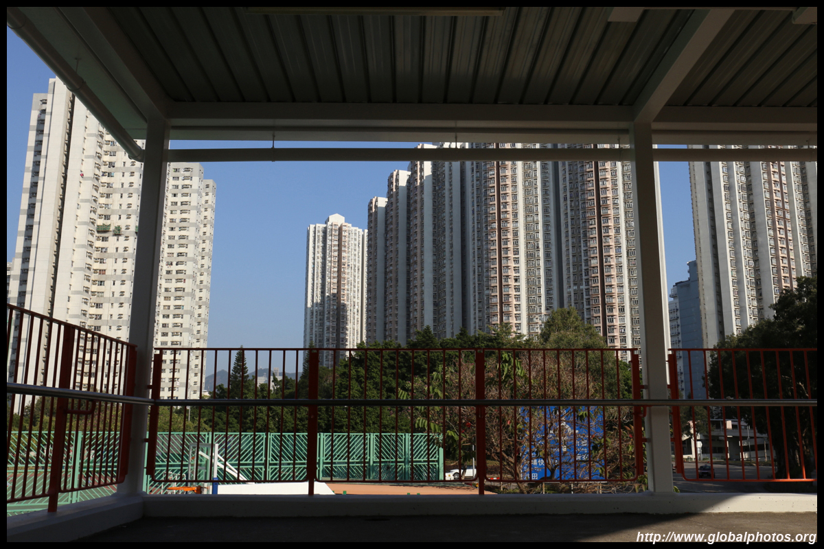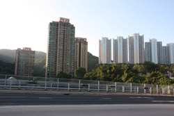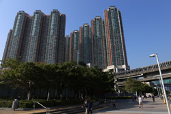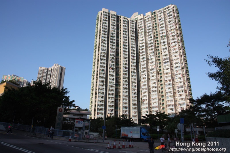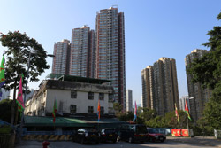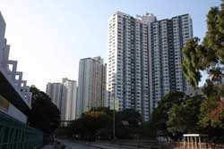 A long bridge leads to the next cluster of public housing at Cheung Hang and Cheung Wang Estates, which are on a separate hill.
