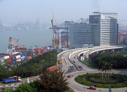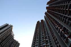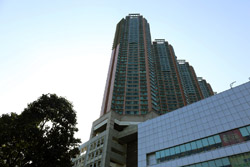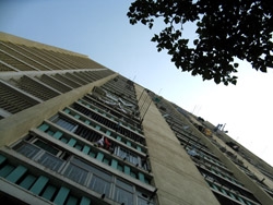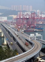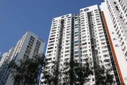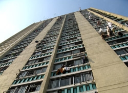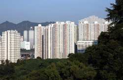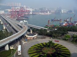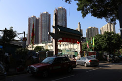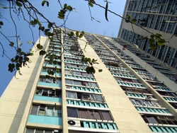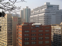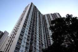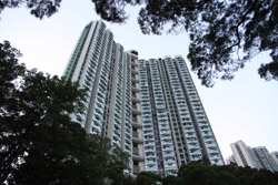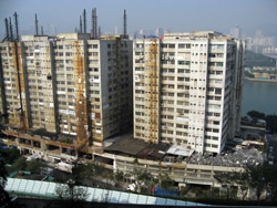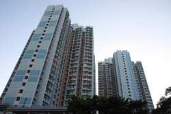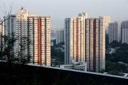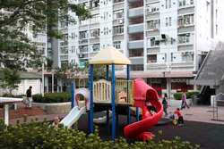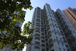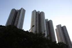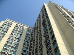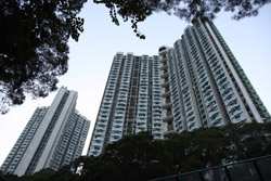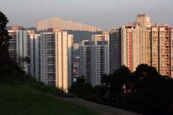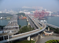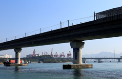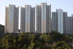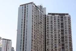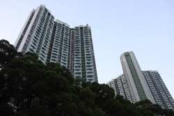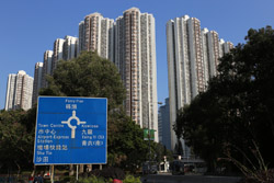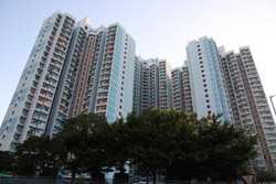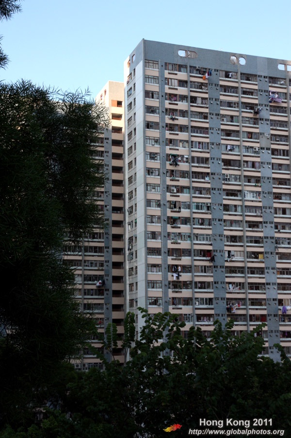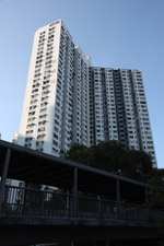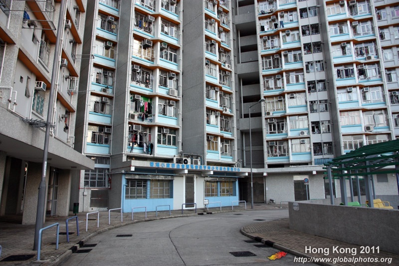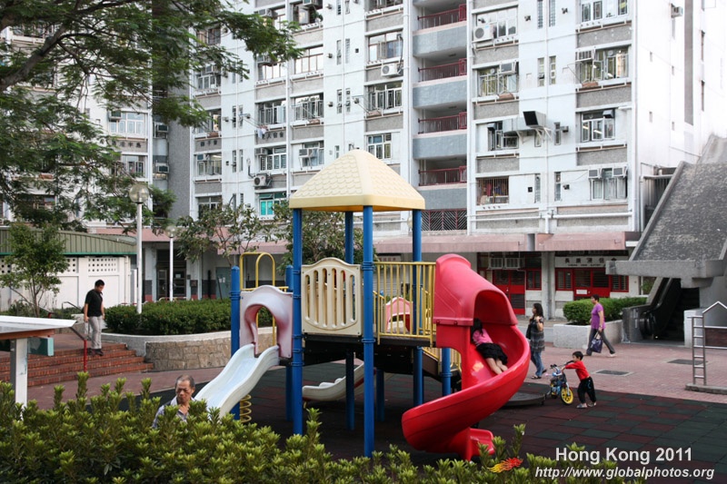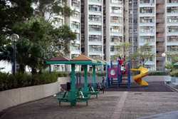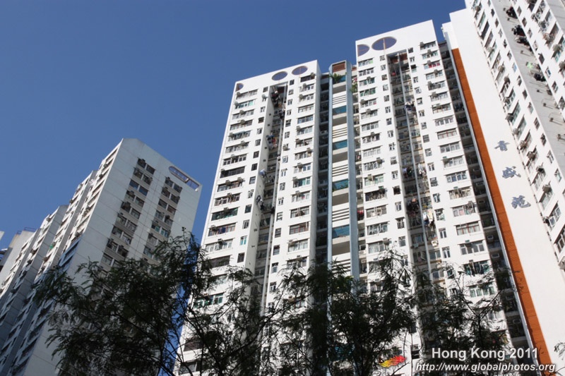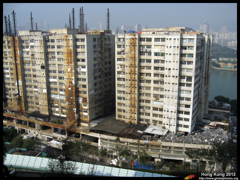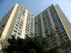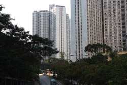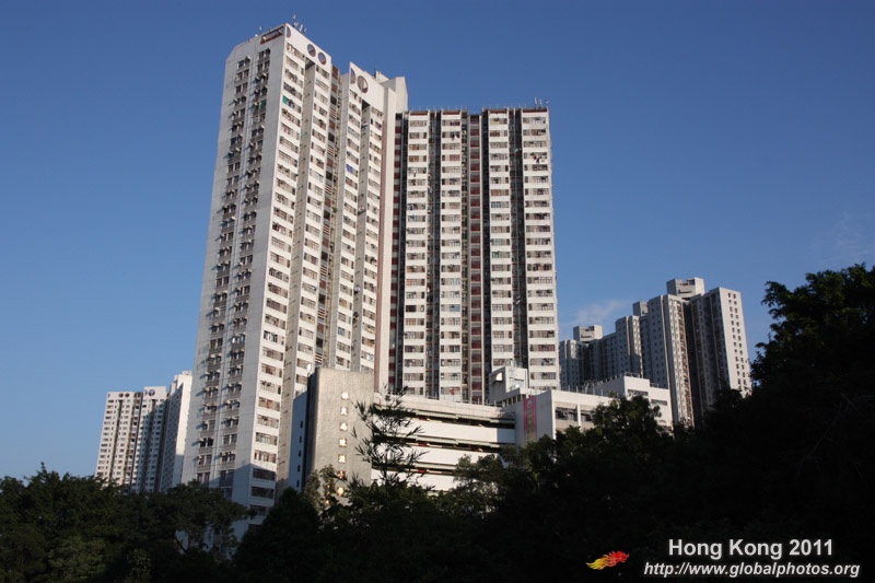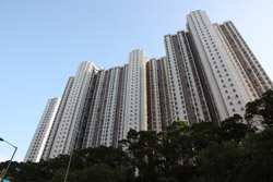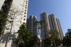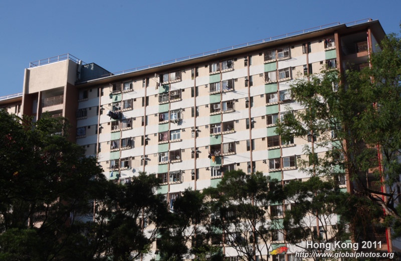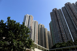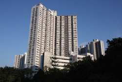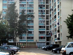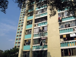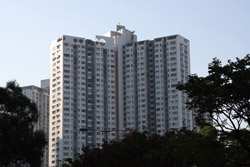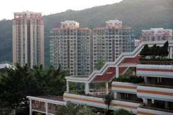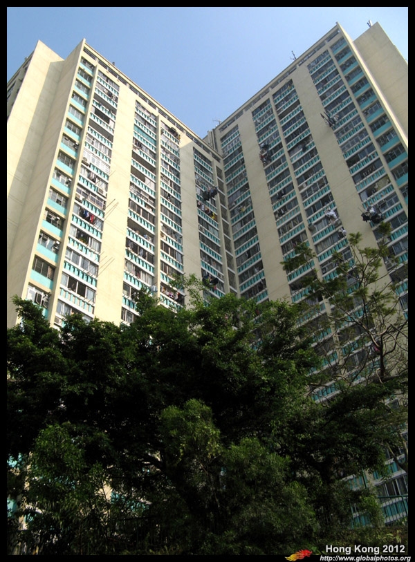 A long bridge leads to the next cluster of public housing at Cheung Hang and Cheung Wang Estates, which are on a separate hill.