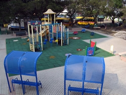 I was anticipating some decent views from this hilltop location. Unfortunately, there was plenty of foliage in the way, and it was impossible to see too far from street-level. It took a bit of climbing and exploring in the playground to get this shot.