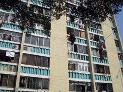Dryers are not common in the city, so people use an environmental and free way to dry their large fabrics.