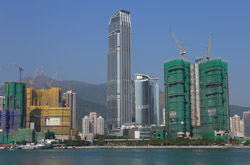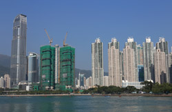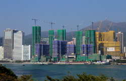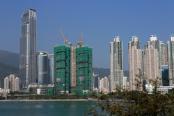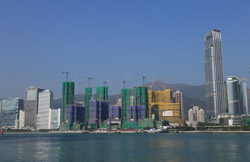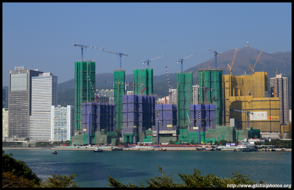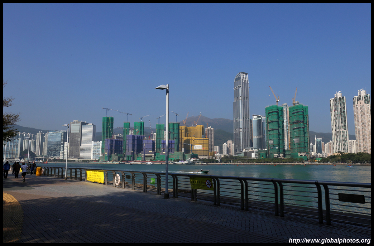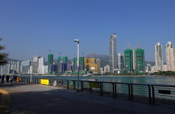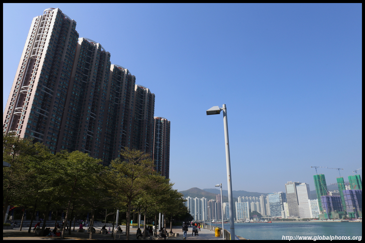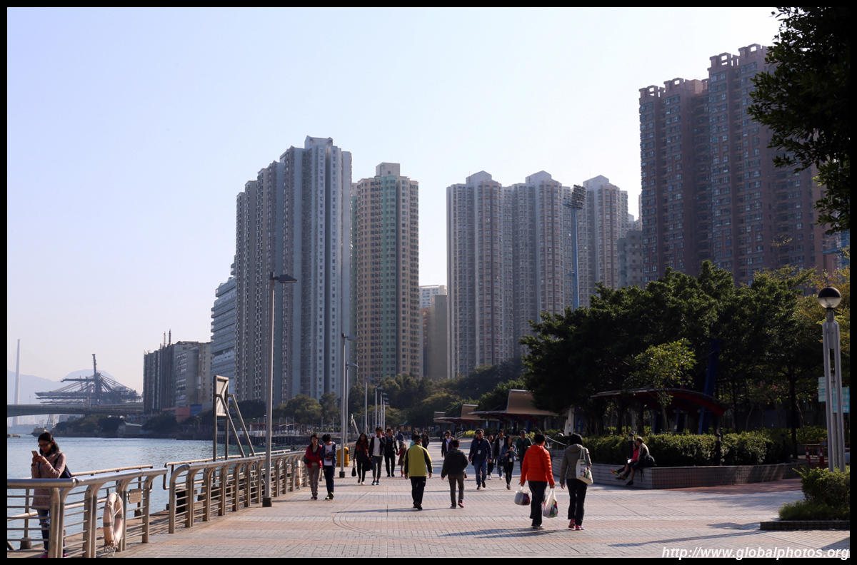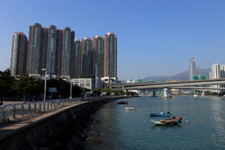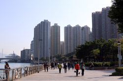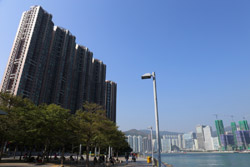 Tsing Yi's northeastern waterfront has a long promenade with wide sidewalks for jogging and walking. Major change is happening across the water in Tsuen Wan.
