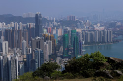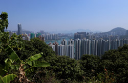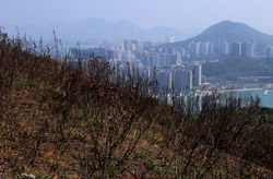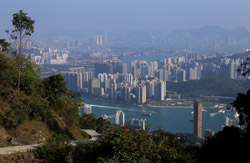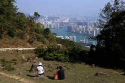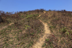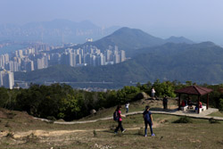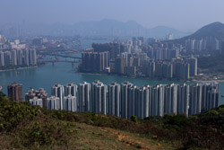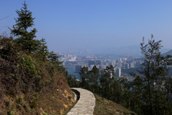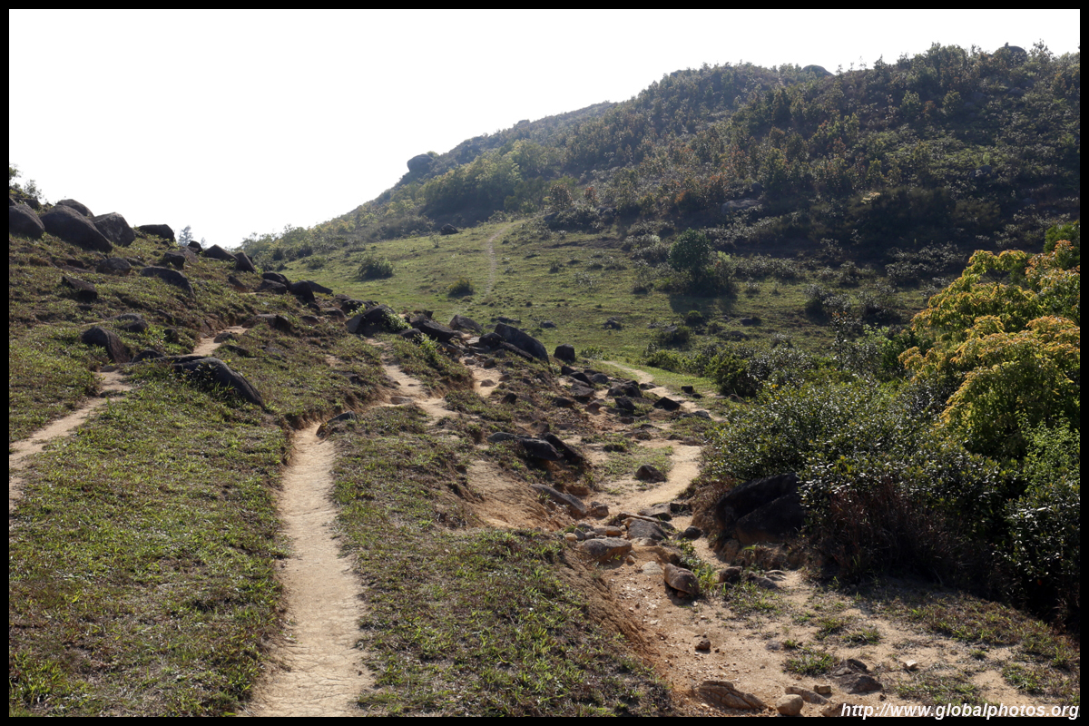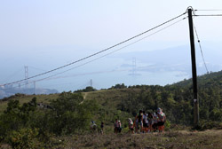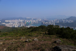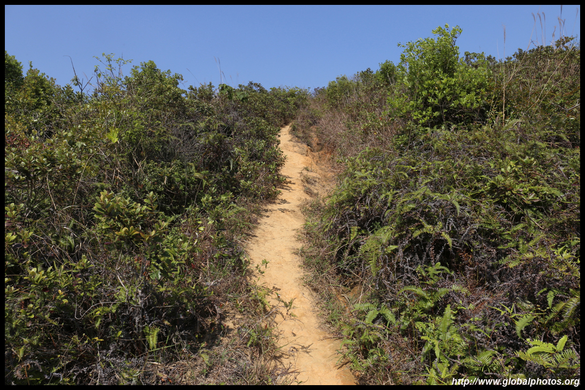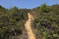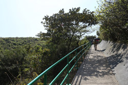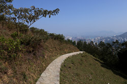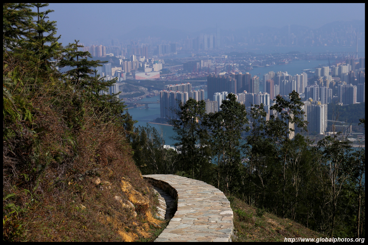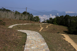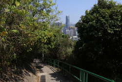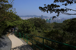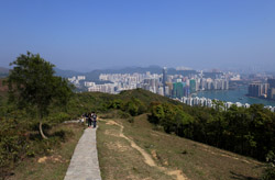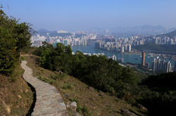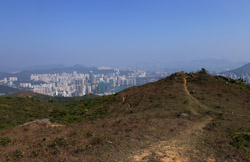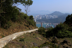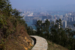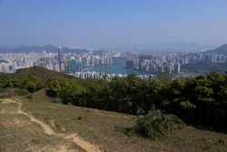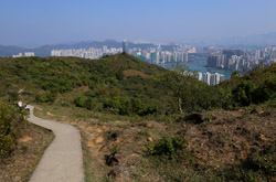 The Tsuen Wan end of the trail starts just across from the Adventist Hospital. The initial climb is arduous with many staircases, followed by a steep incline, followed by a relatively flat section with panoramic views from the eastern end of the harbour all the way to the airport.