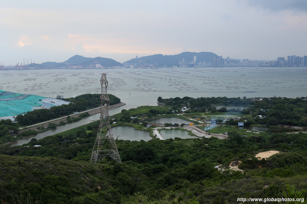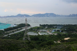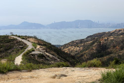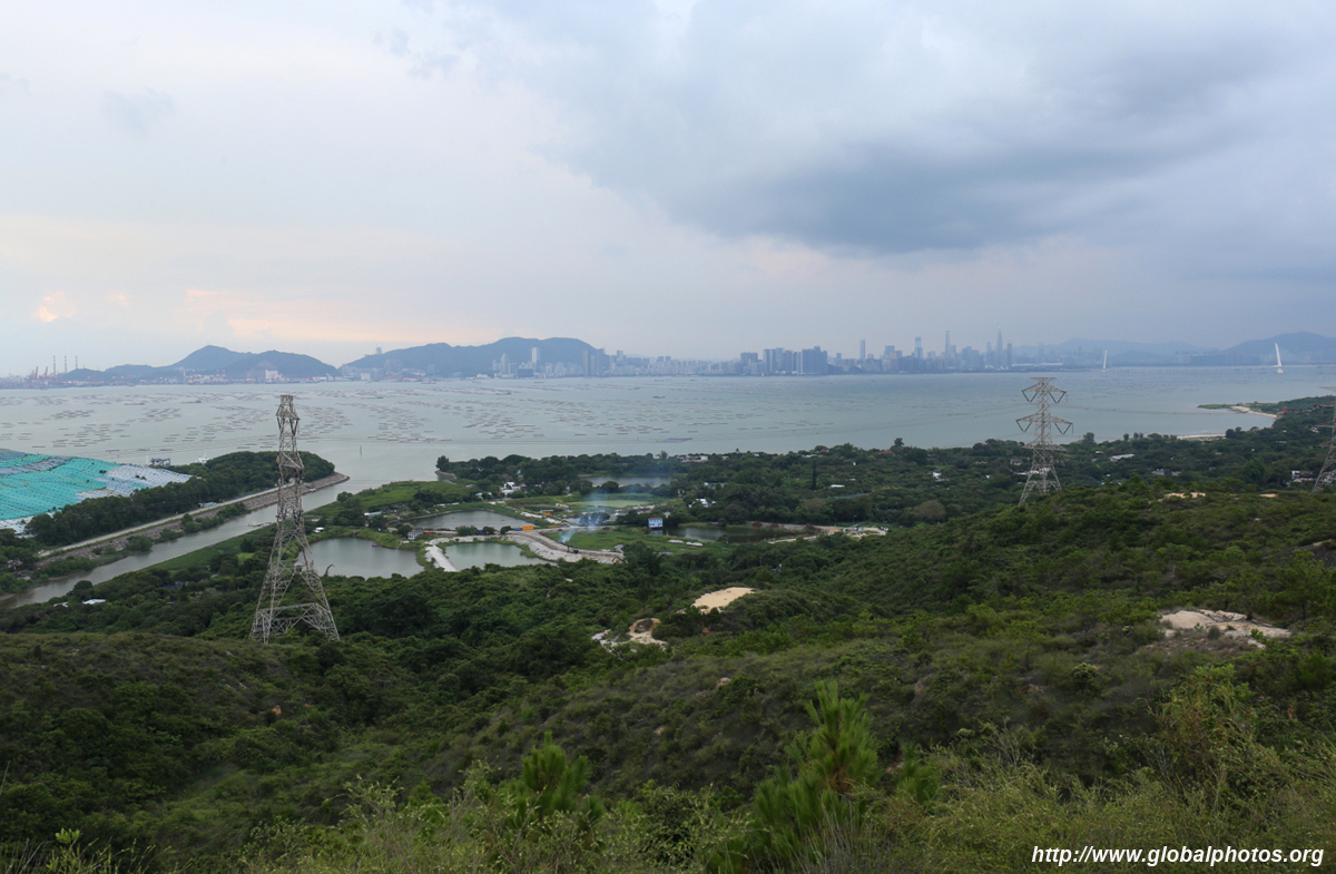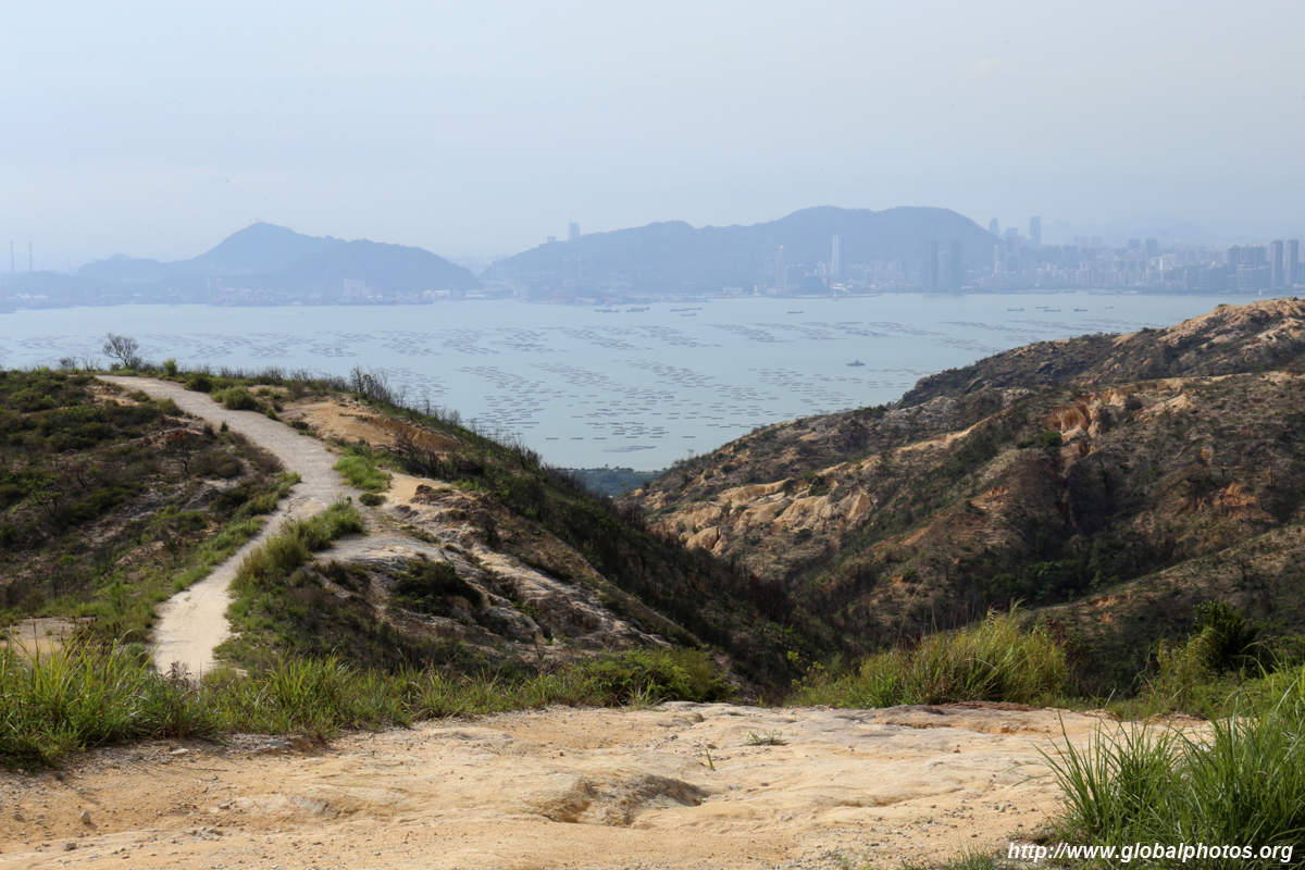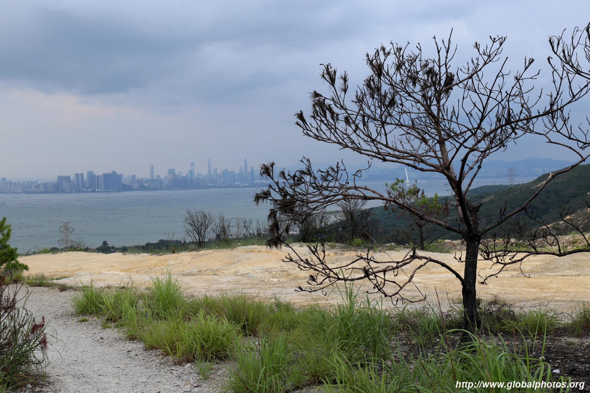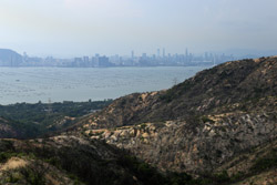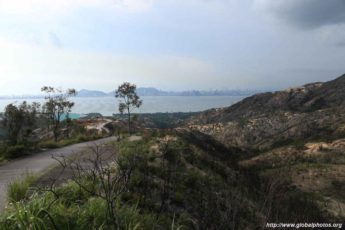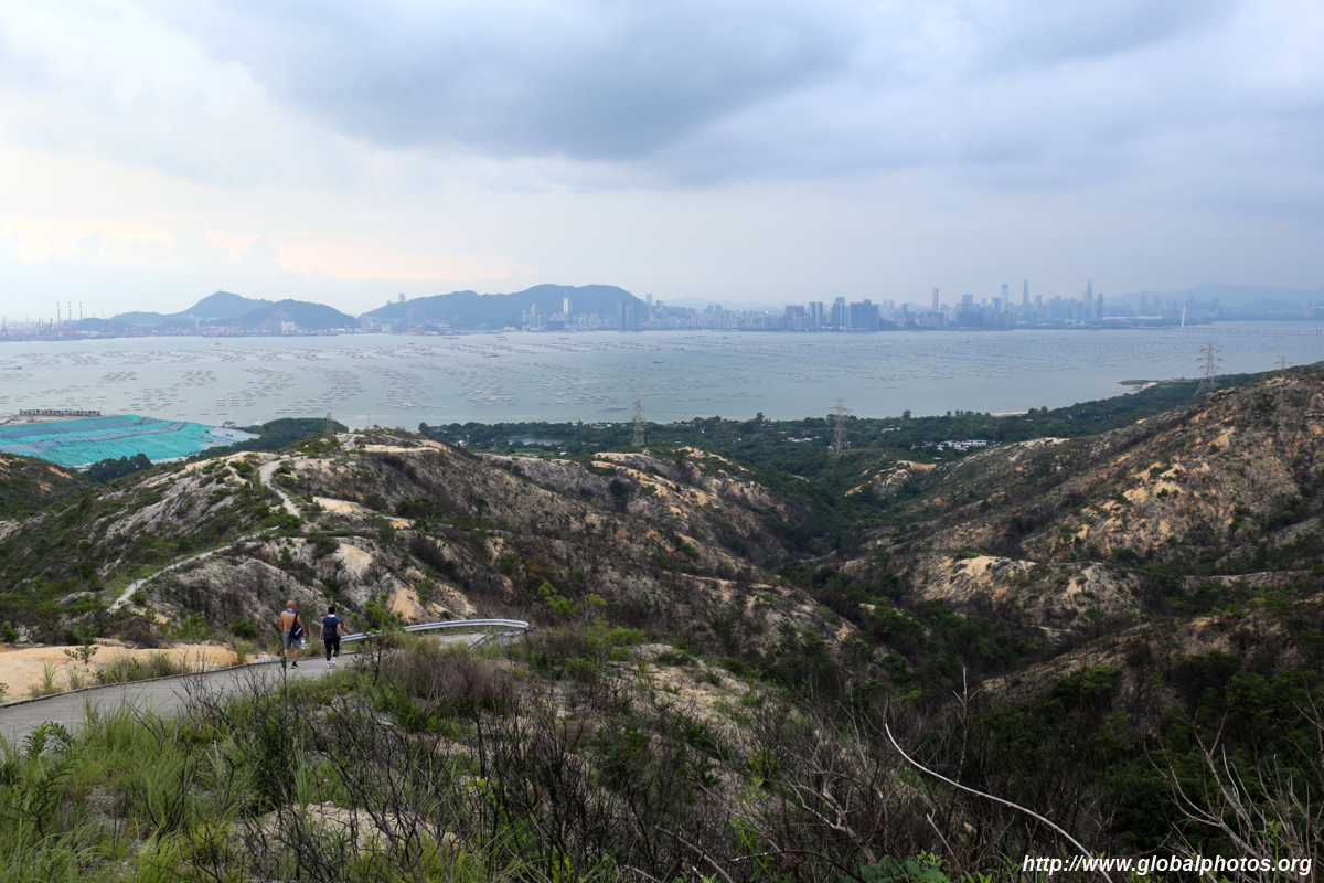 It is possible to continue downhill towards Pak Nai, or backtrack to Tuen Mun. Shenzhen's skyline is just across the bay.