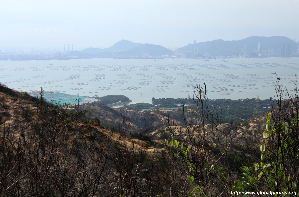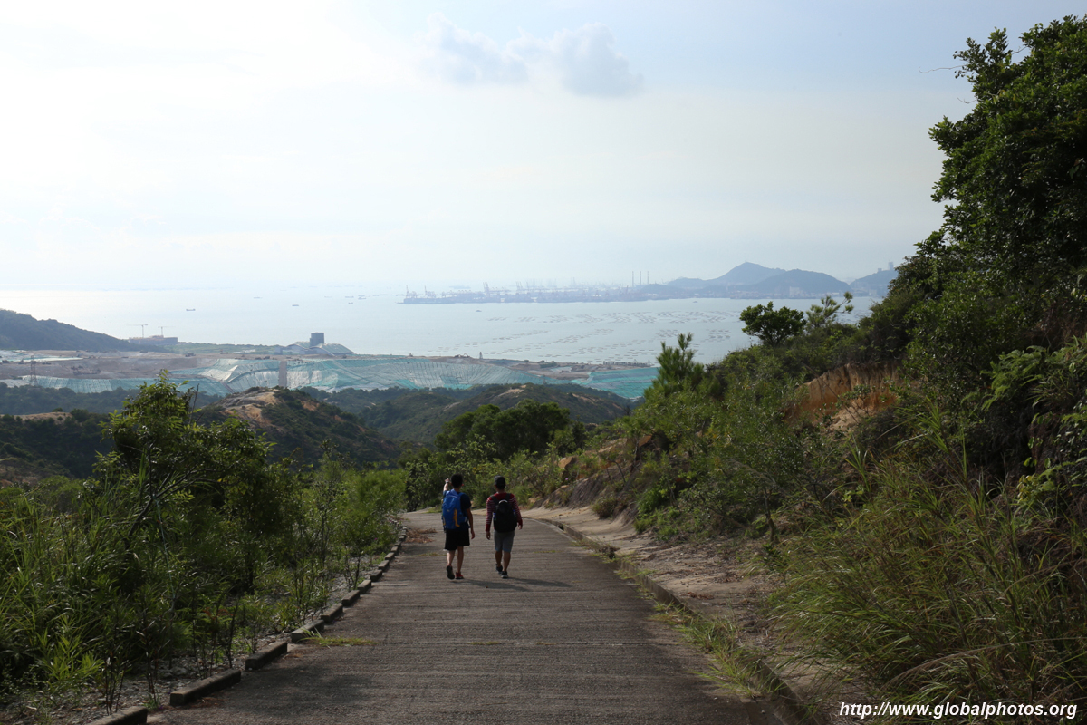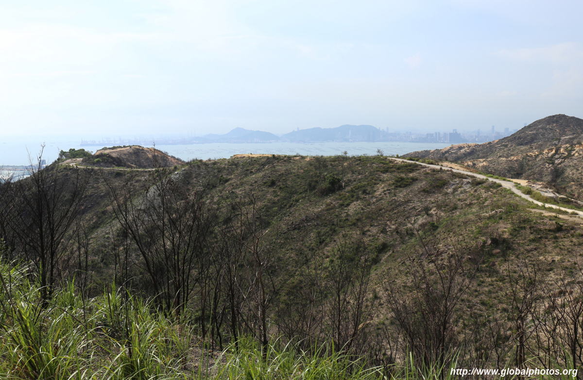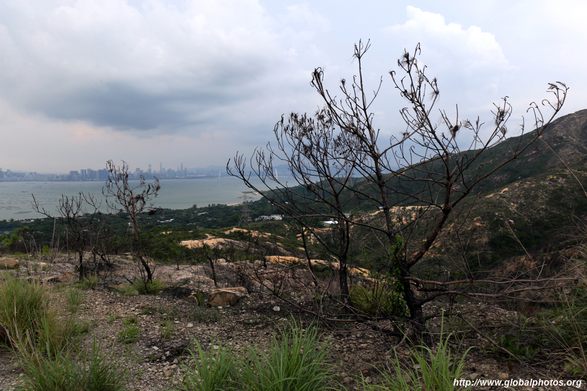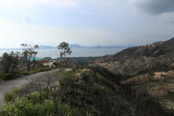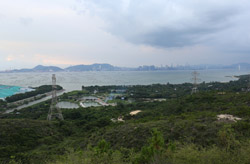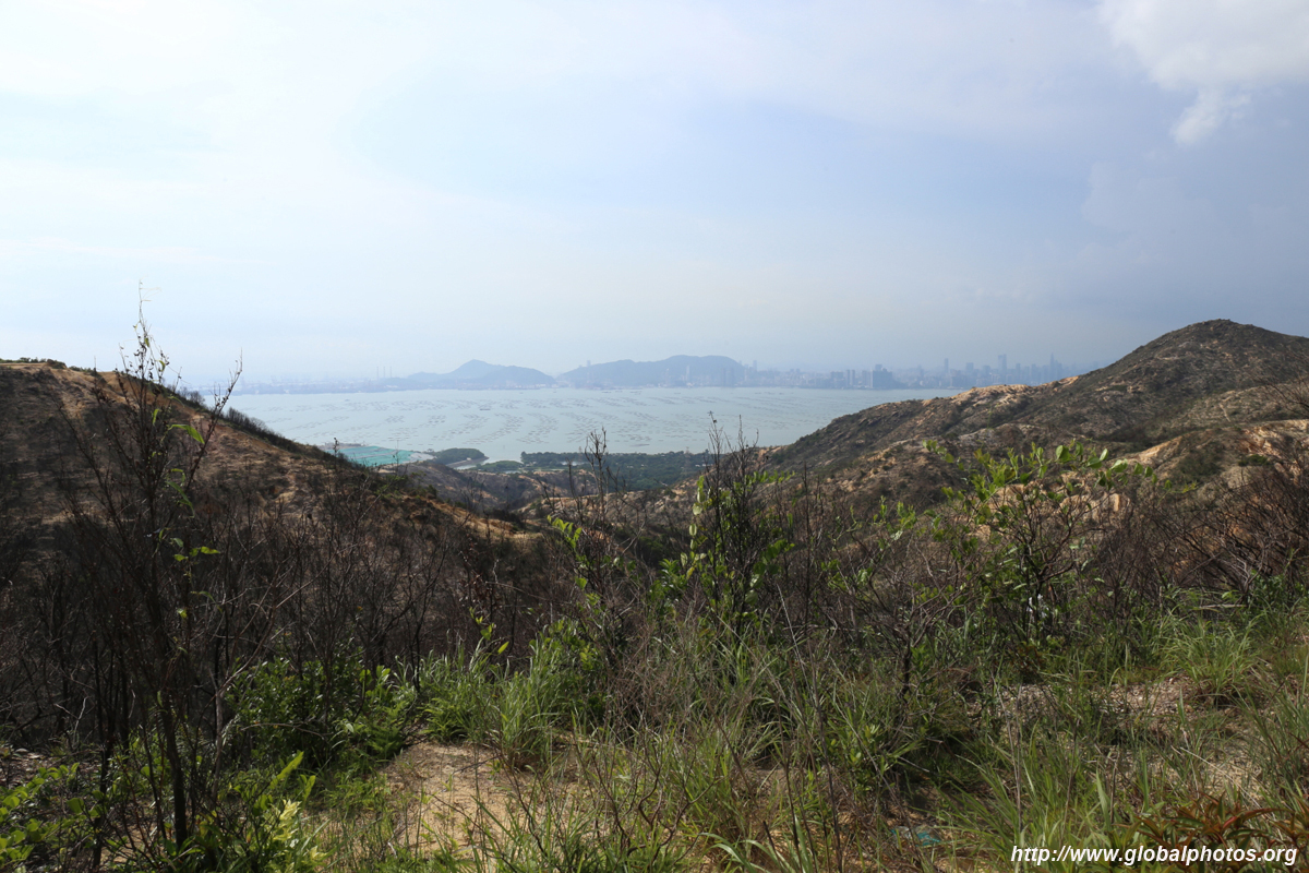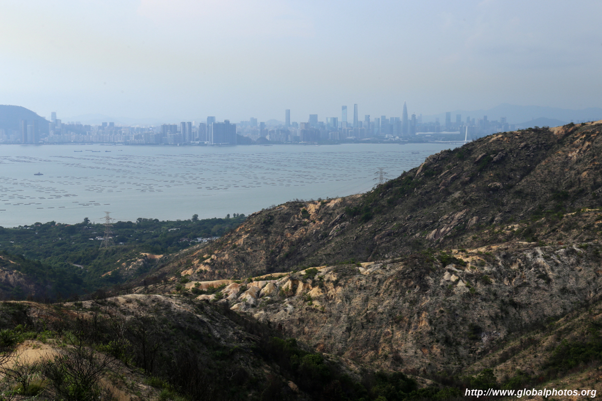 It is possible to continue downhill towards Pak Nai, or backtrack to Tuen Mun. Shenzhen's skyline is just across the bay.