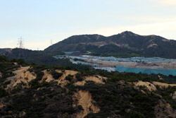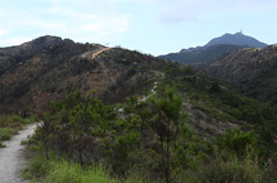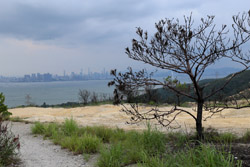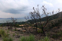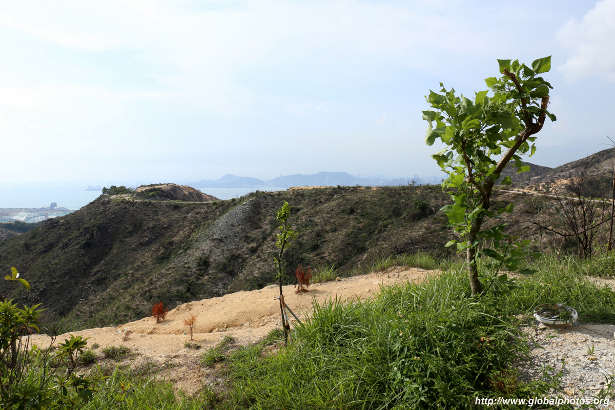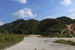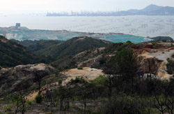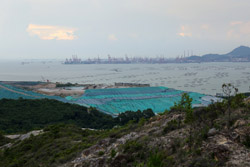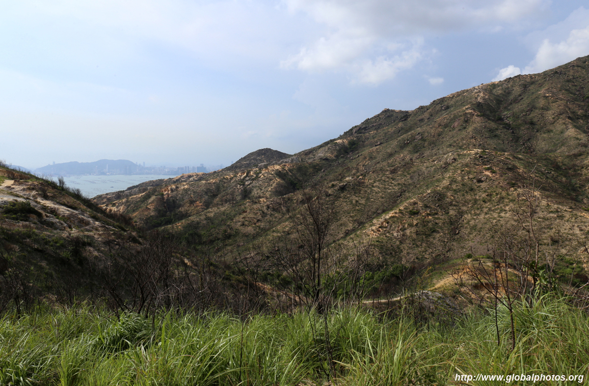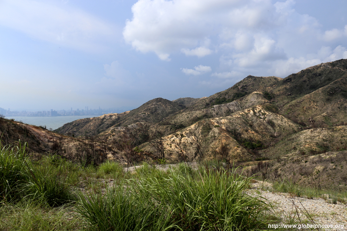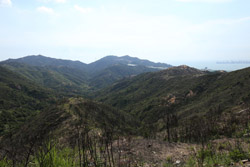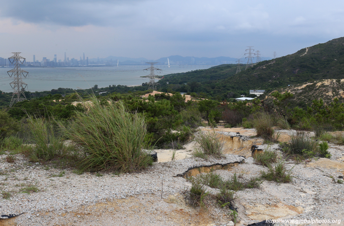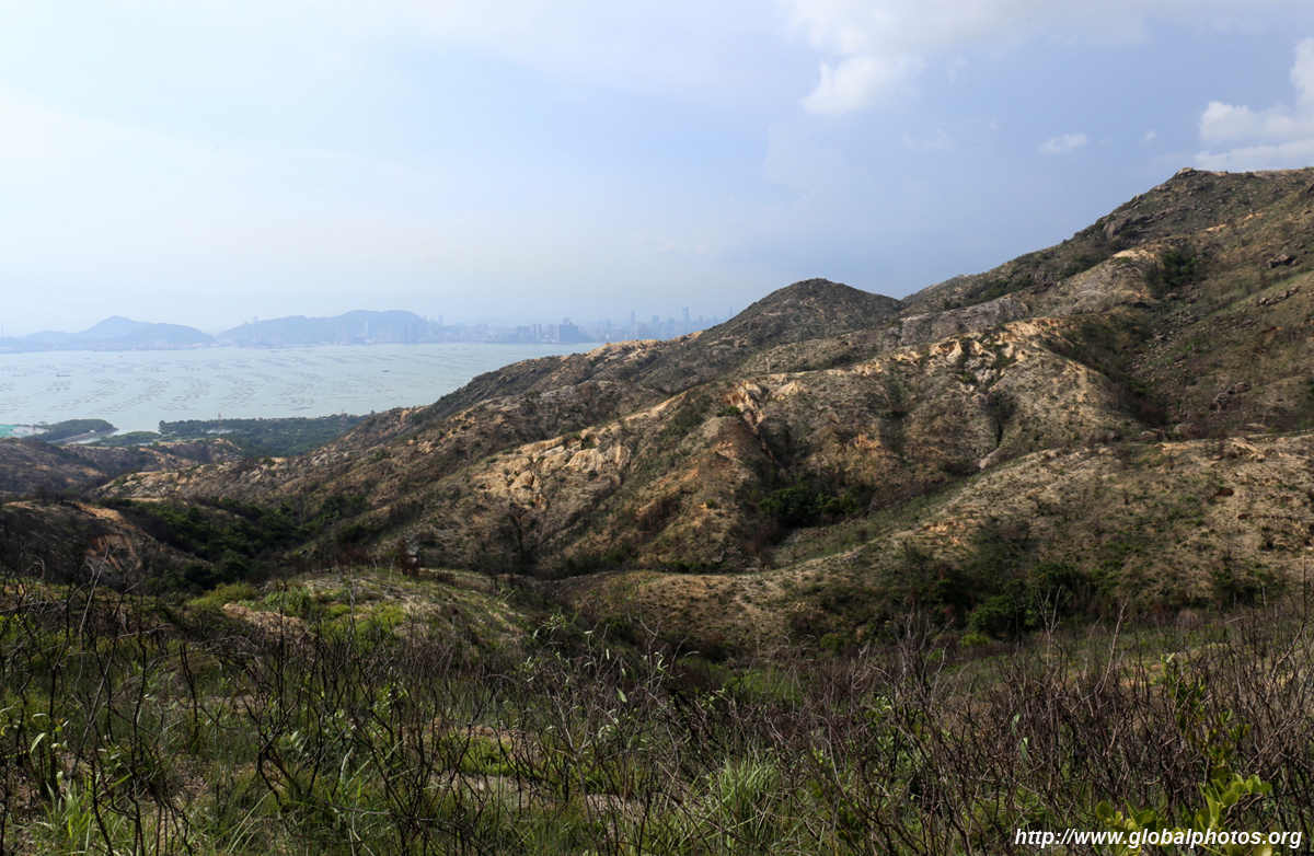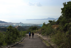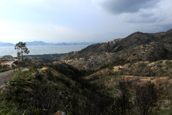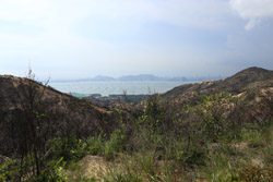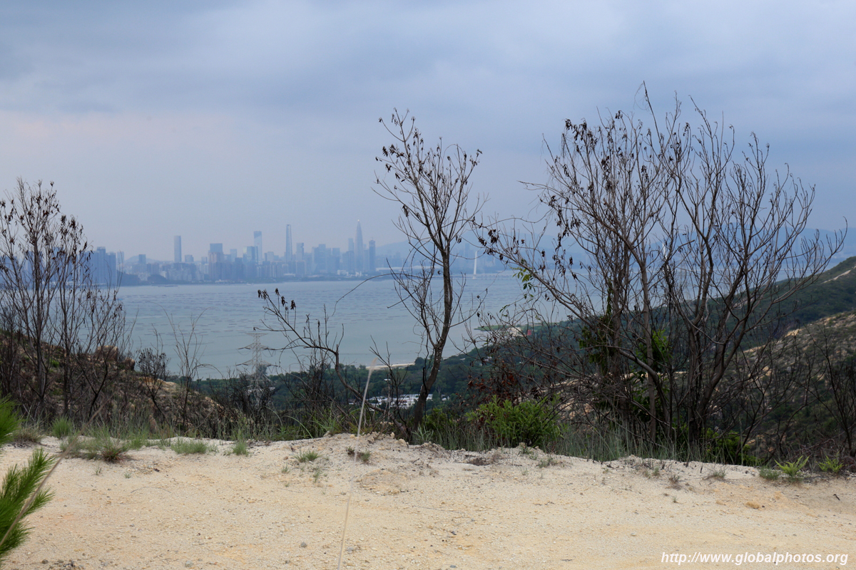 It is possible to continue downhill towards Pak Nai, or backtrack to Tuen Mun. Shenzhen's skyline is just across the bay.